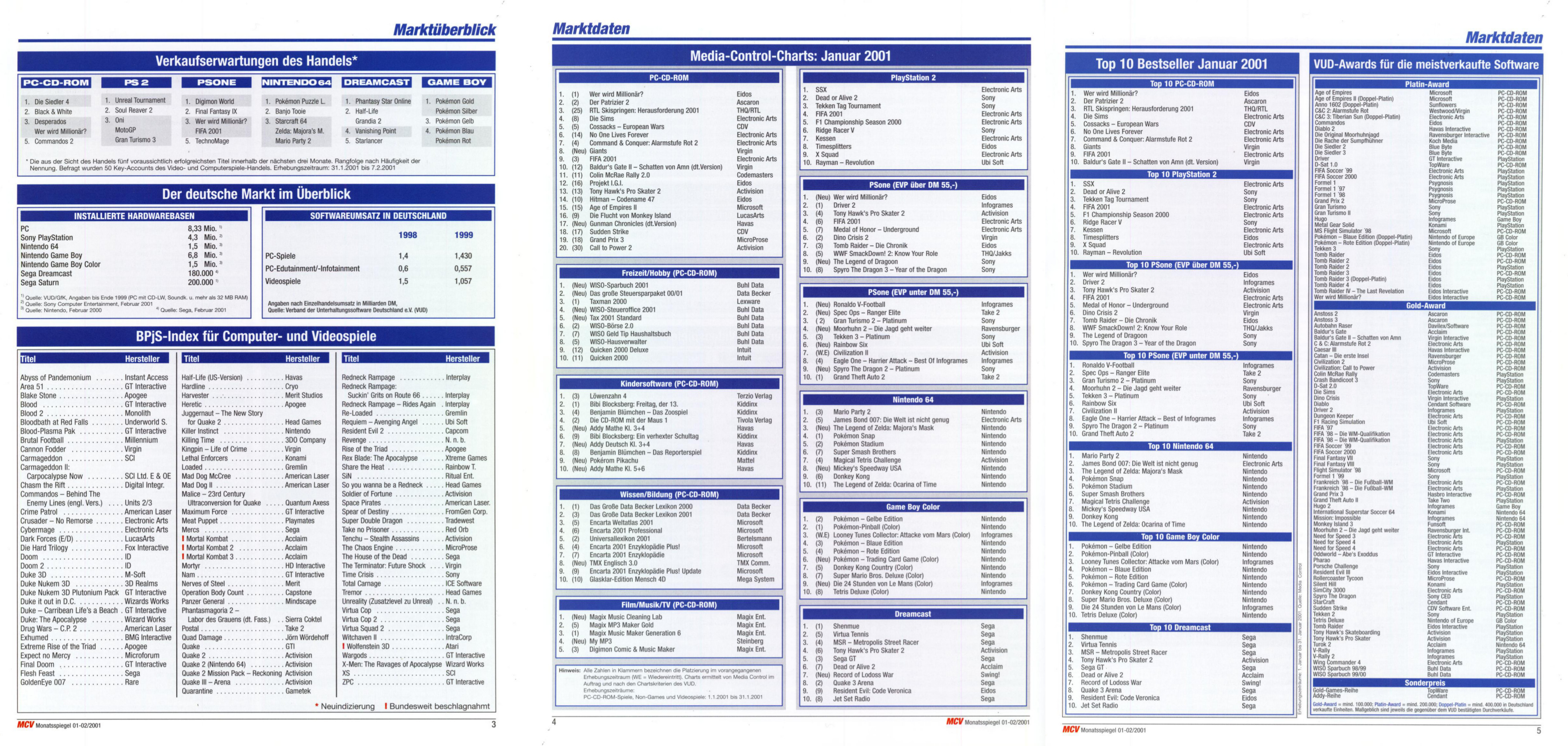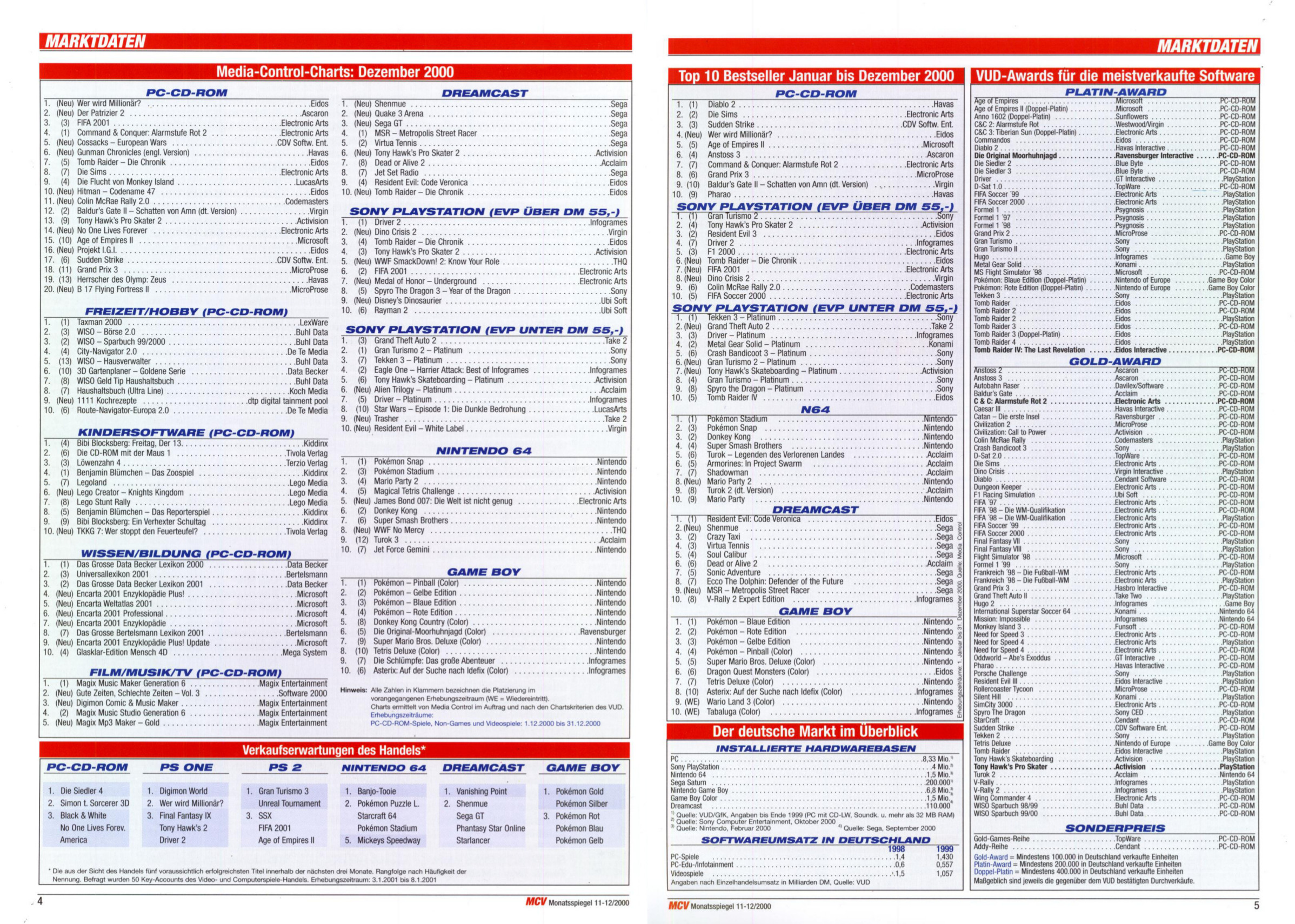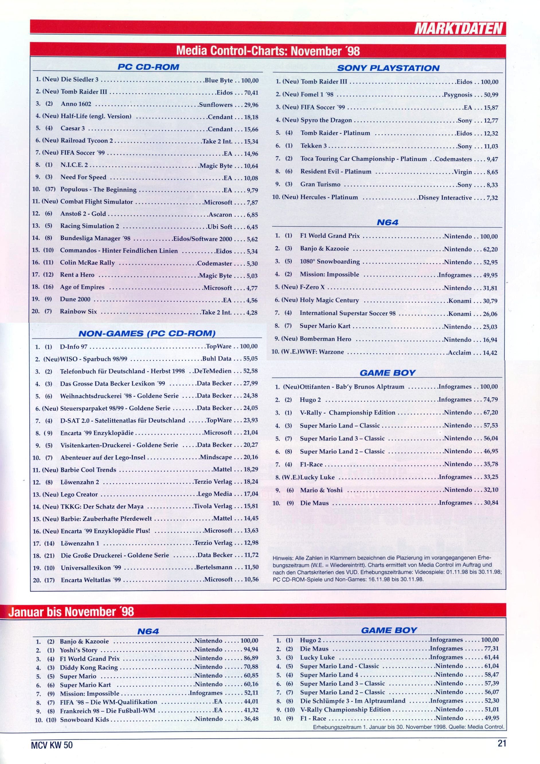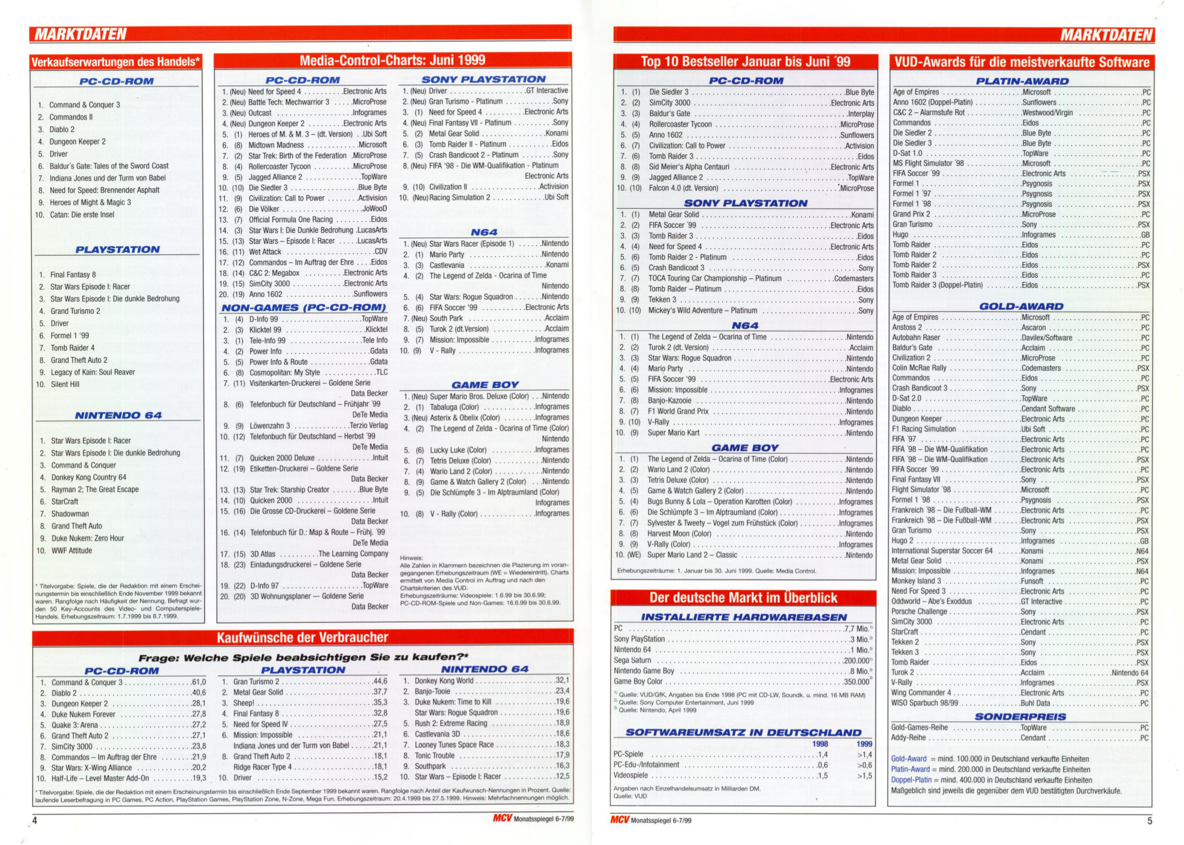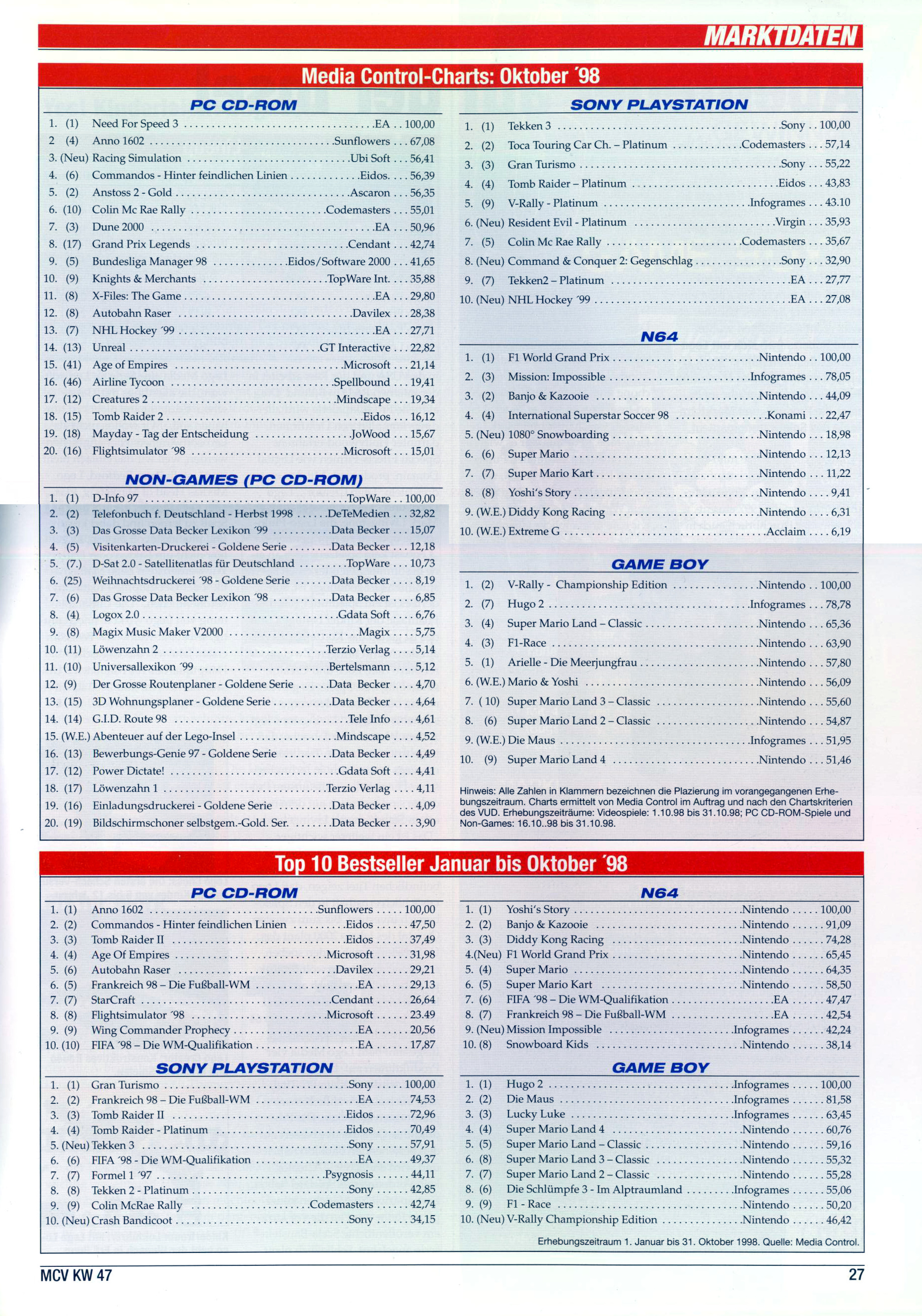 German PC and Video Game sales charts 1995 to 2001 (MCV)