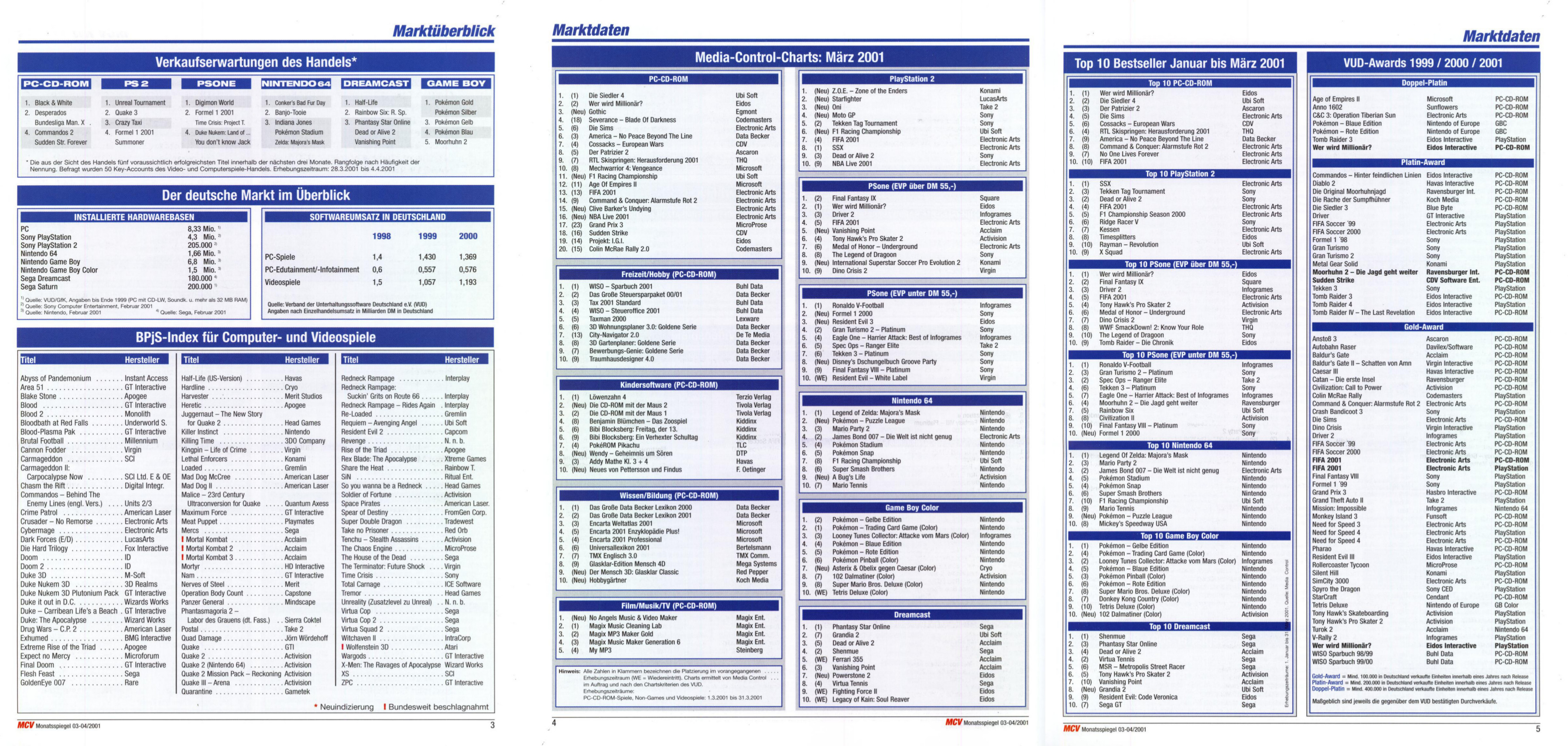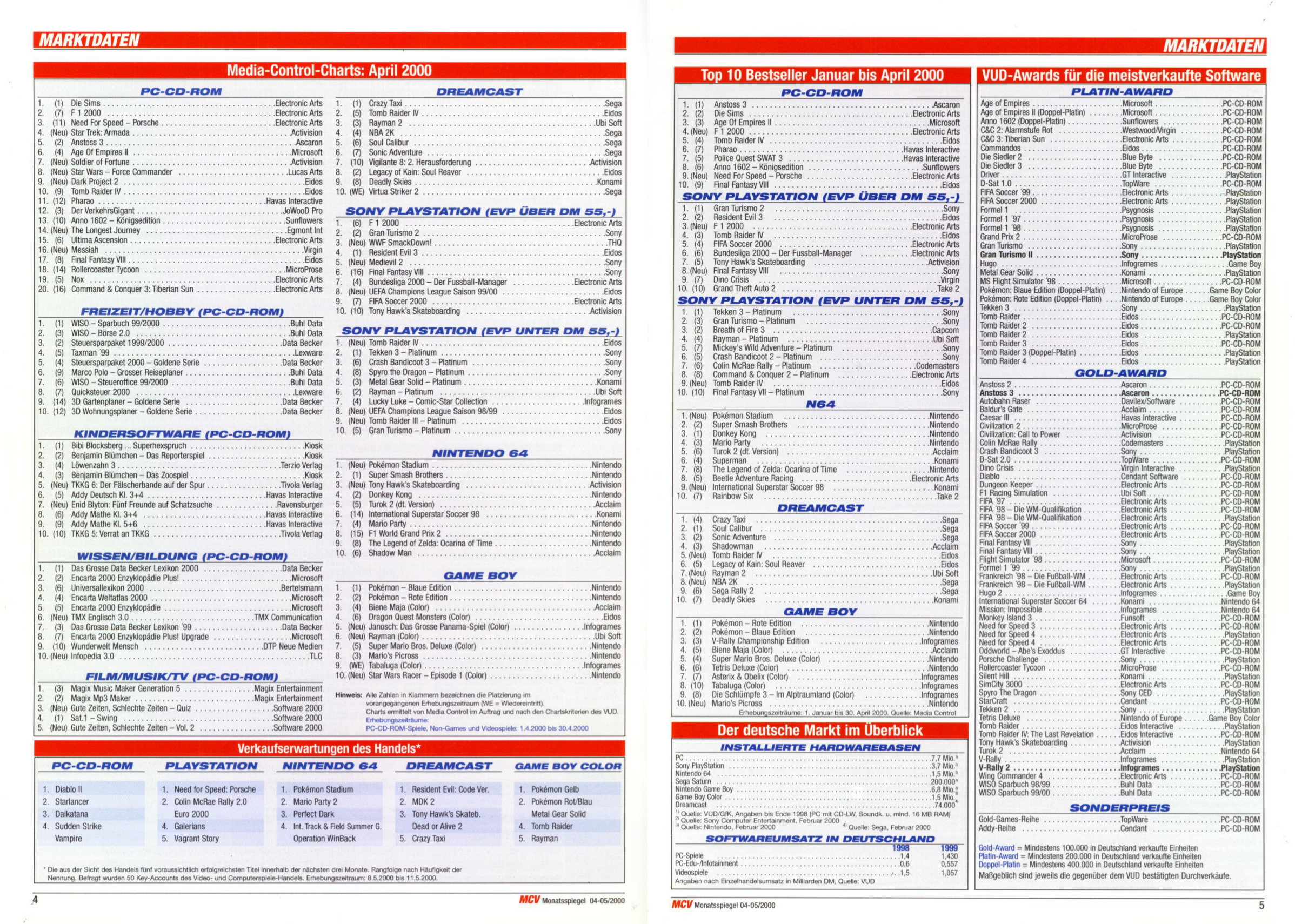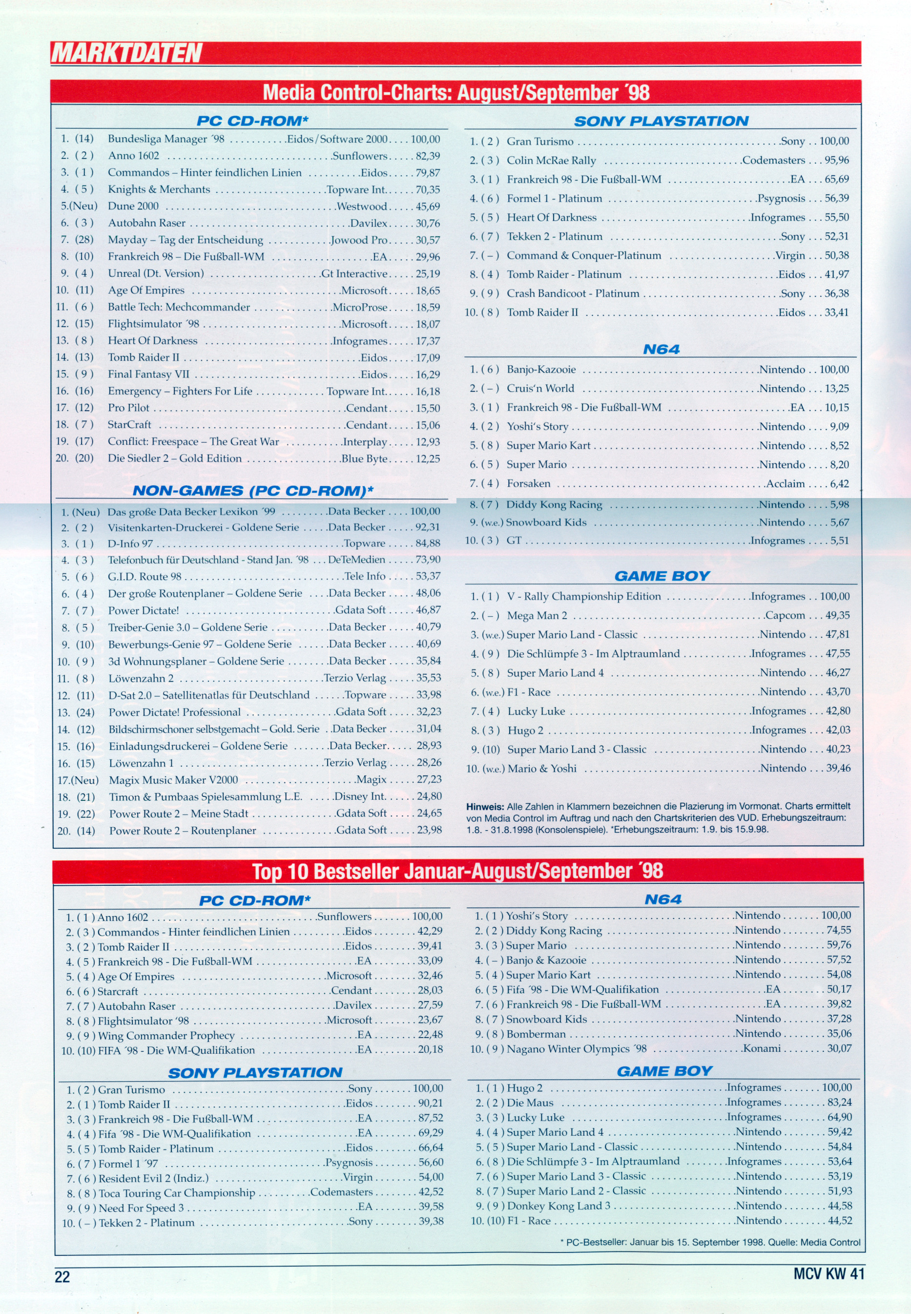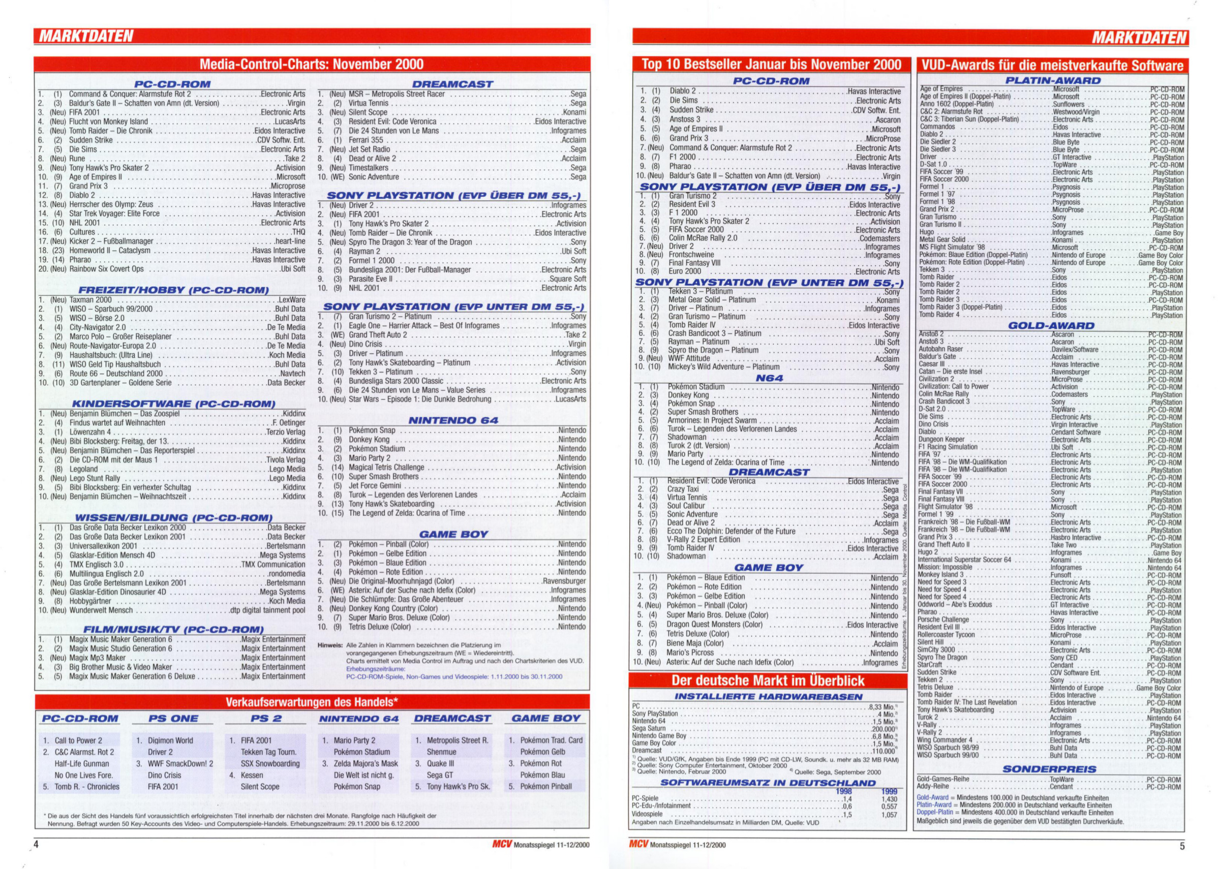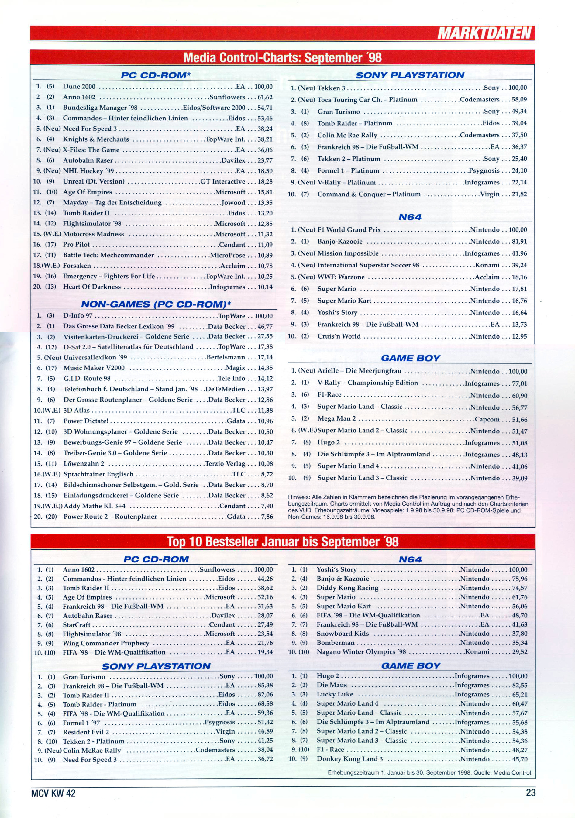 German PC and Video Game sales charts 1995 to 2001 (MCV)