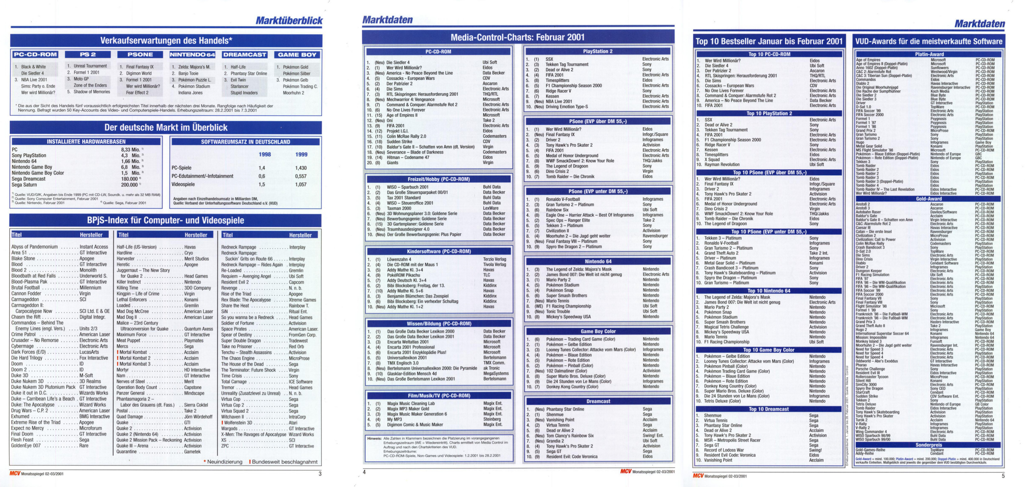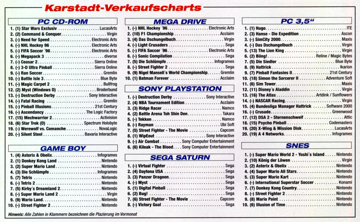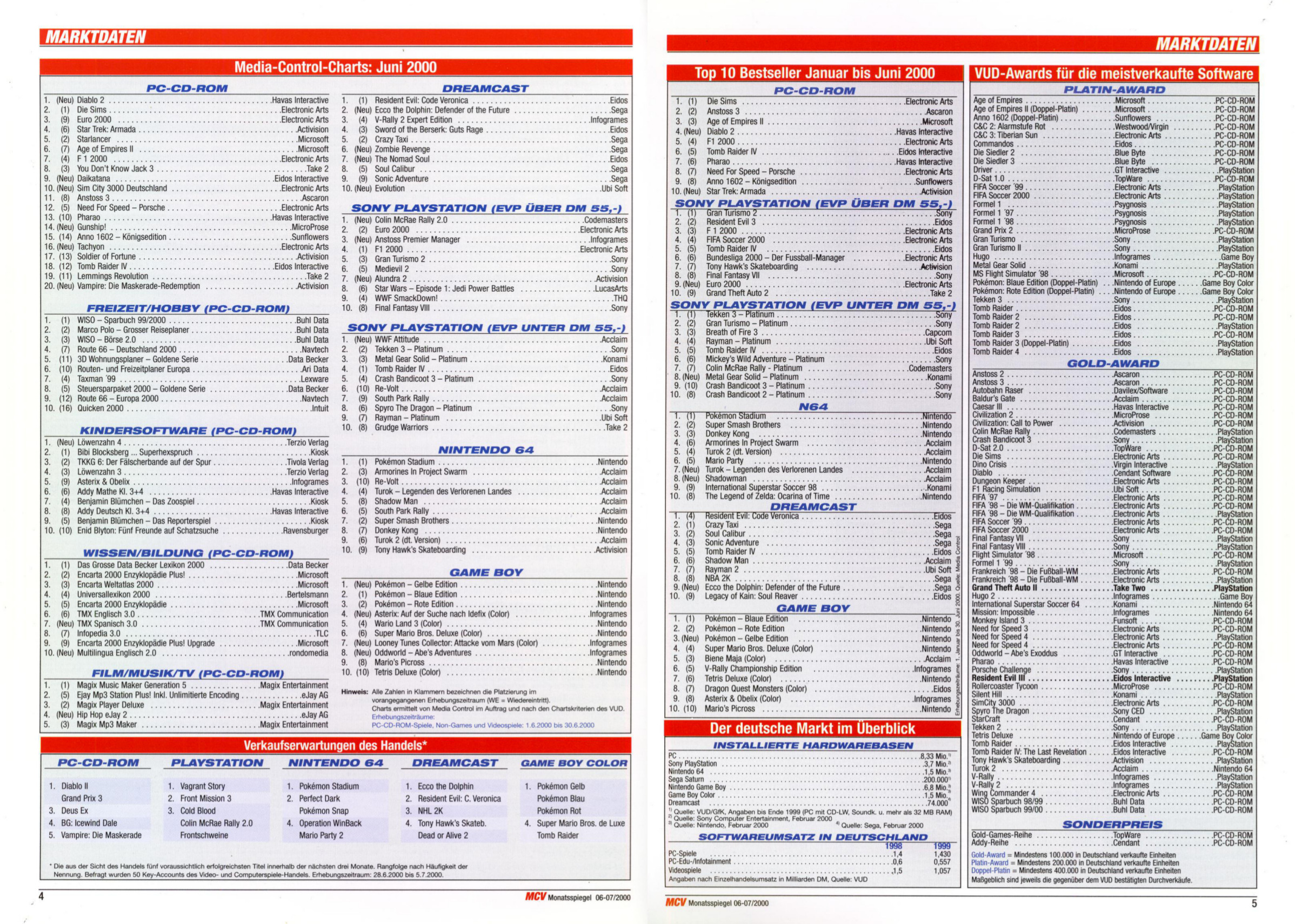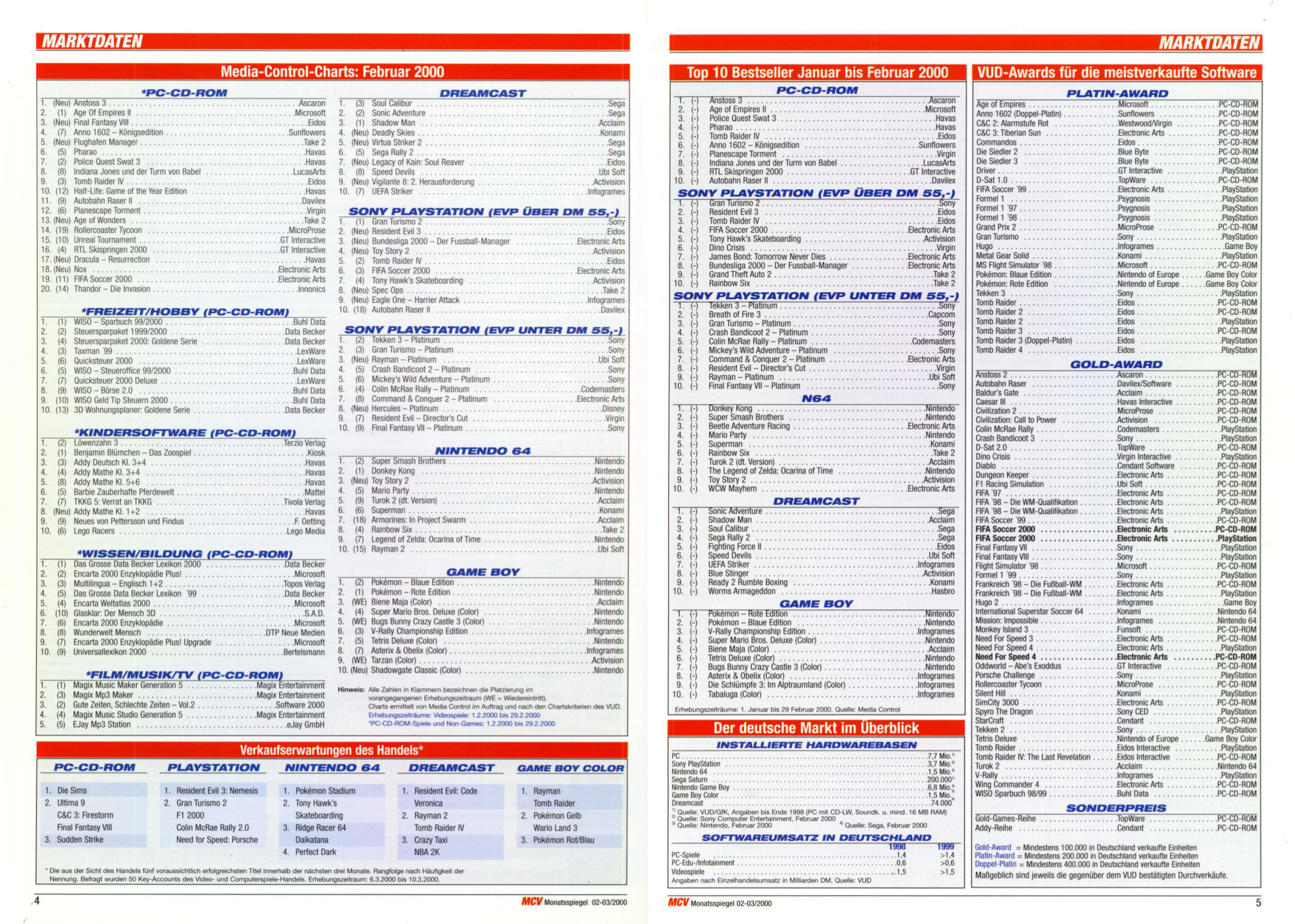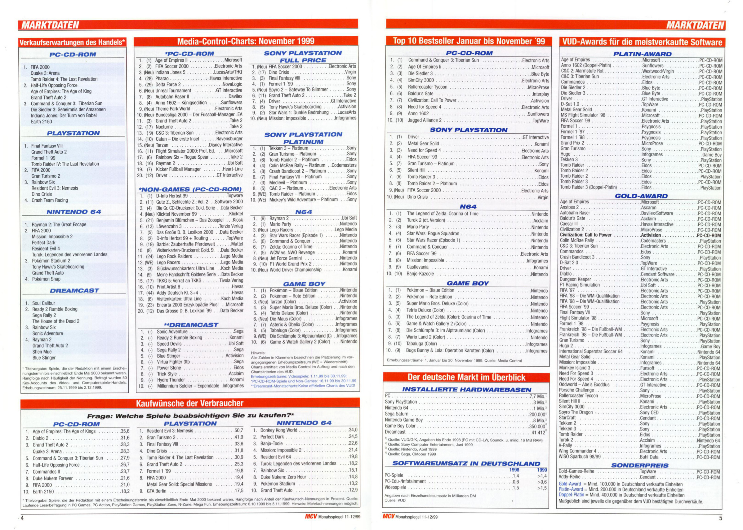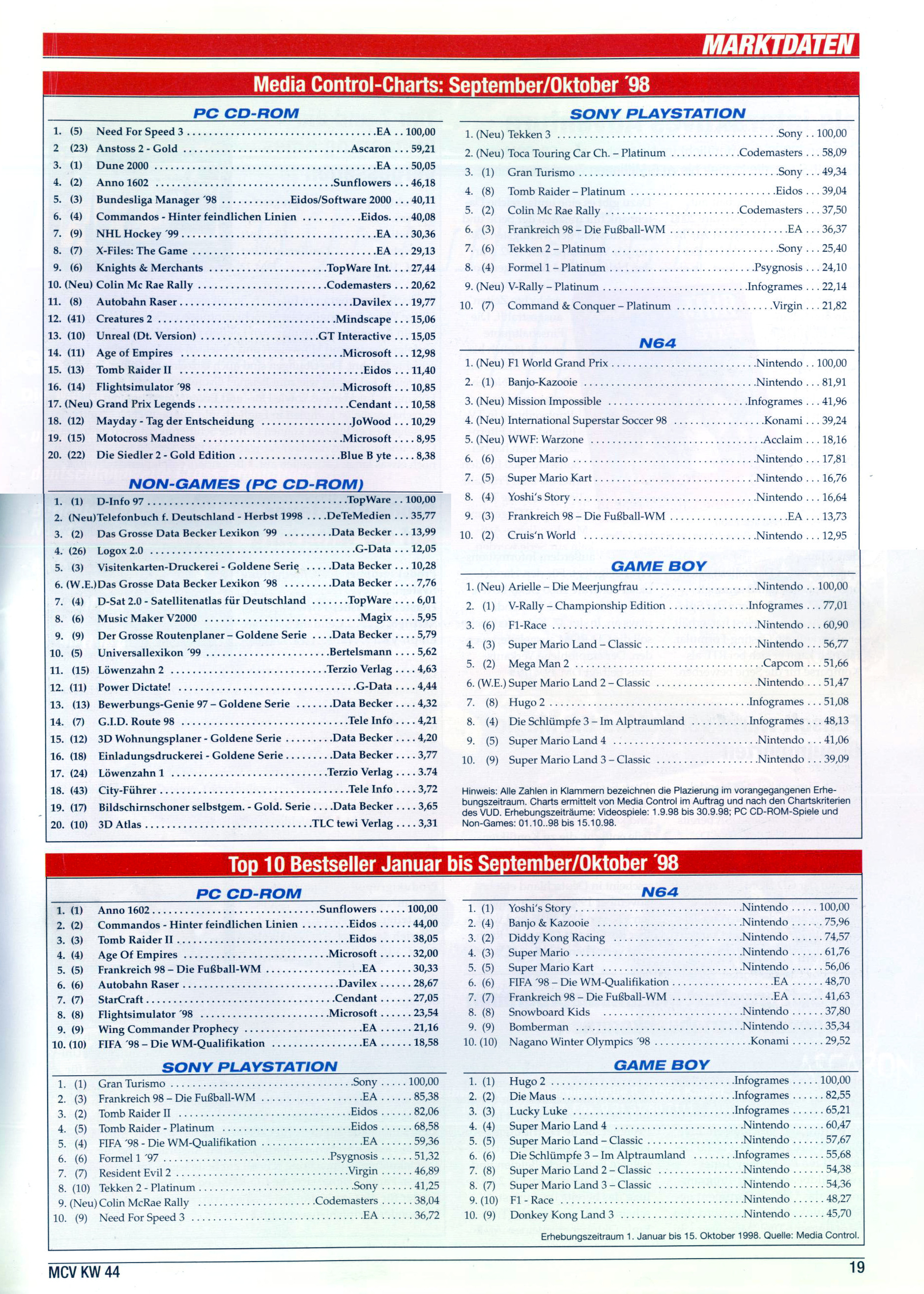 German PC and Video Game sales charts 1995 to 2001 (MCV)