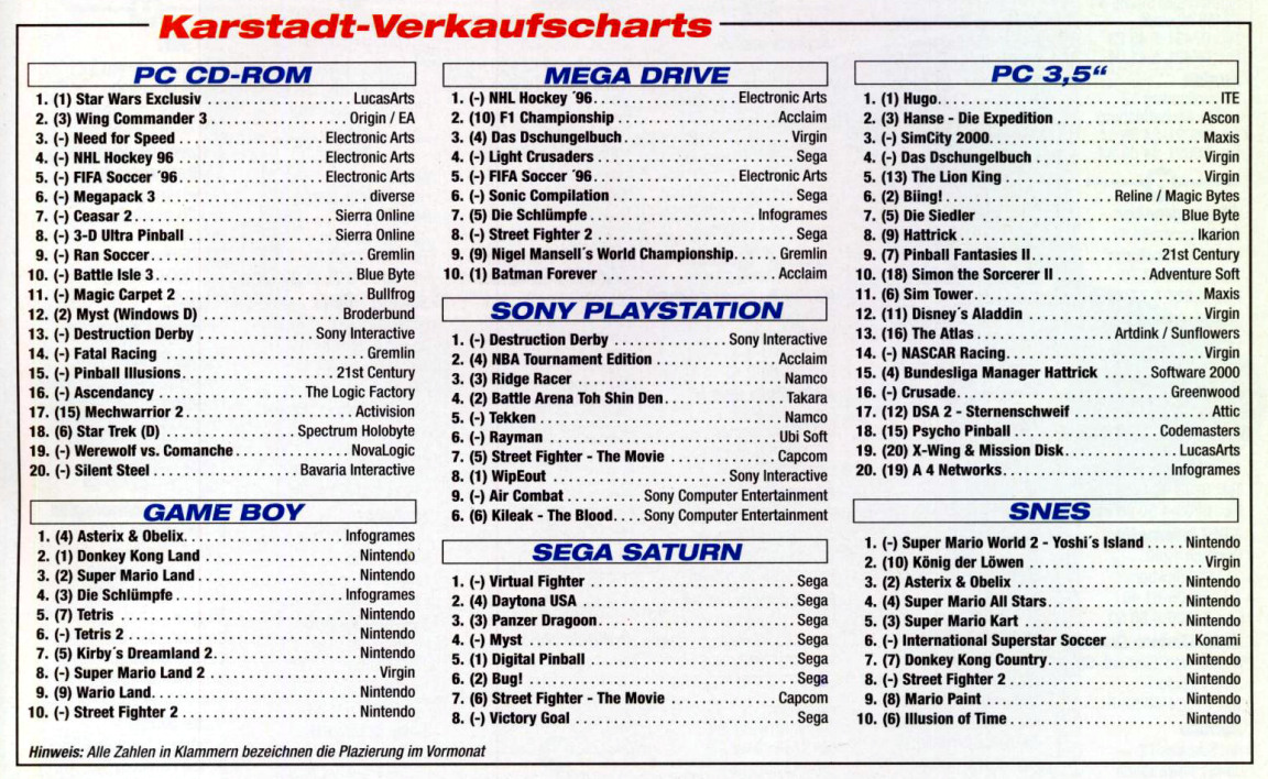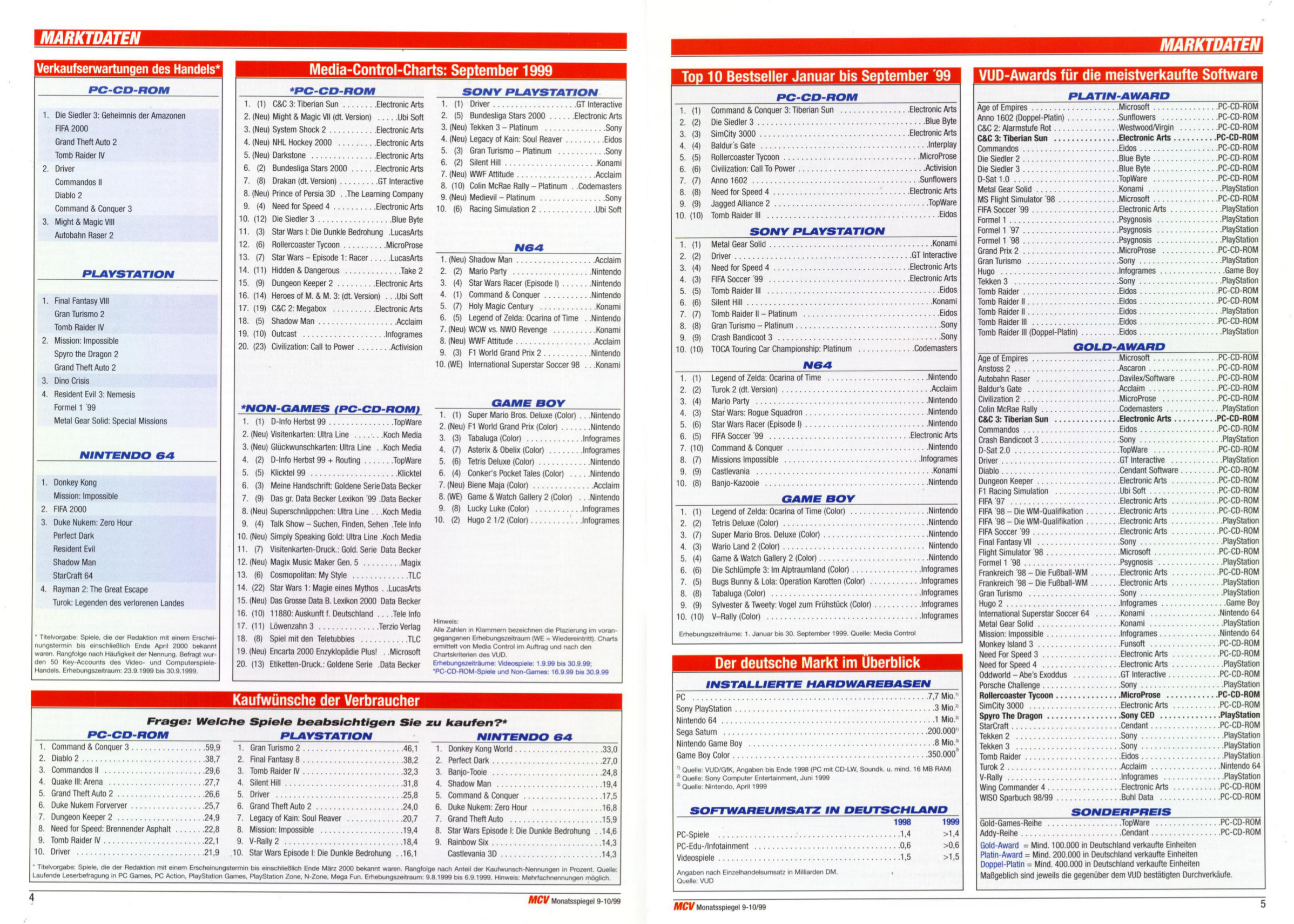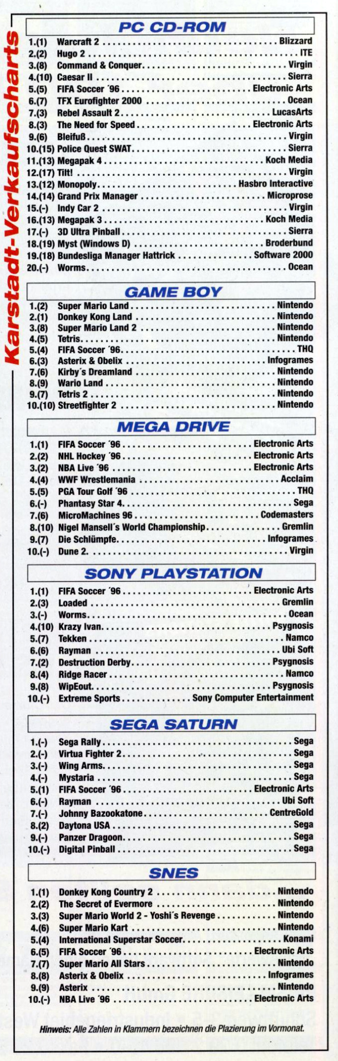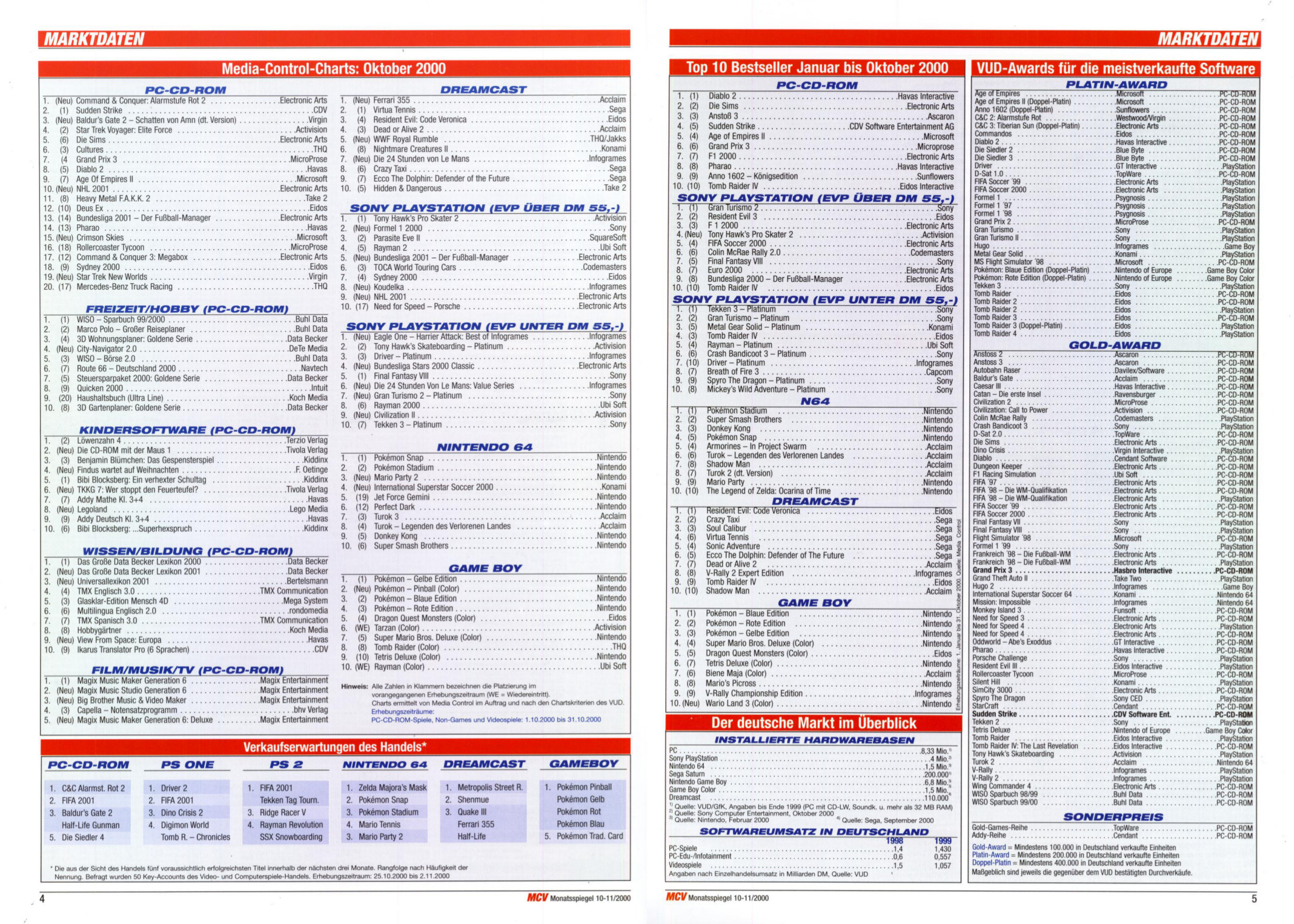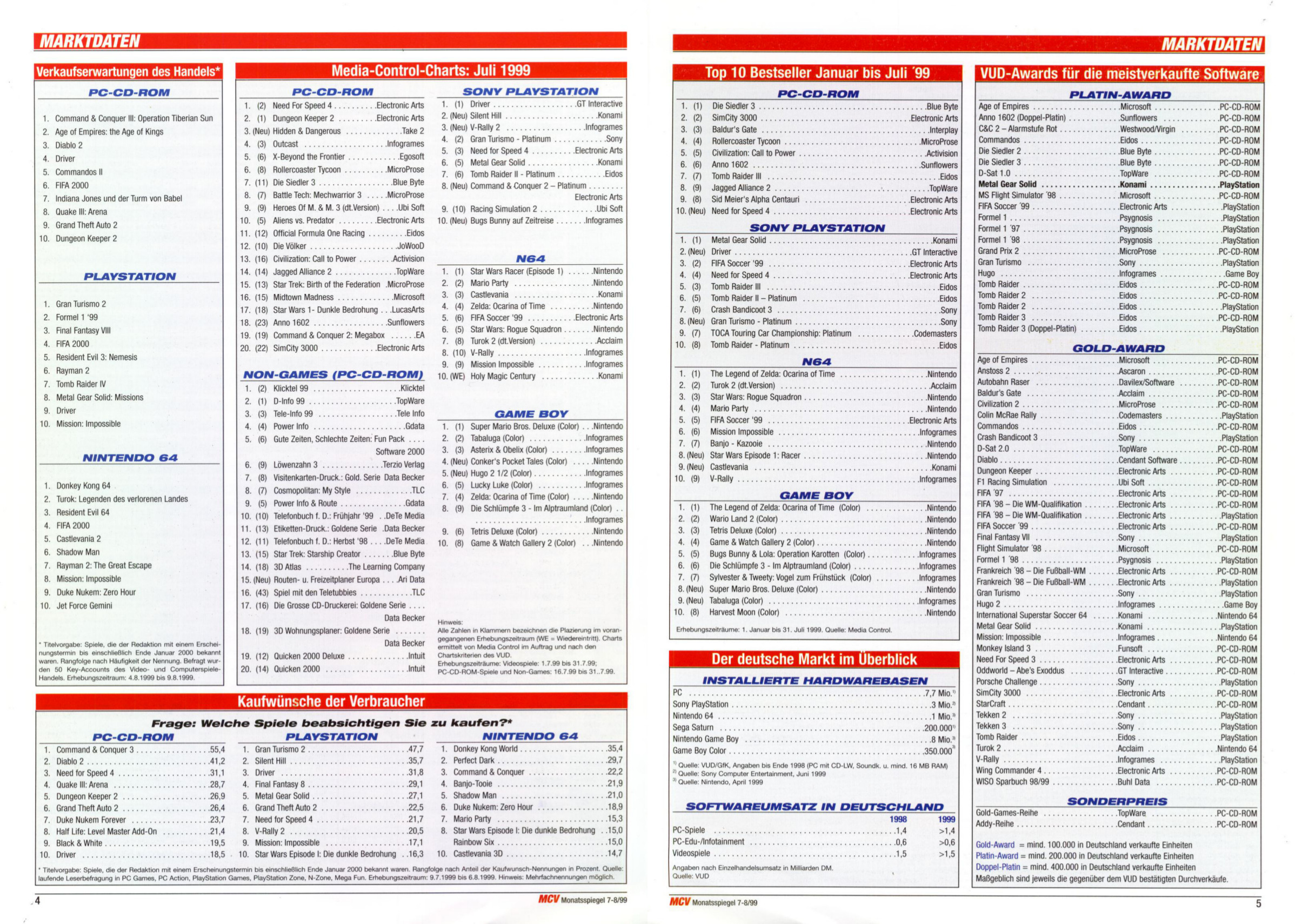German PC and Video Game sales charts 1995 to 2001 (MCV)