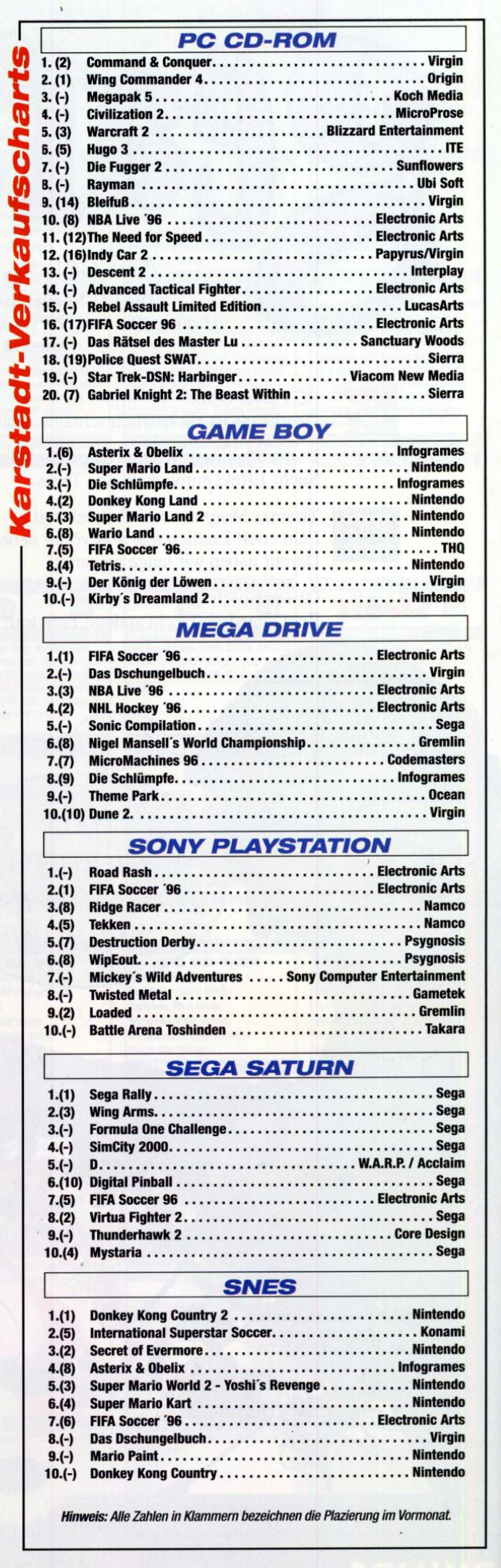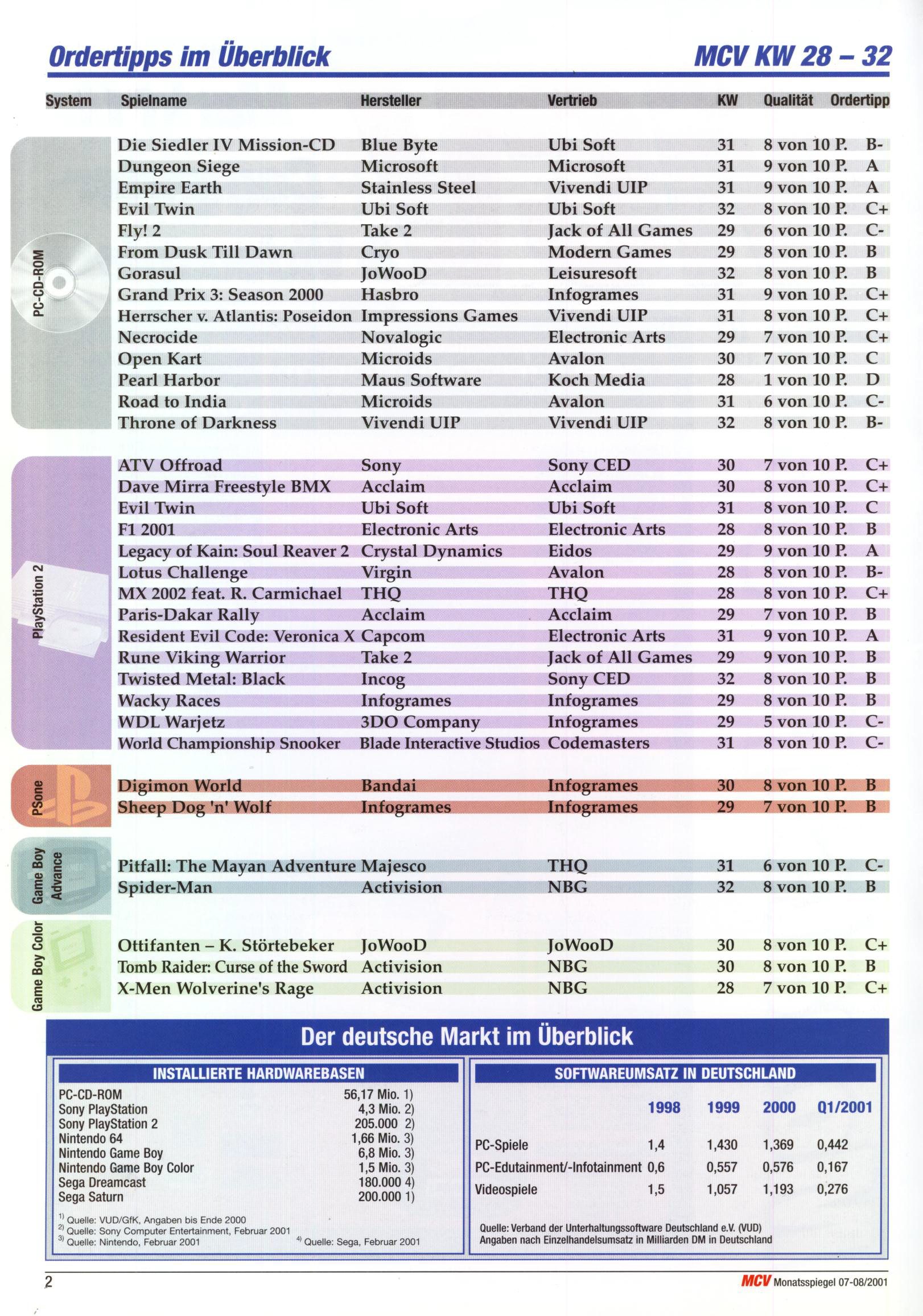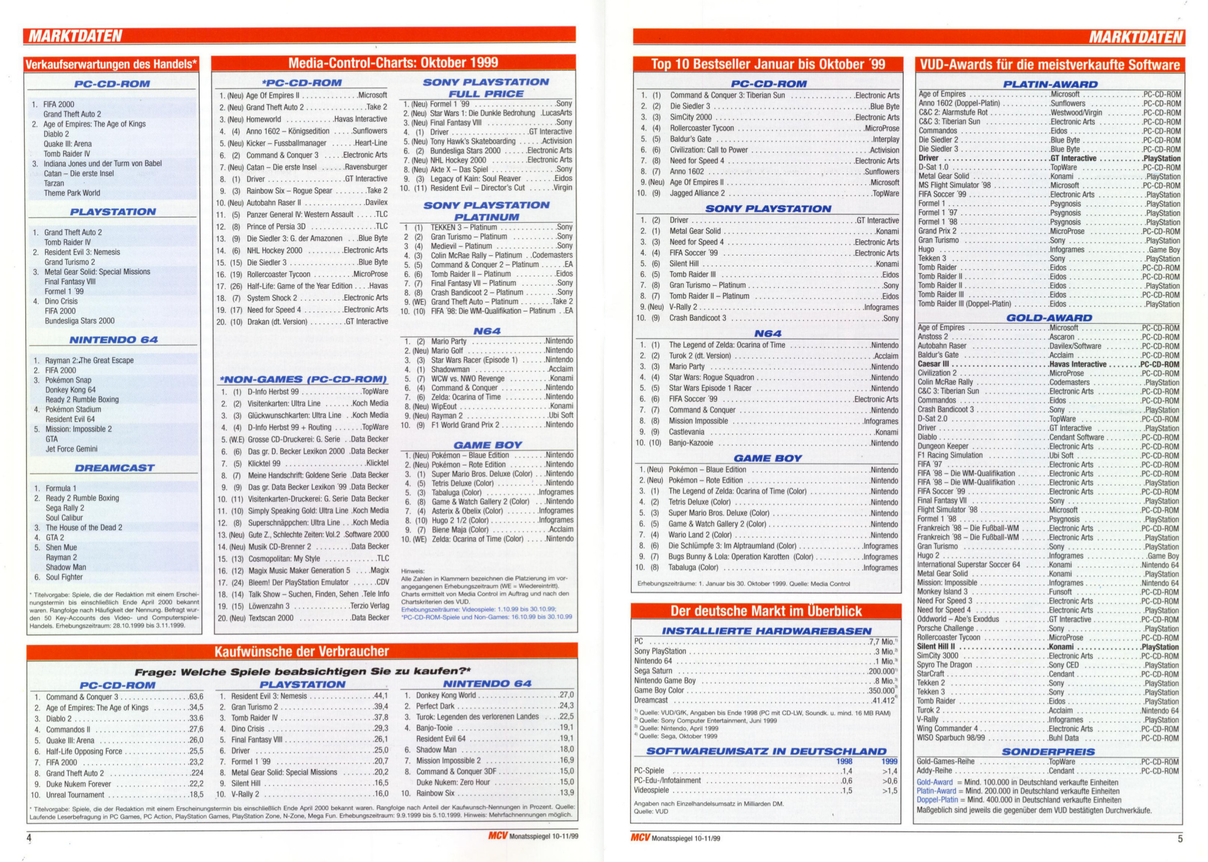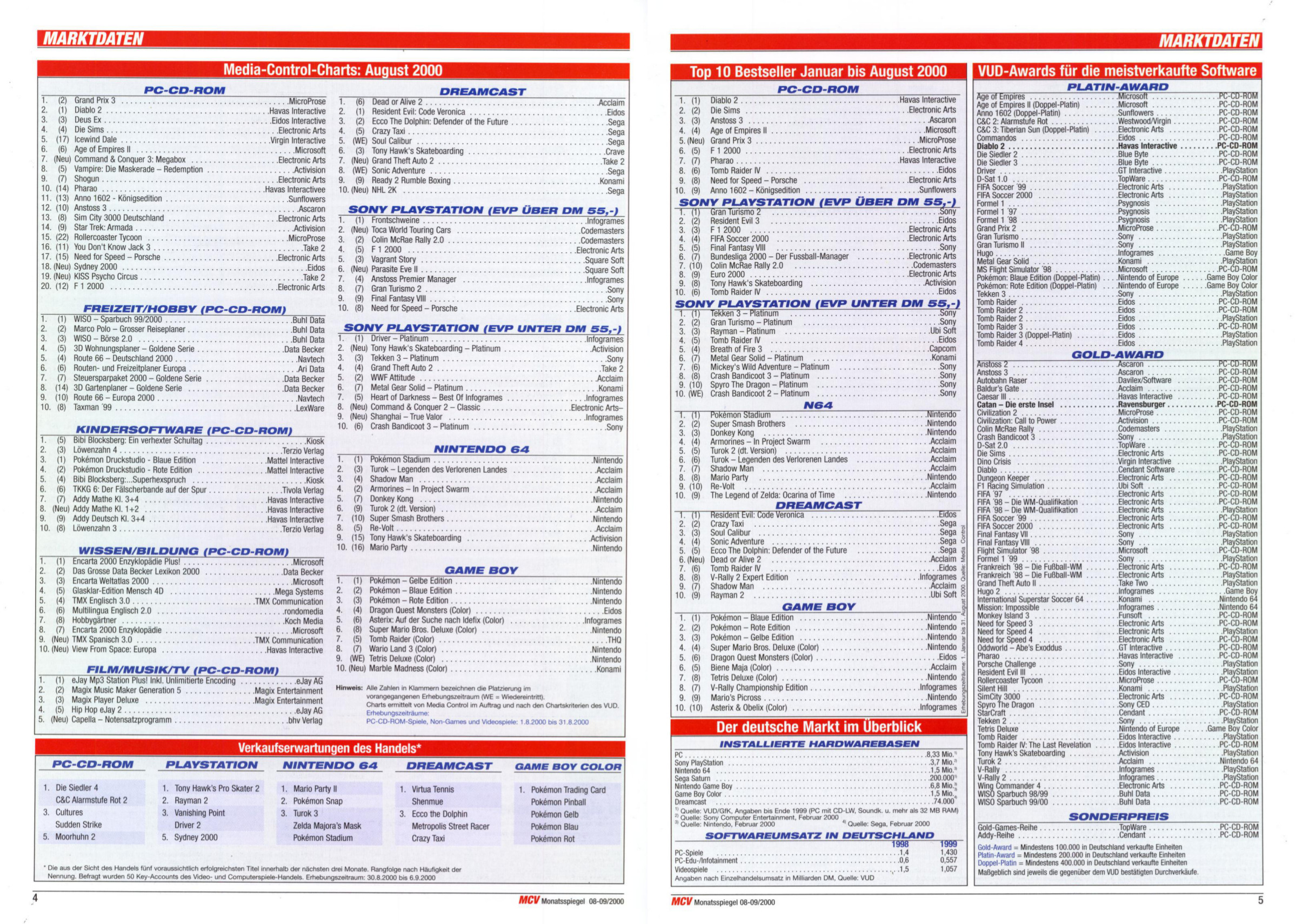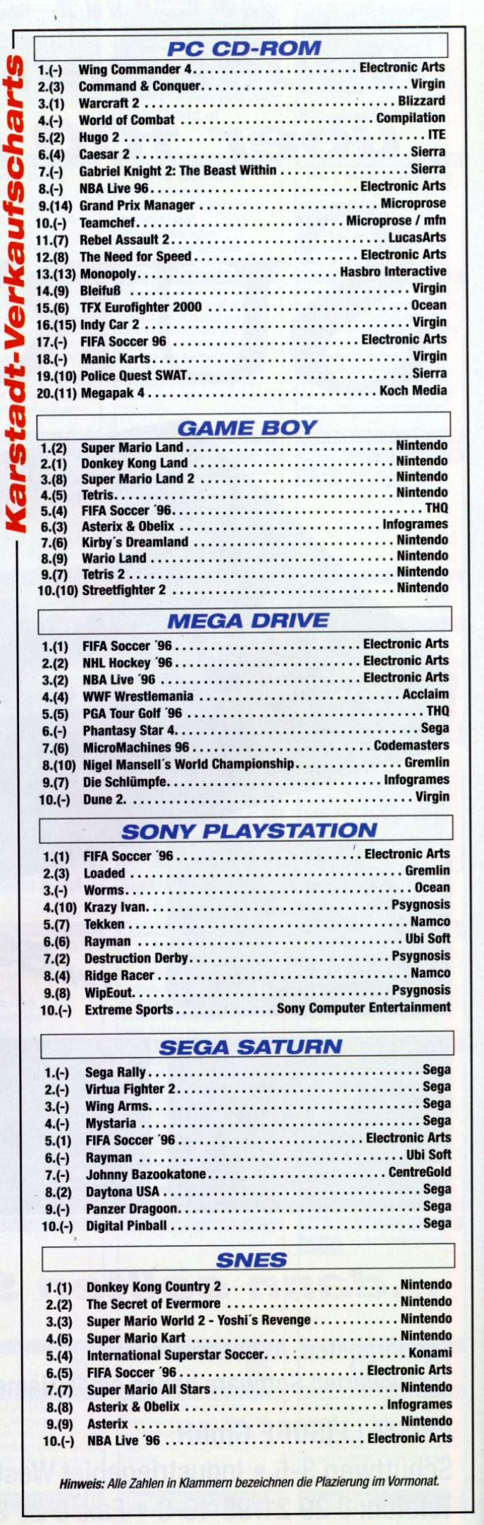 German PC and Video Game sales charts 1995 to 2001 (MCV)