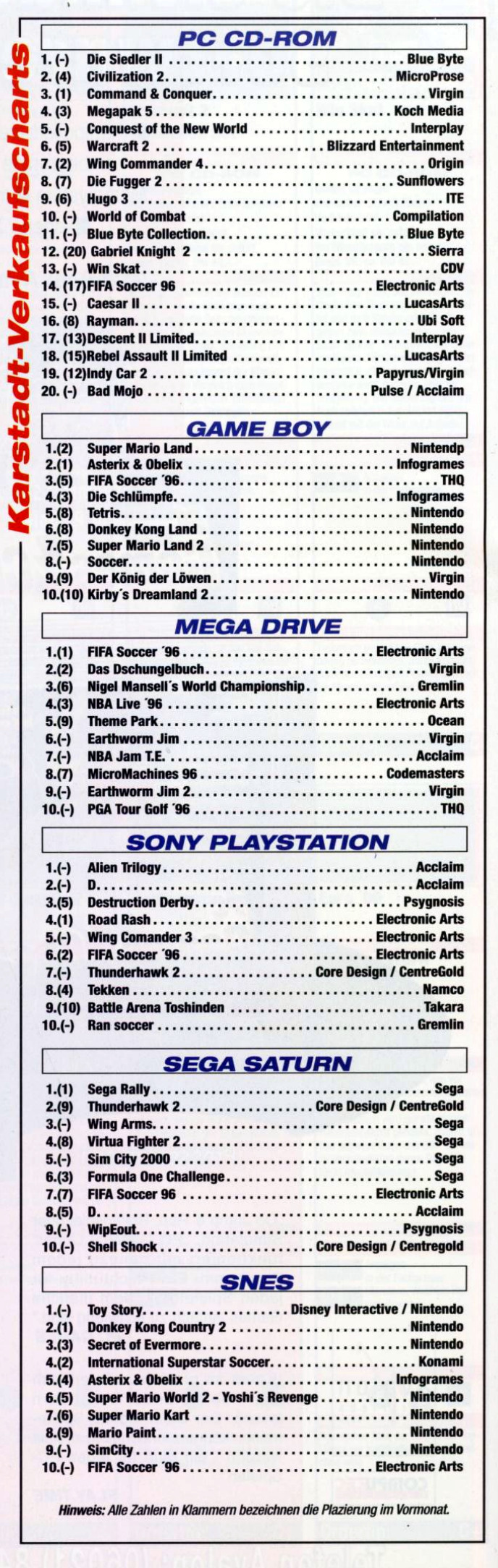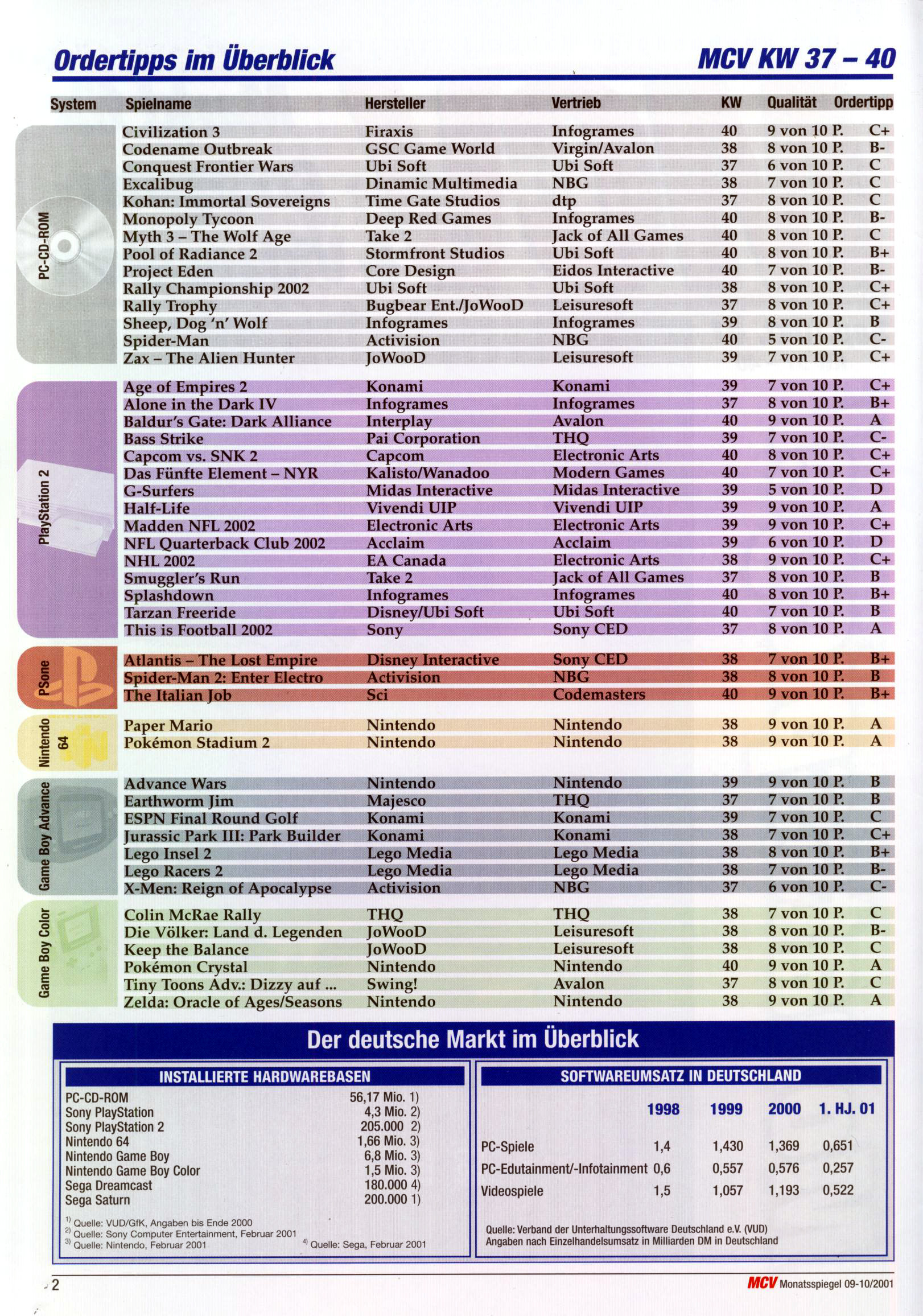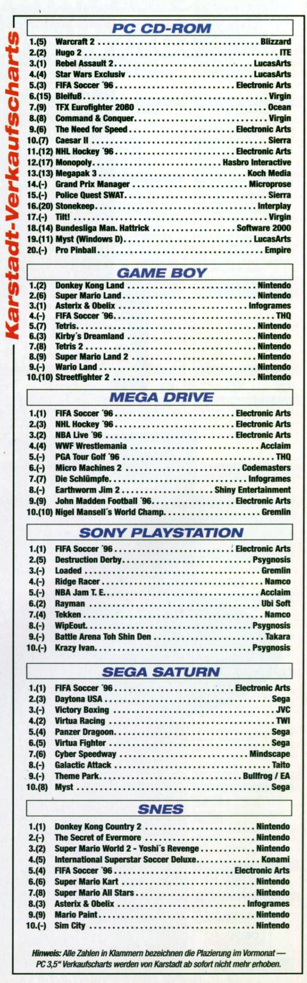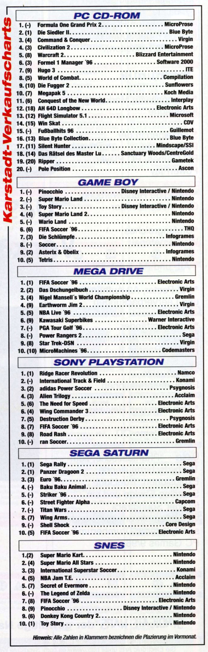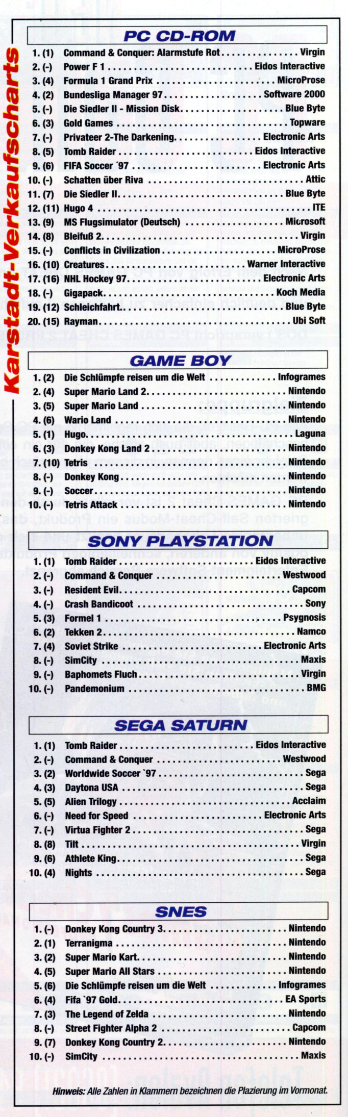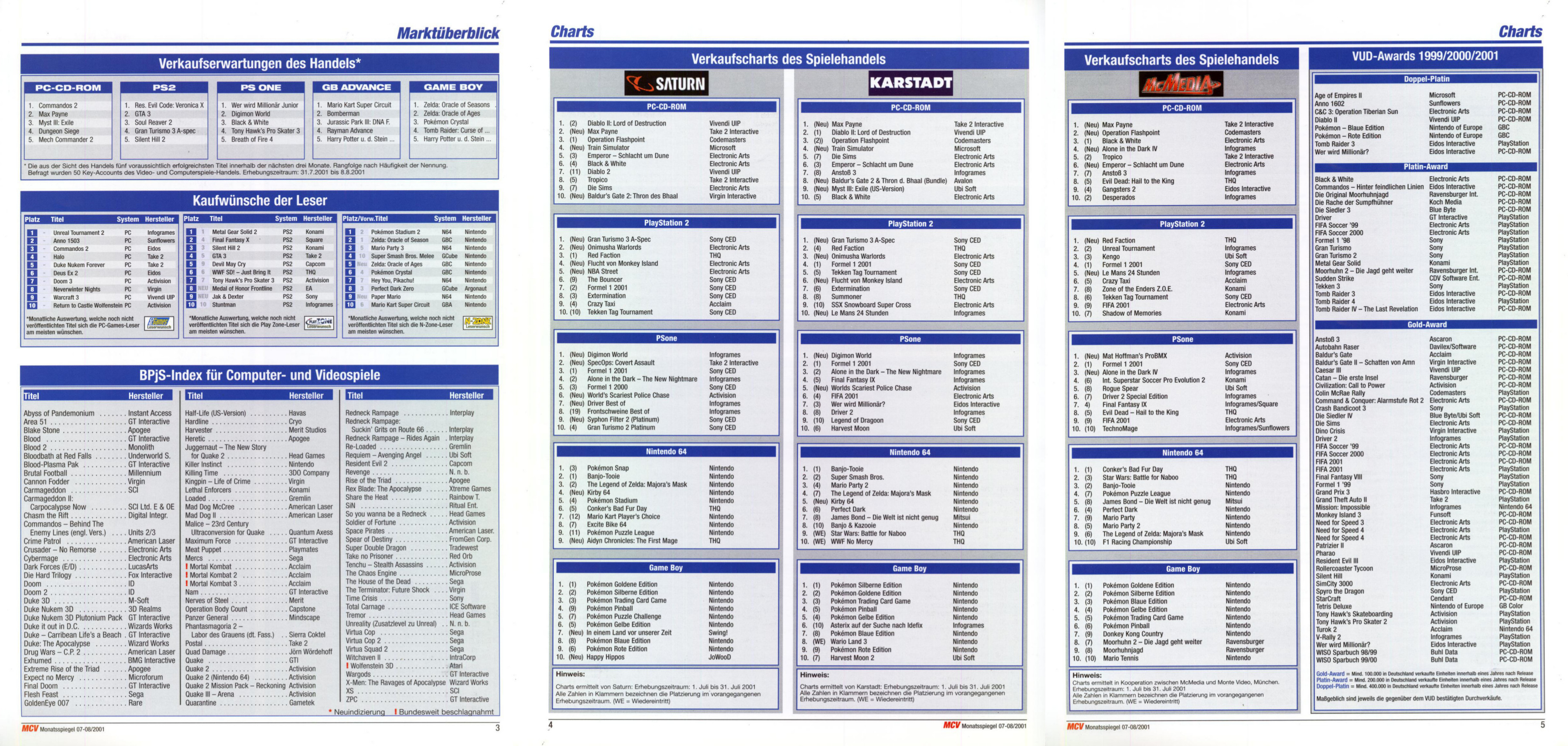 German PC and Video Game sales charts 1995 to 2001 (MCV)