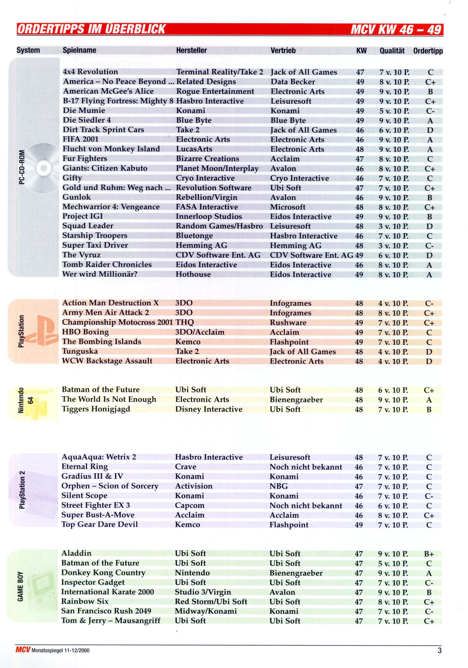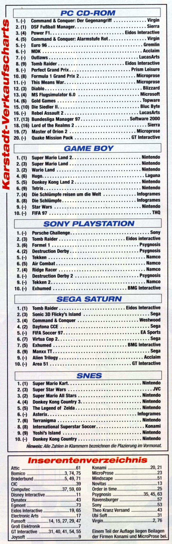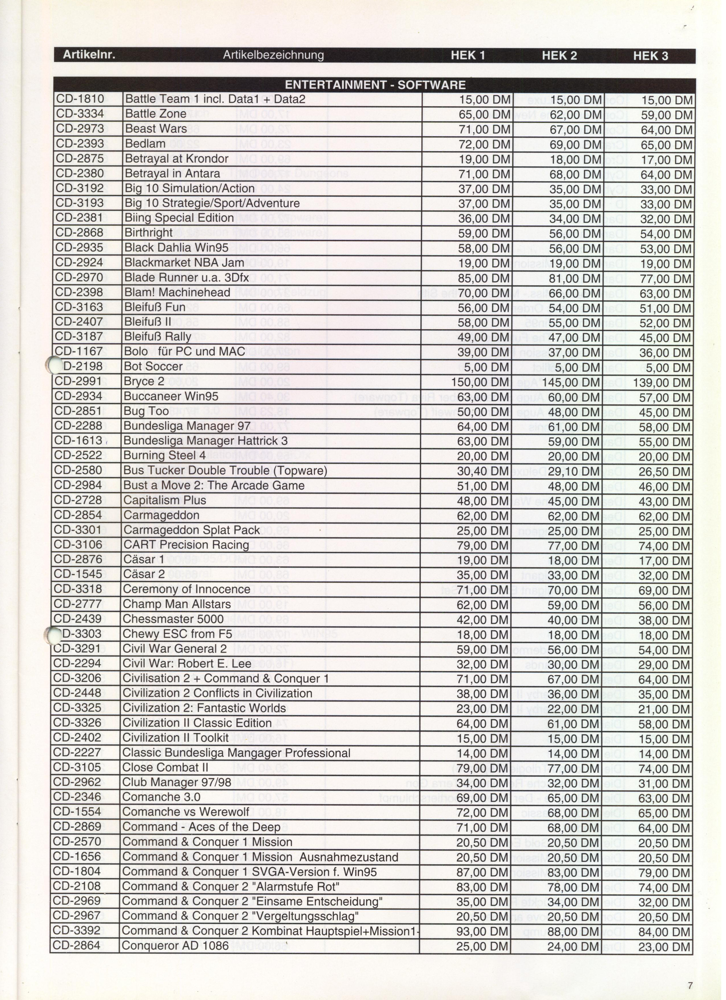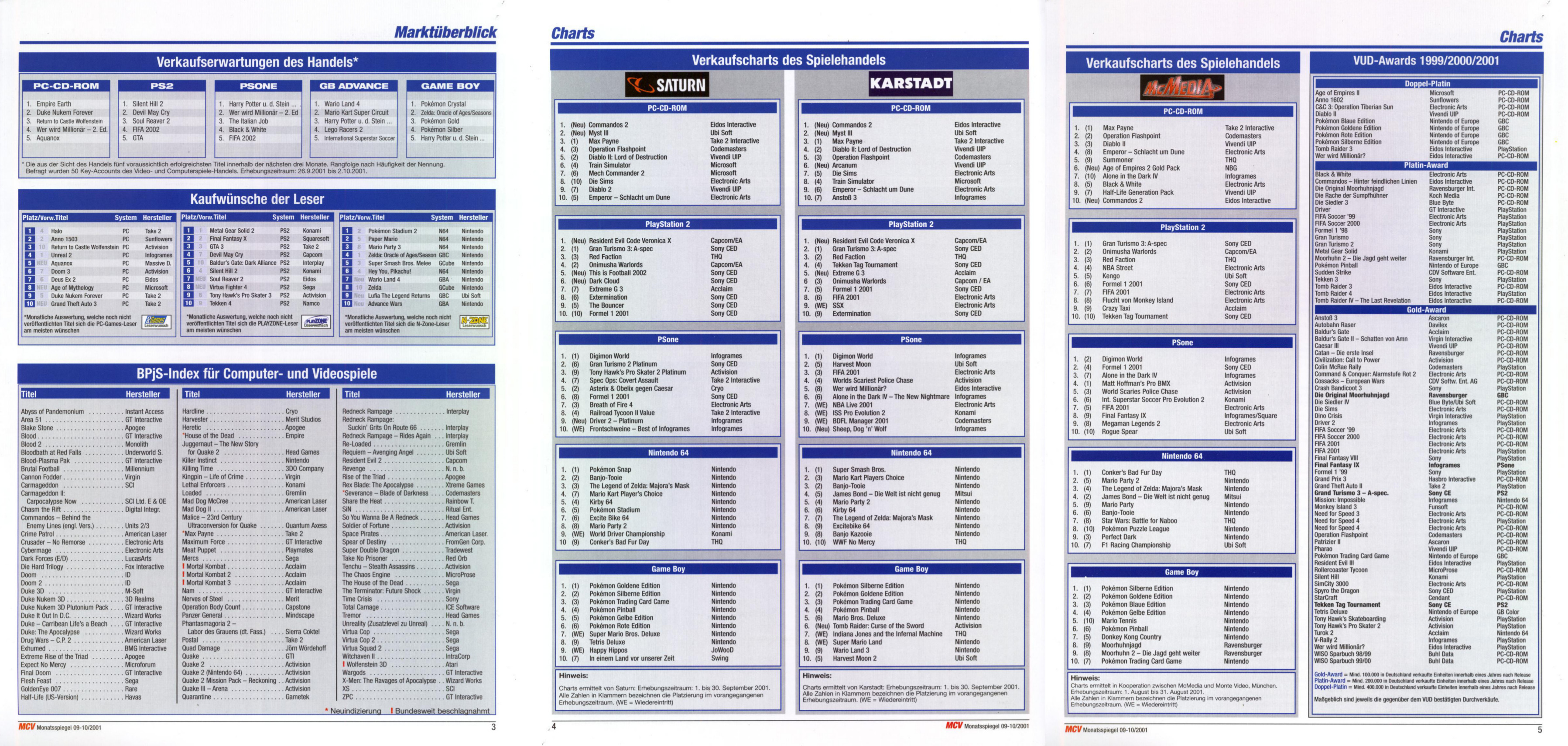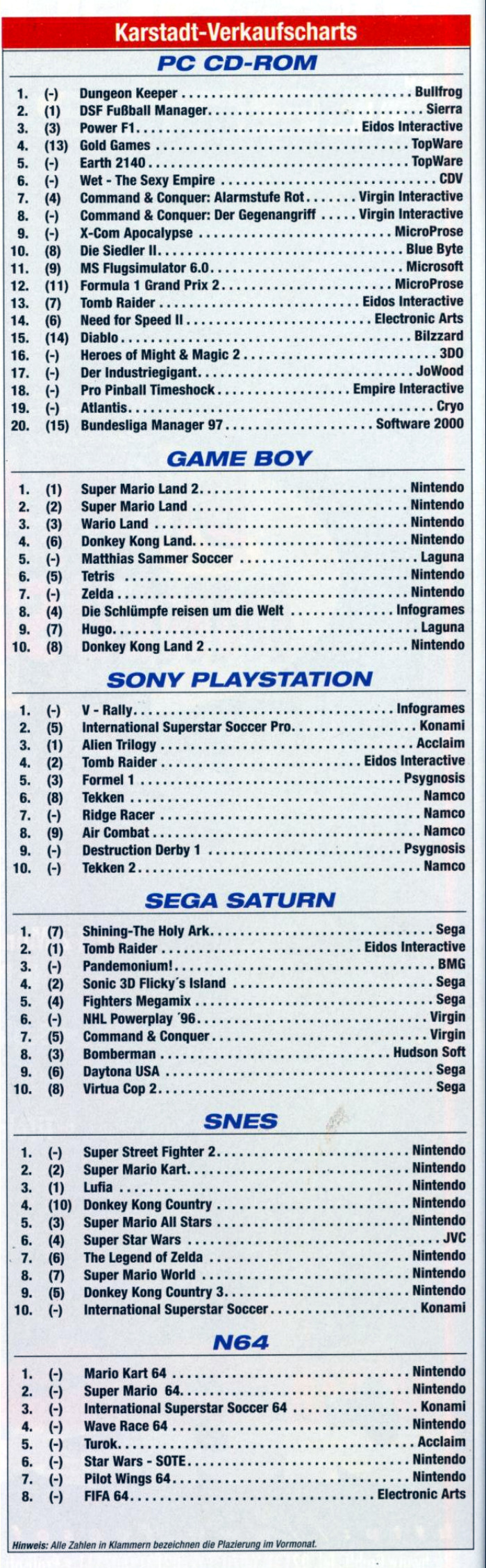 German PC and Video Game sales charts 1995 to 2001 (MCV)