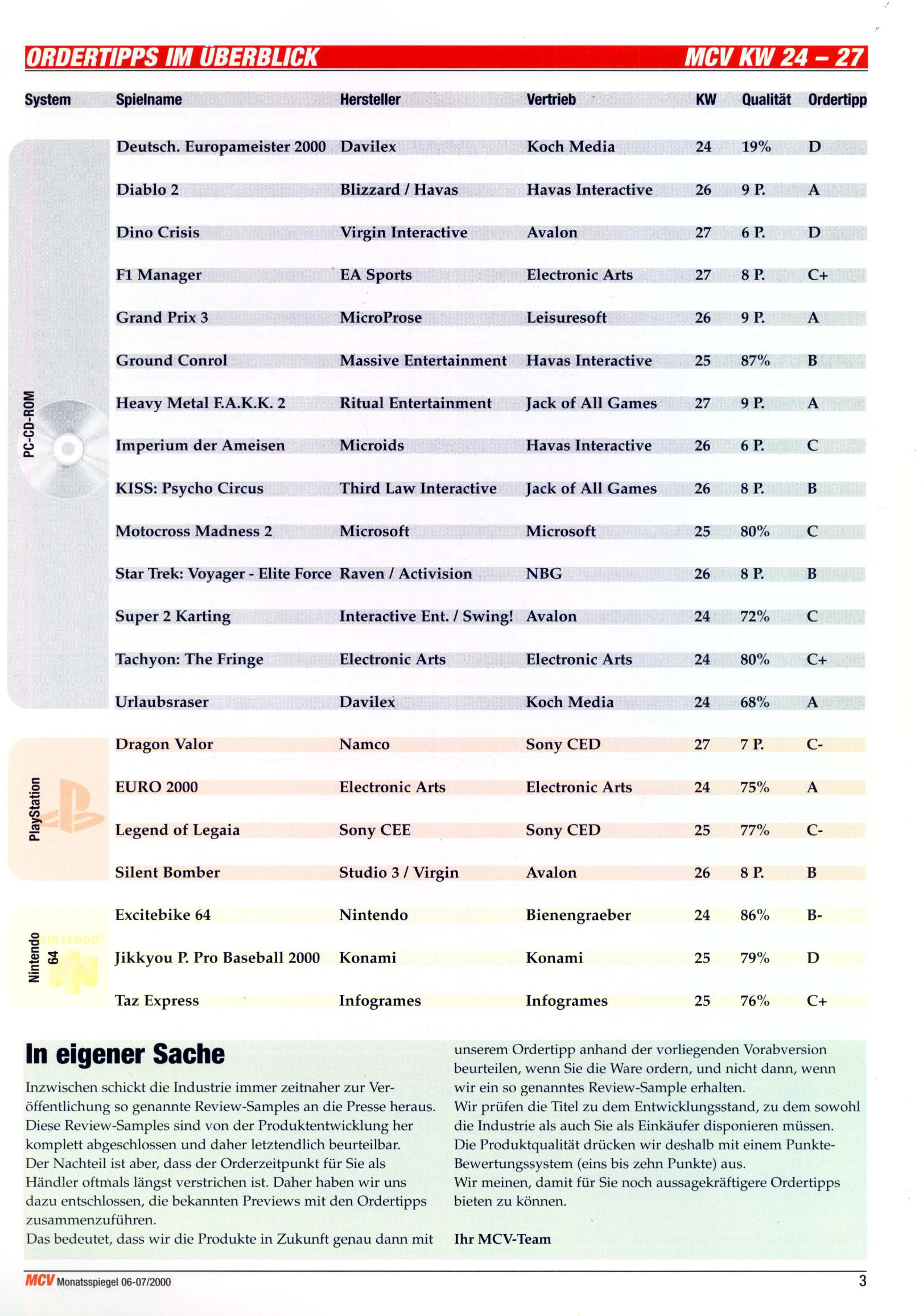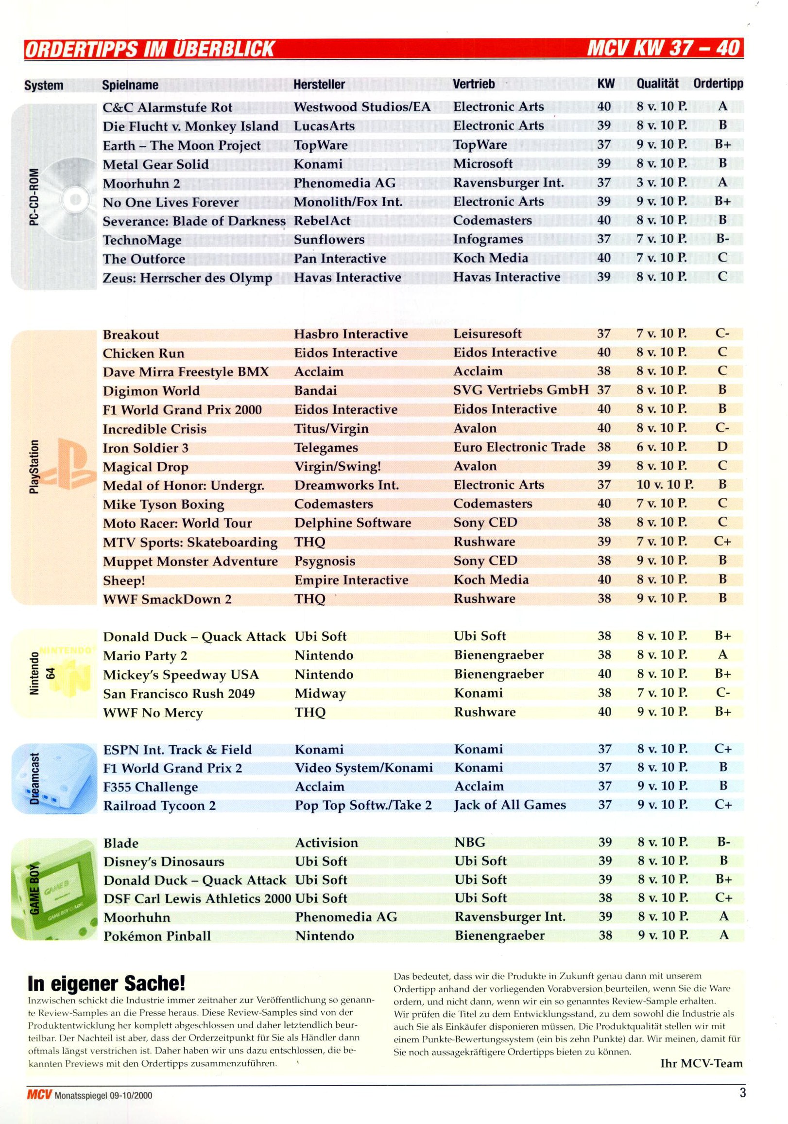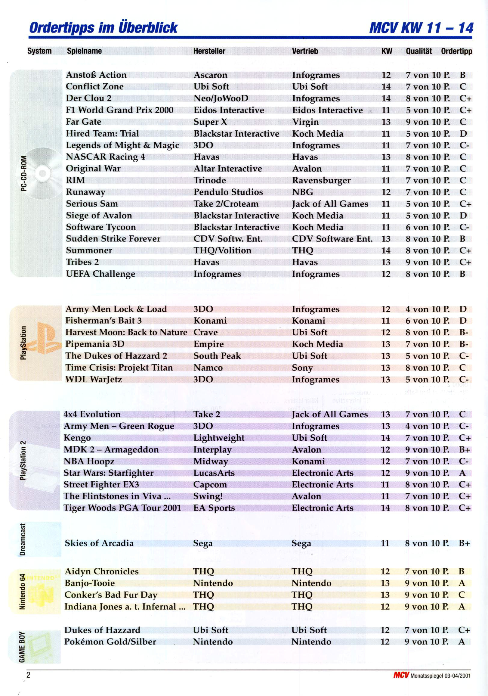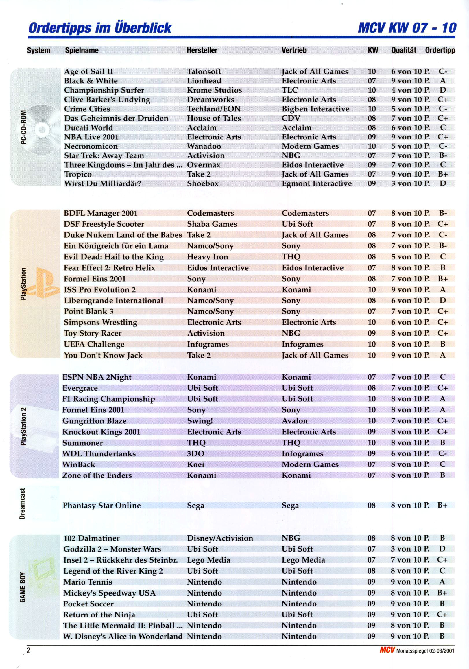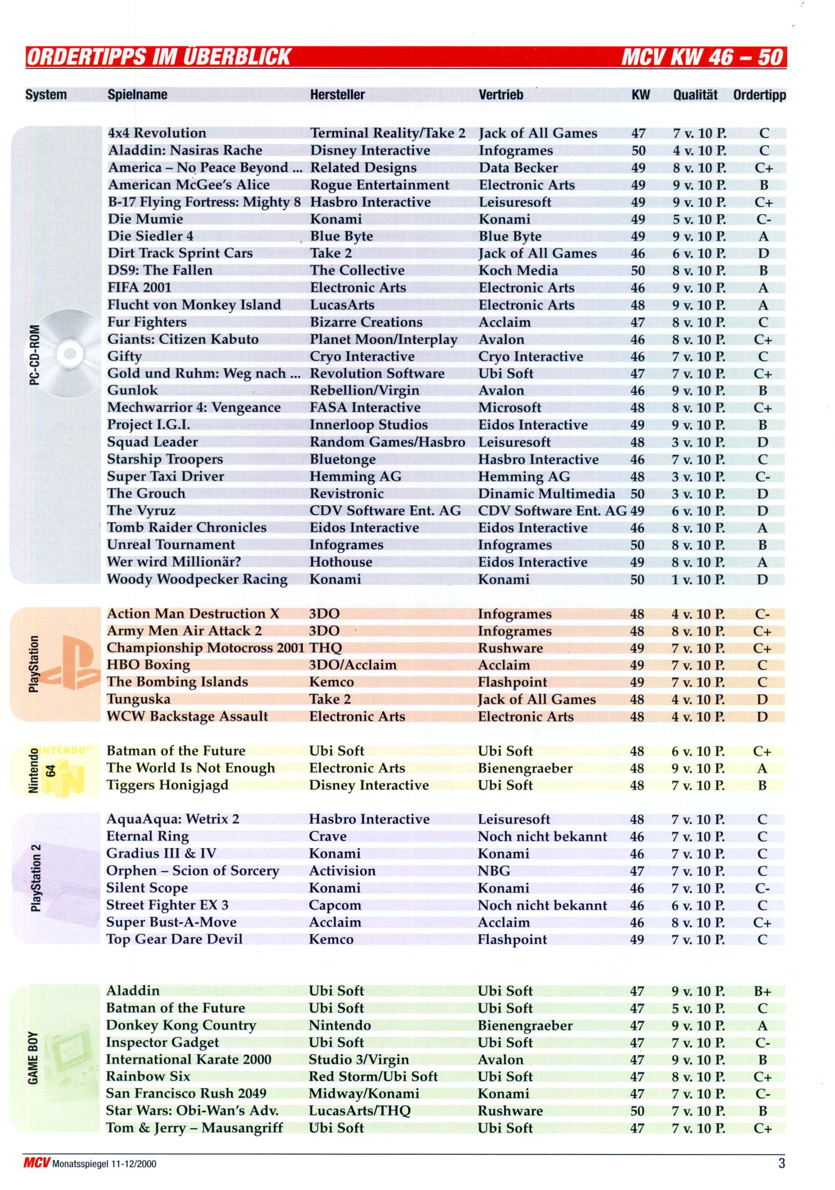 German PC and Video Game sales charts 1995 to 2001 (MCV)