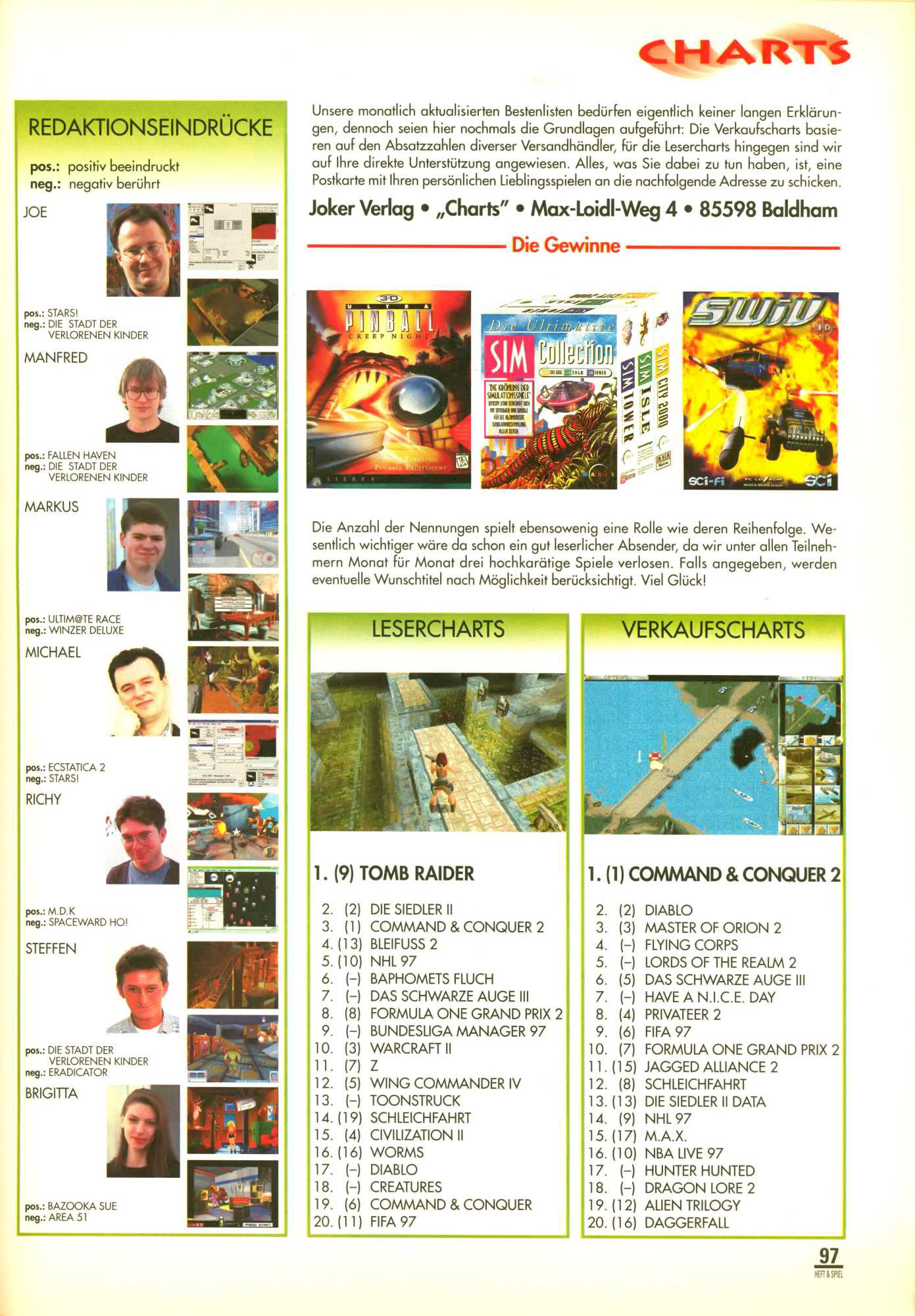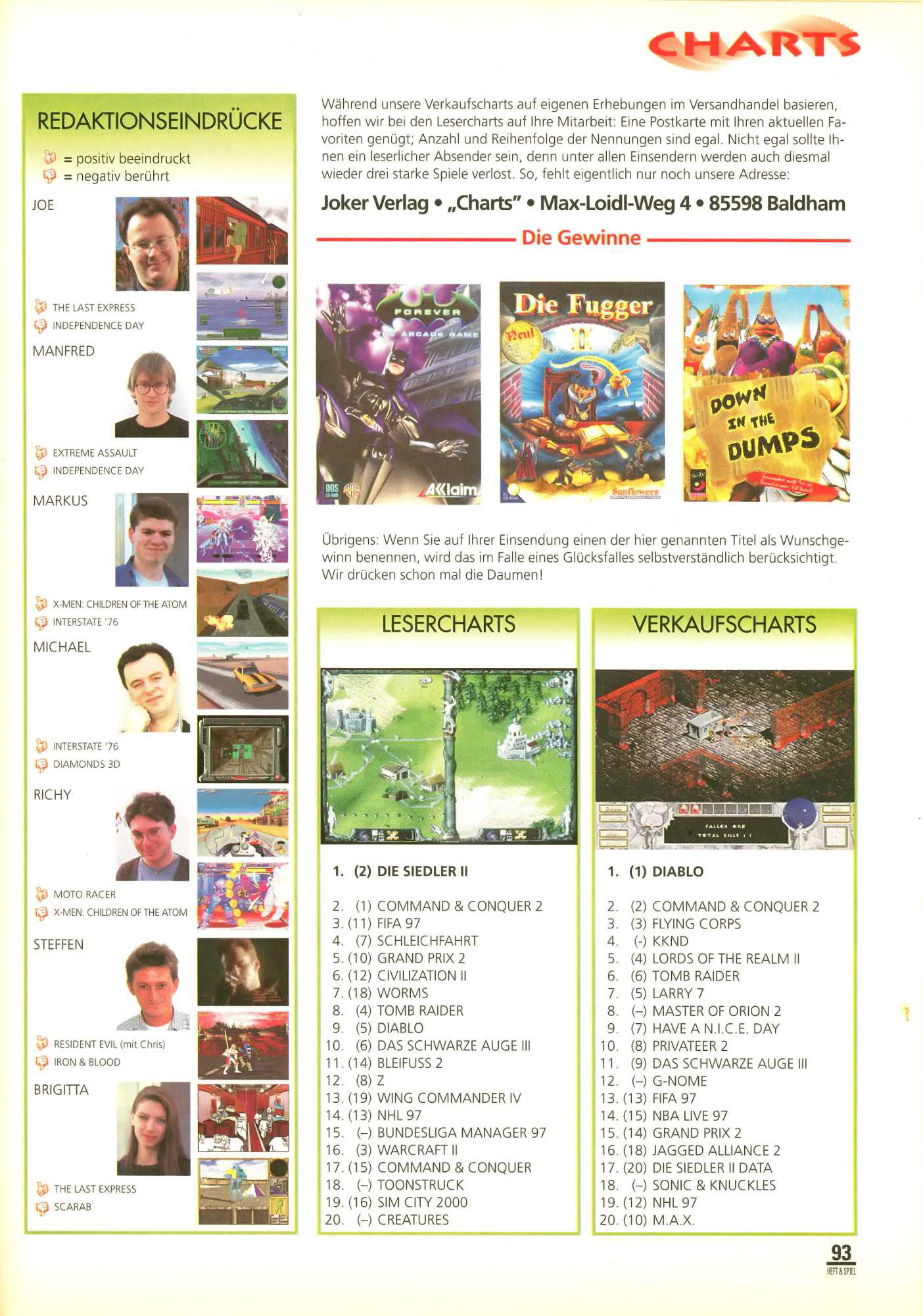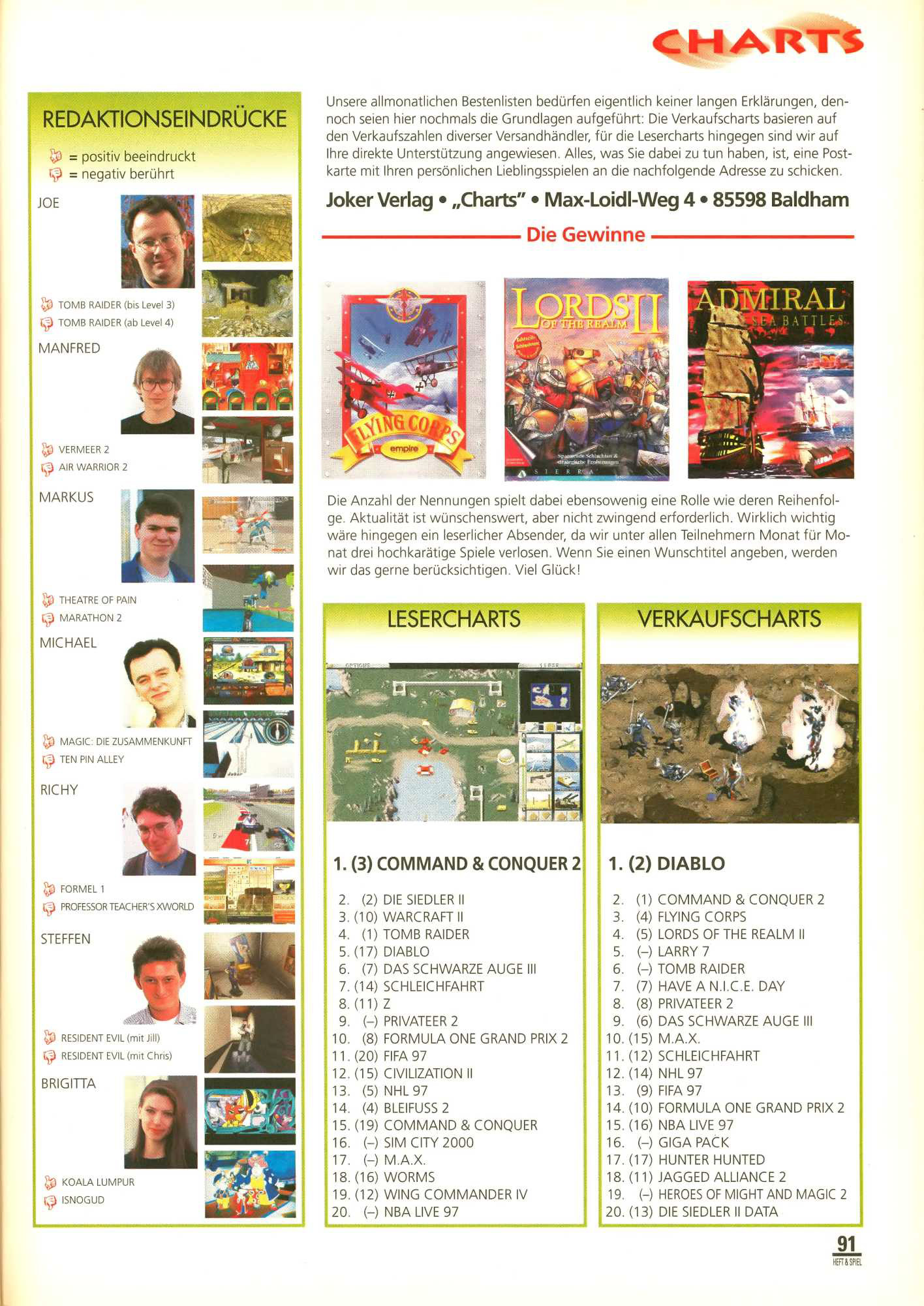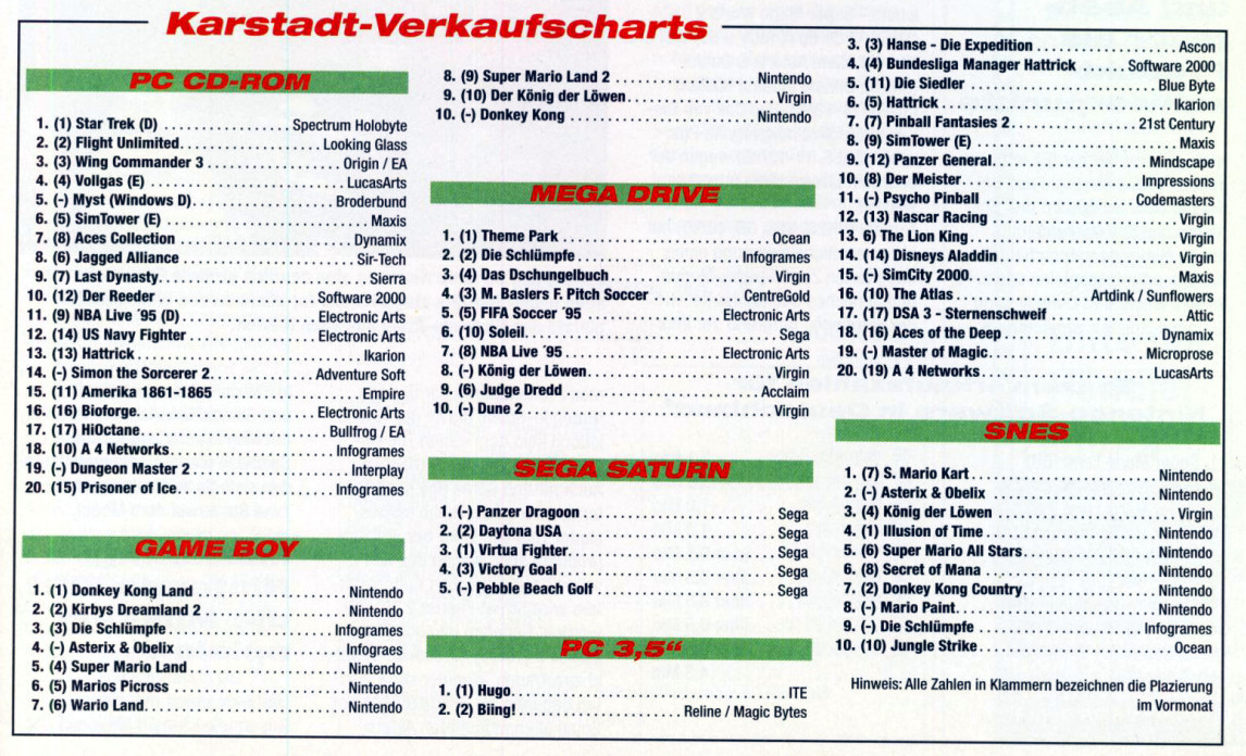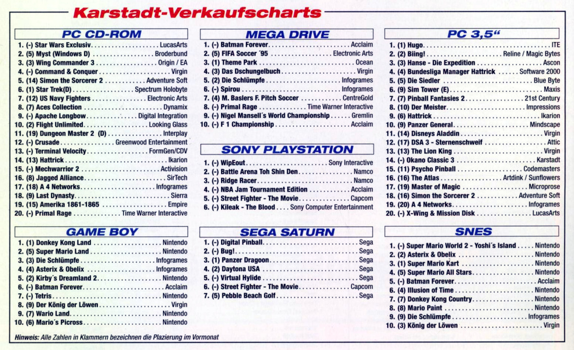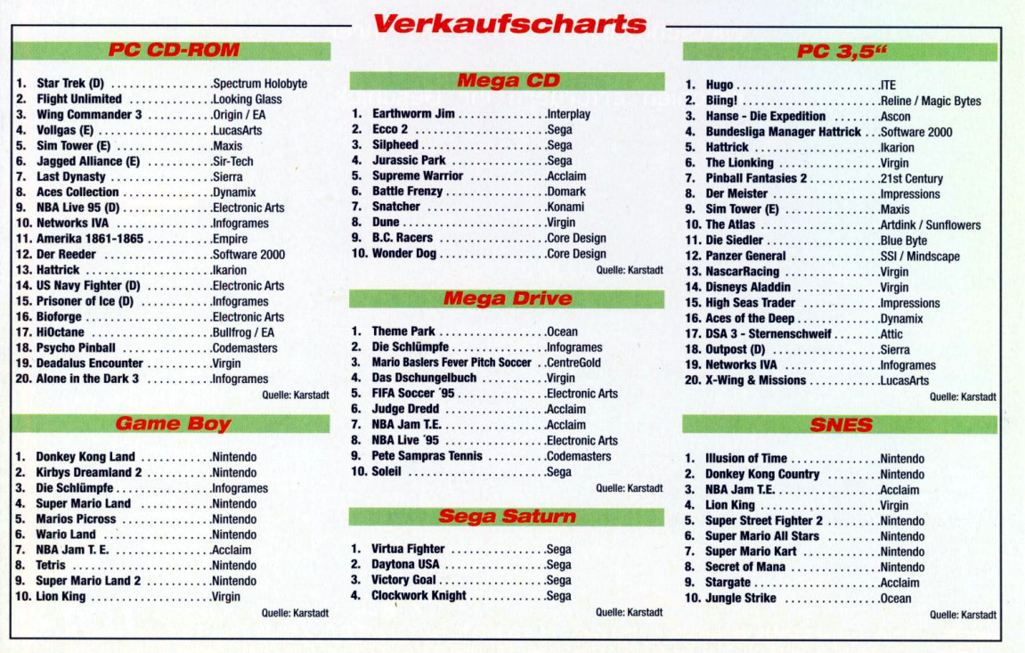 German PC Game sales charts 1991 to 2001 (PC Joker)