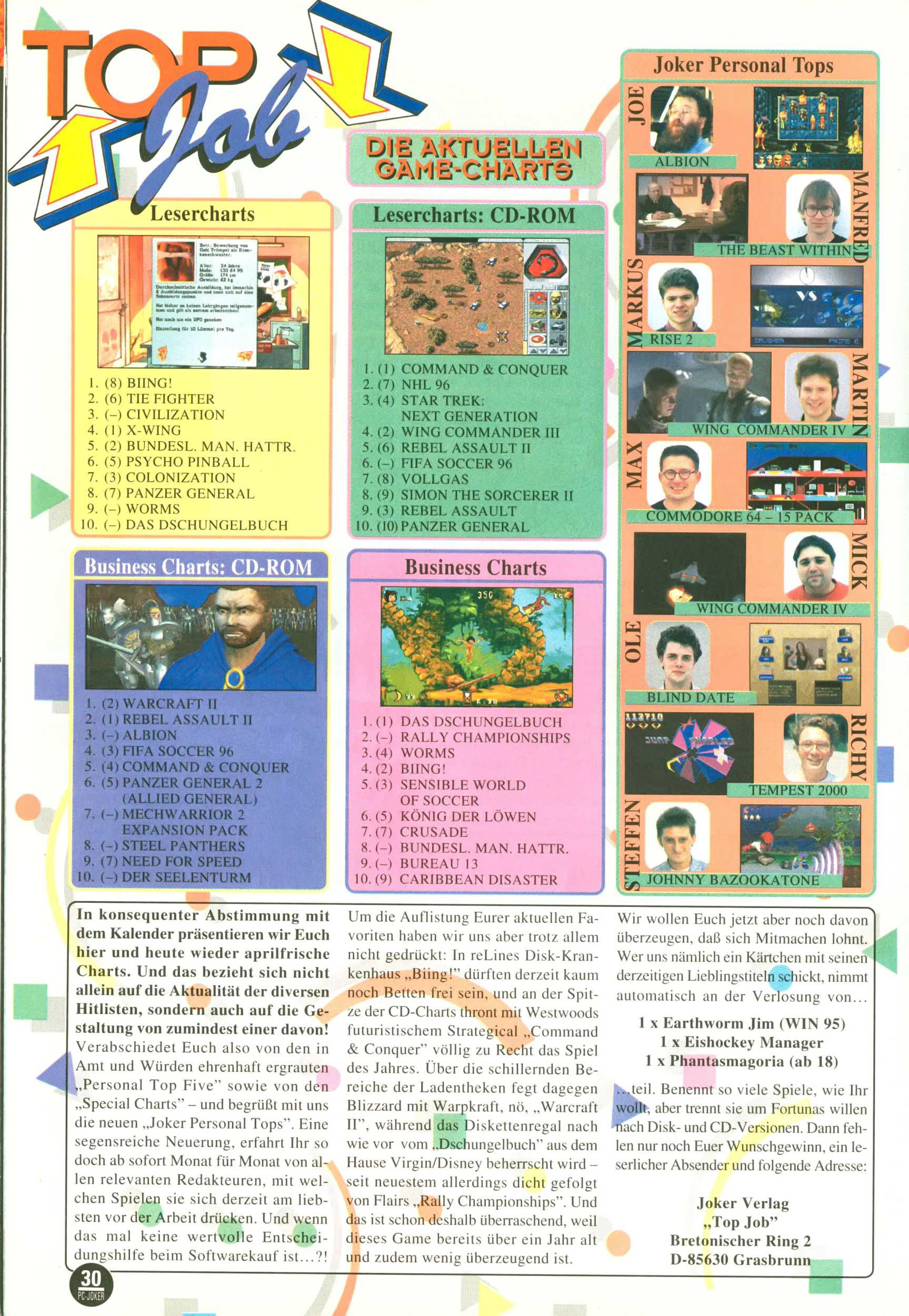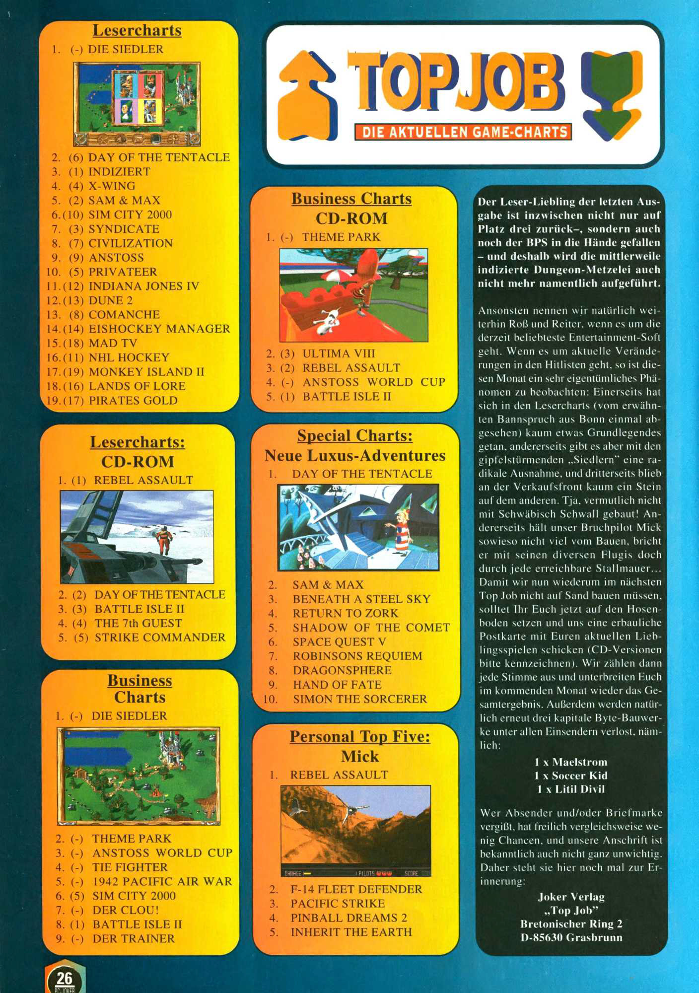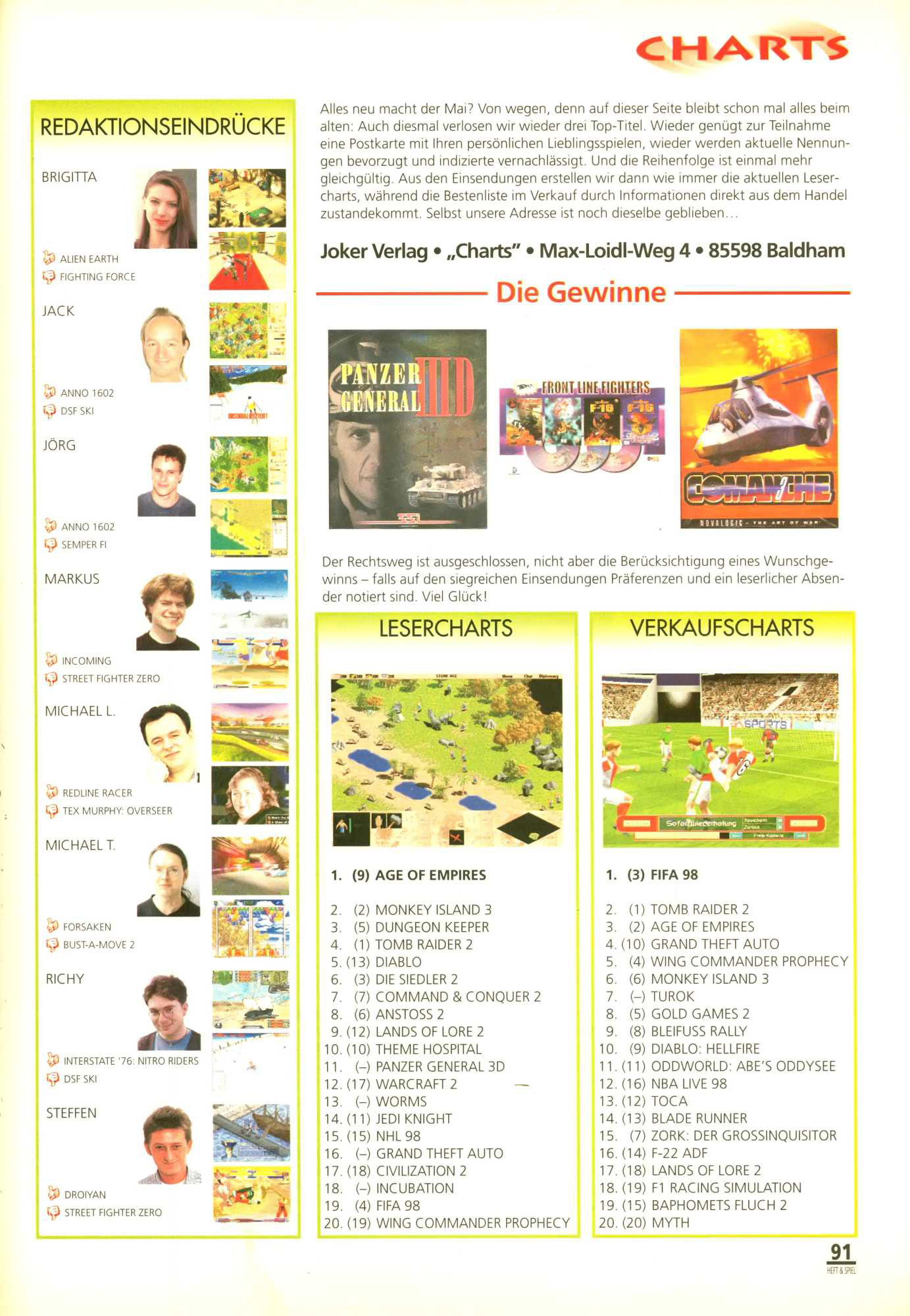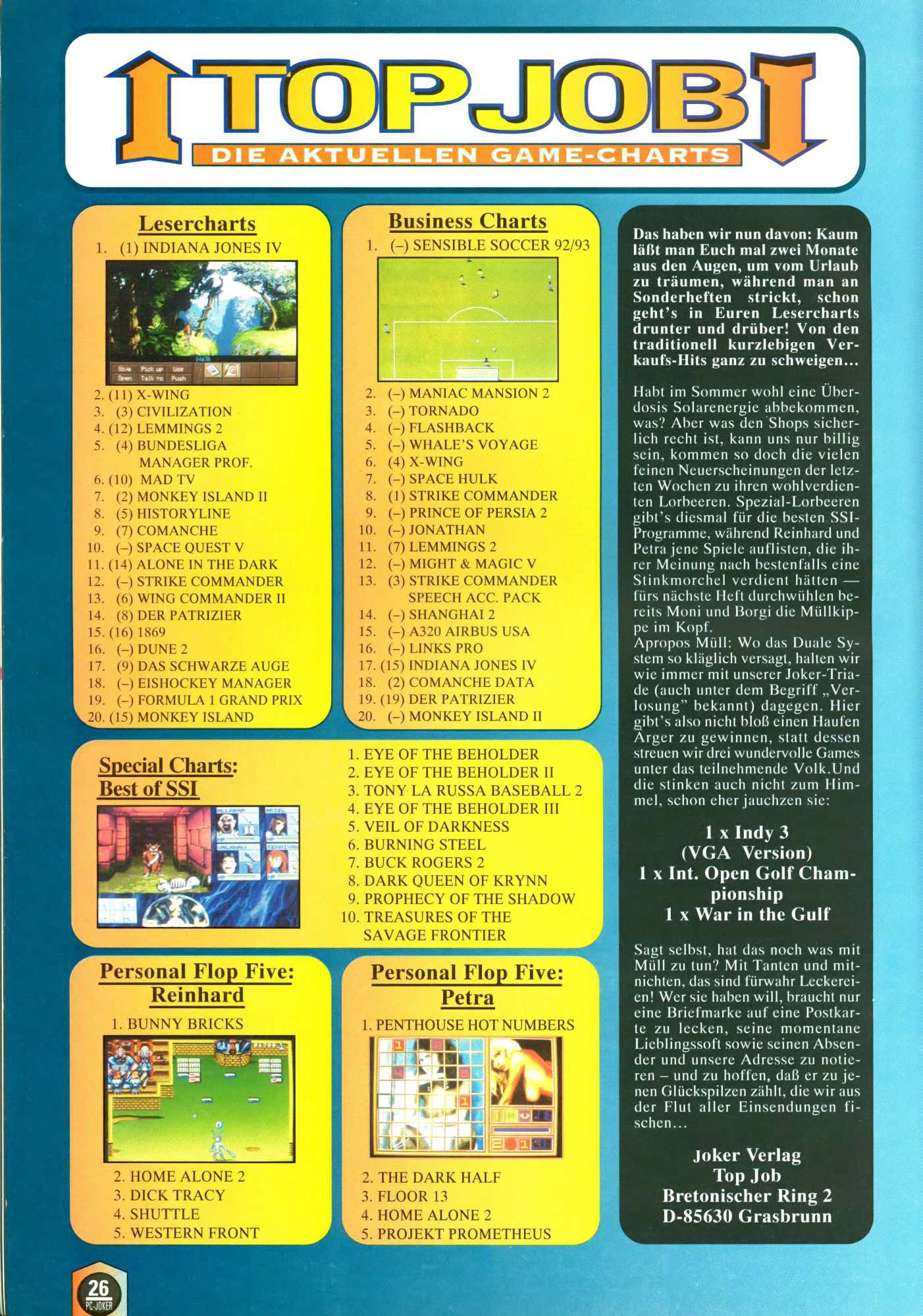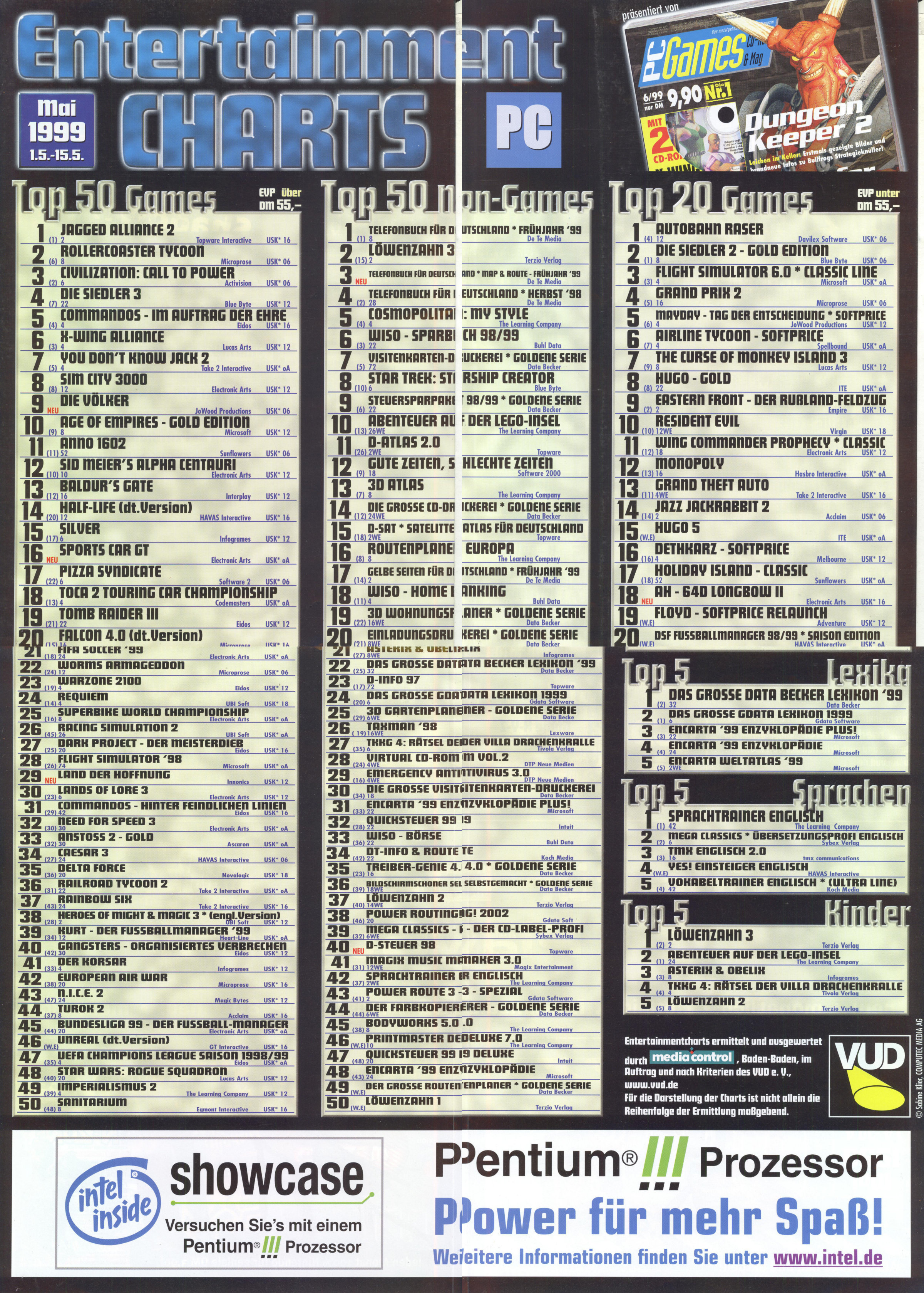 German PC Game sales charts 1991 to 2001 (PC Joker)