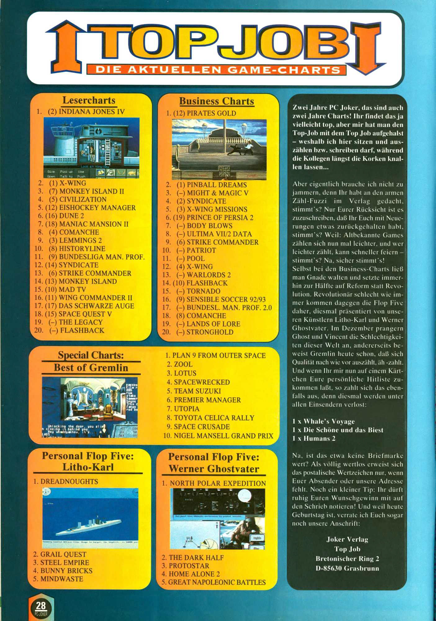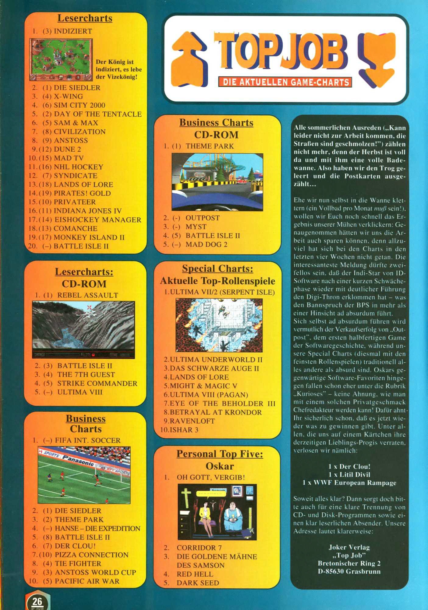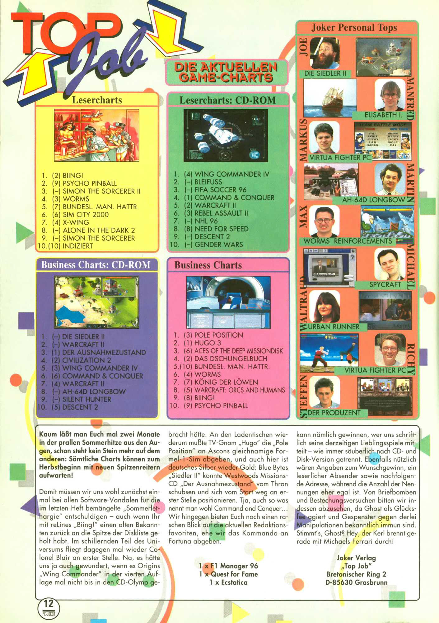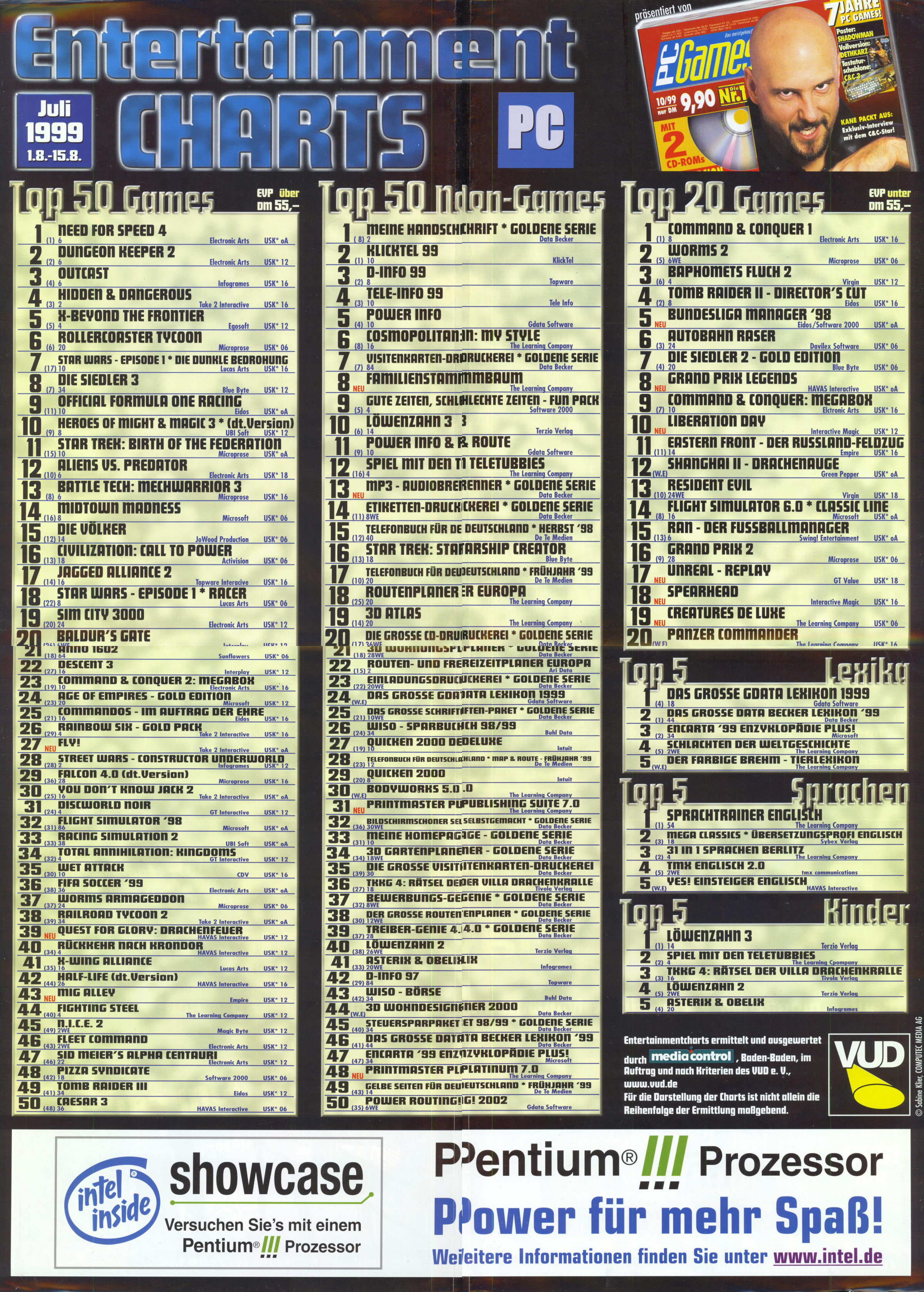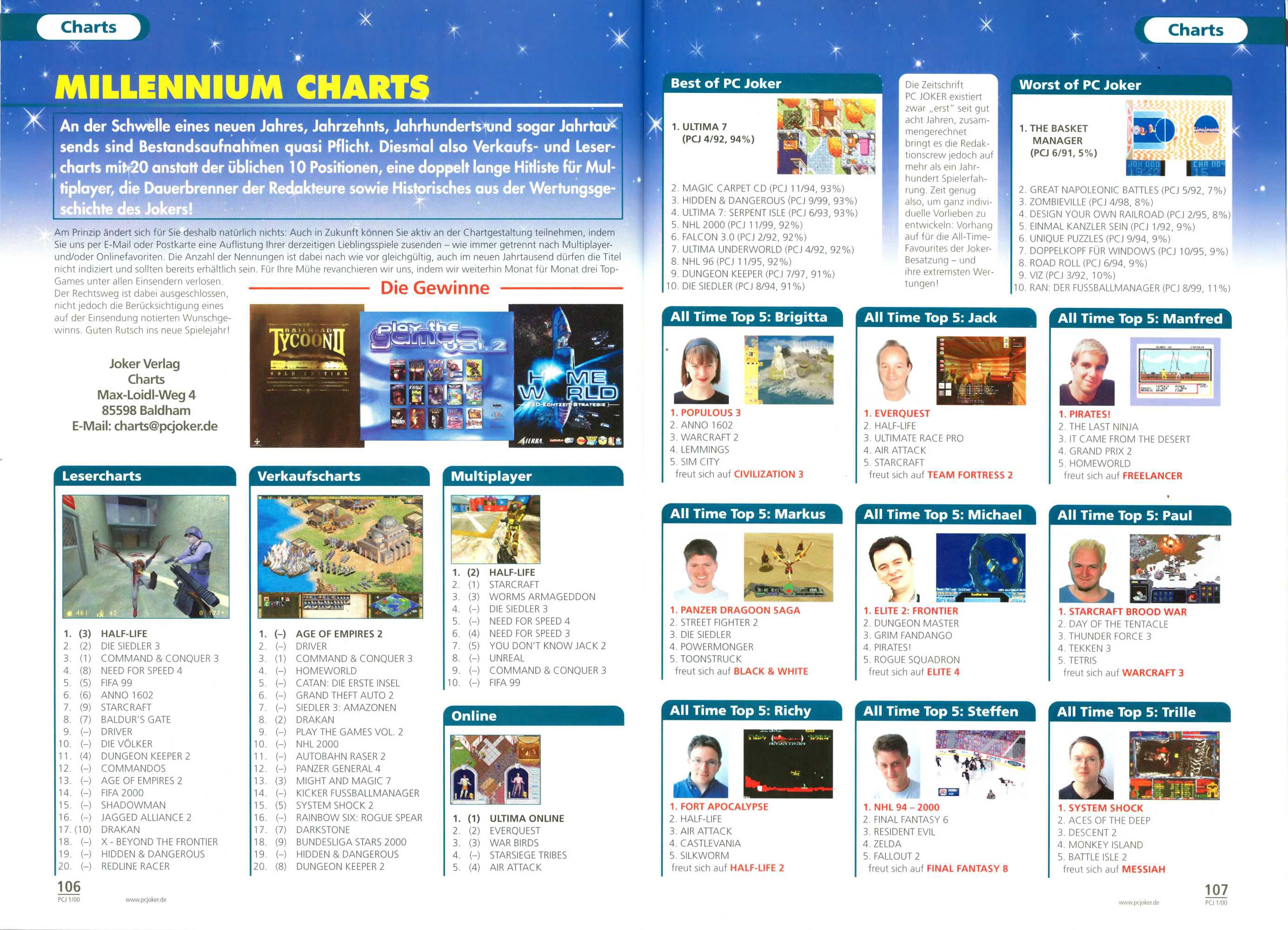 German PC Game sales charts 1991 to 2001 (PC Joker)