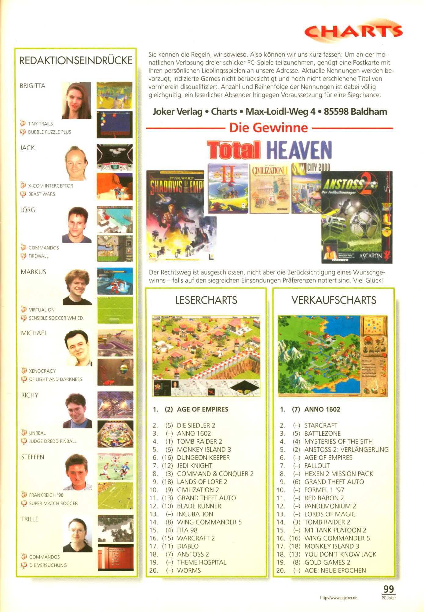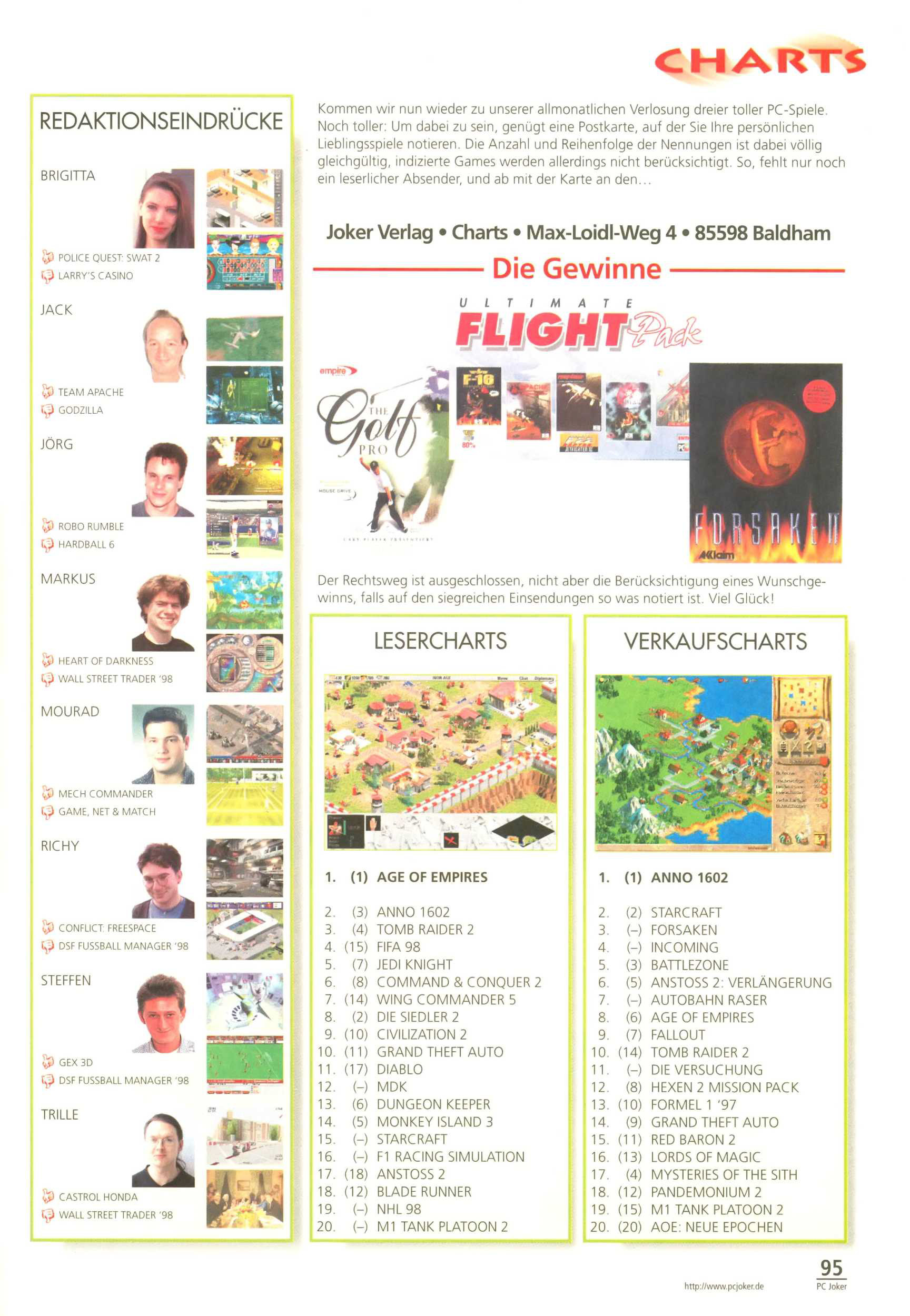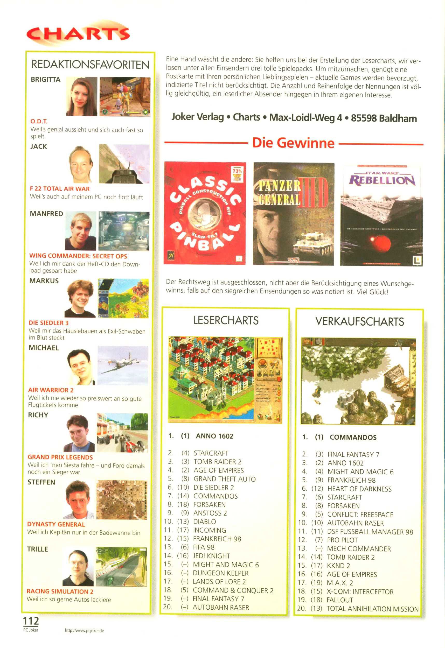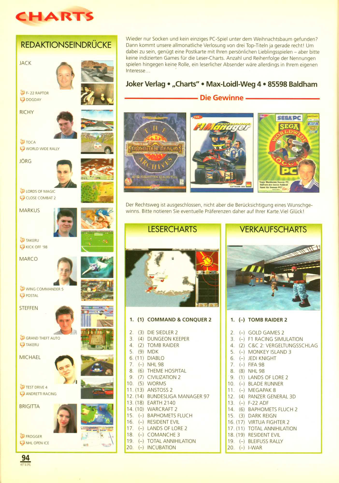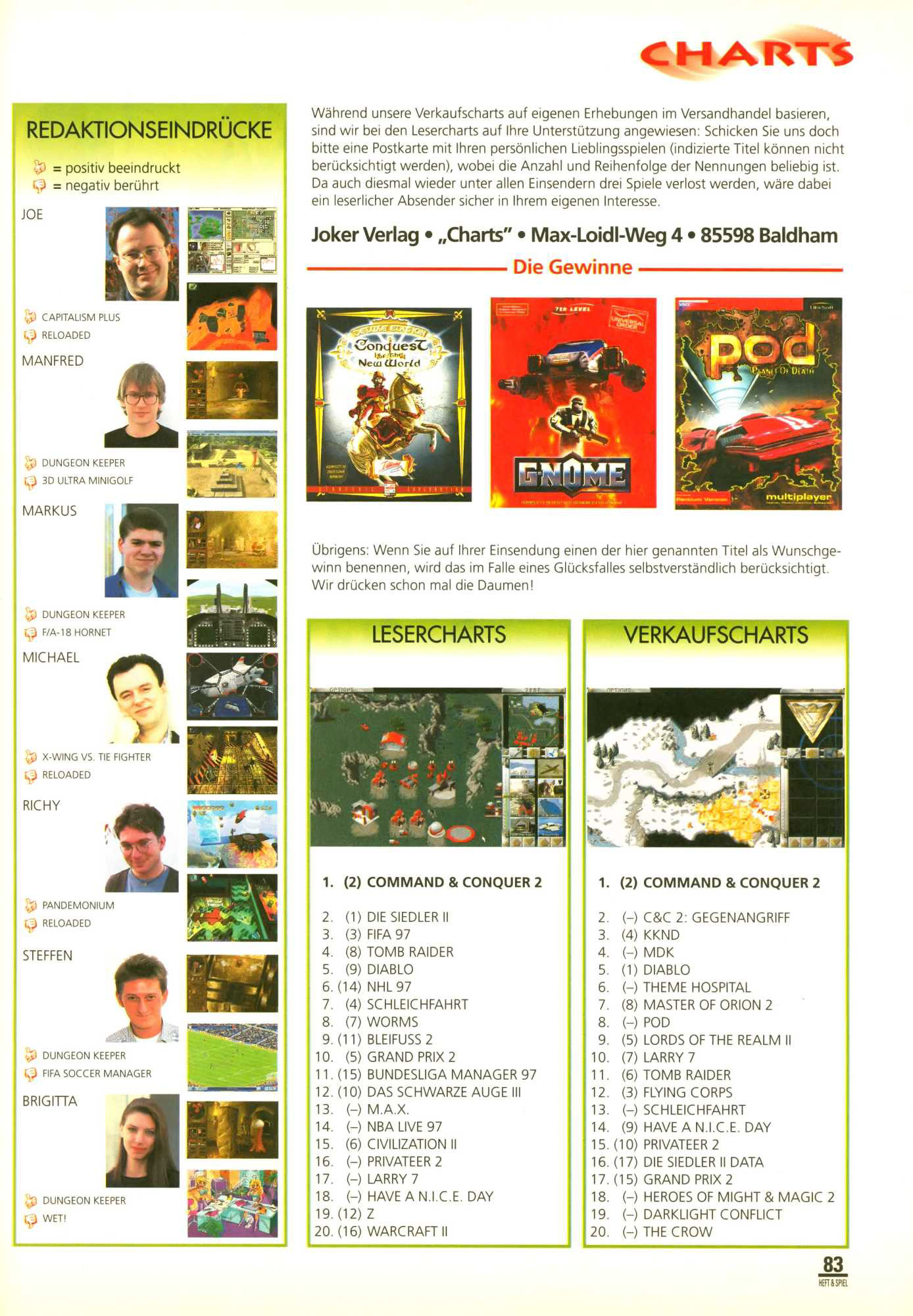 German PC Game sales charts 1991 to 2001 (PC Joker)