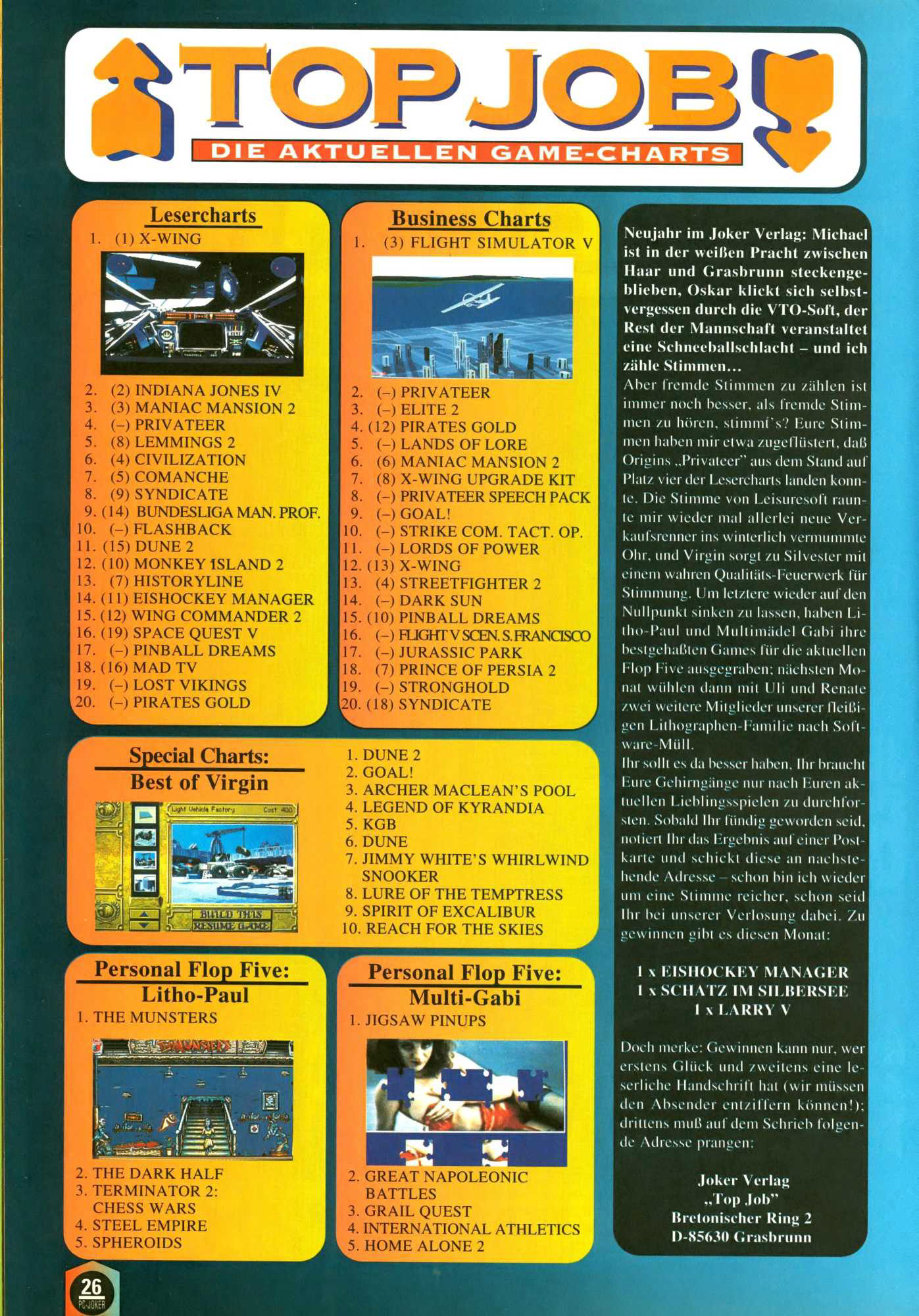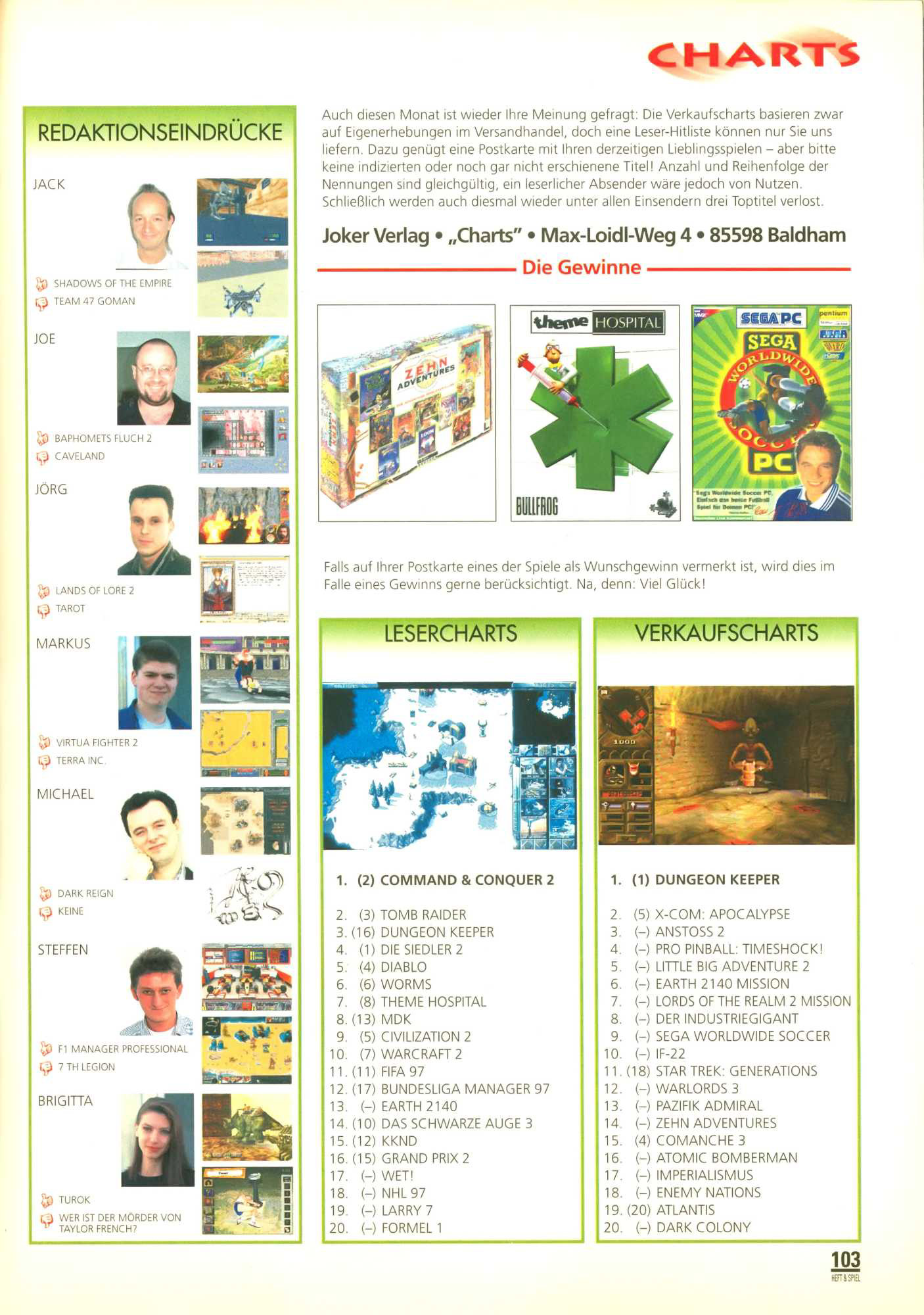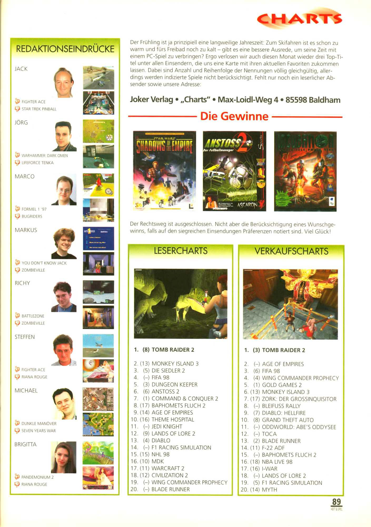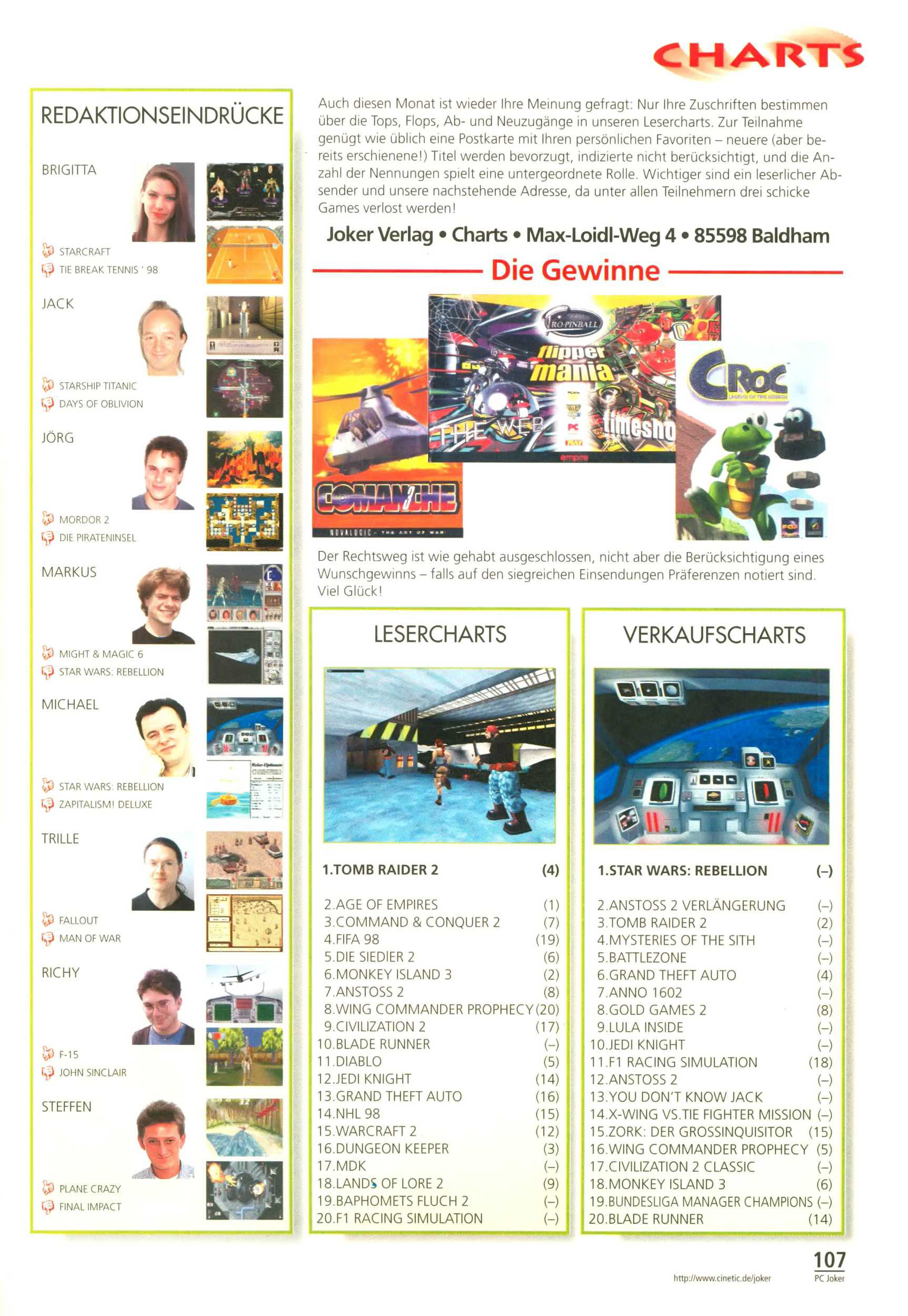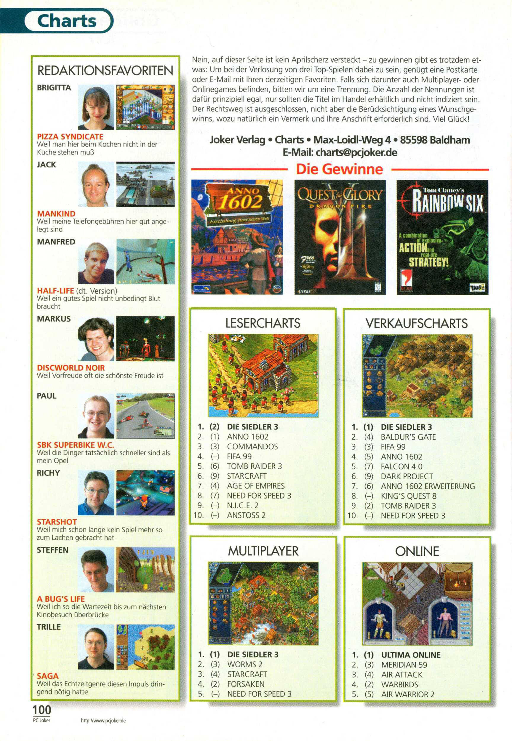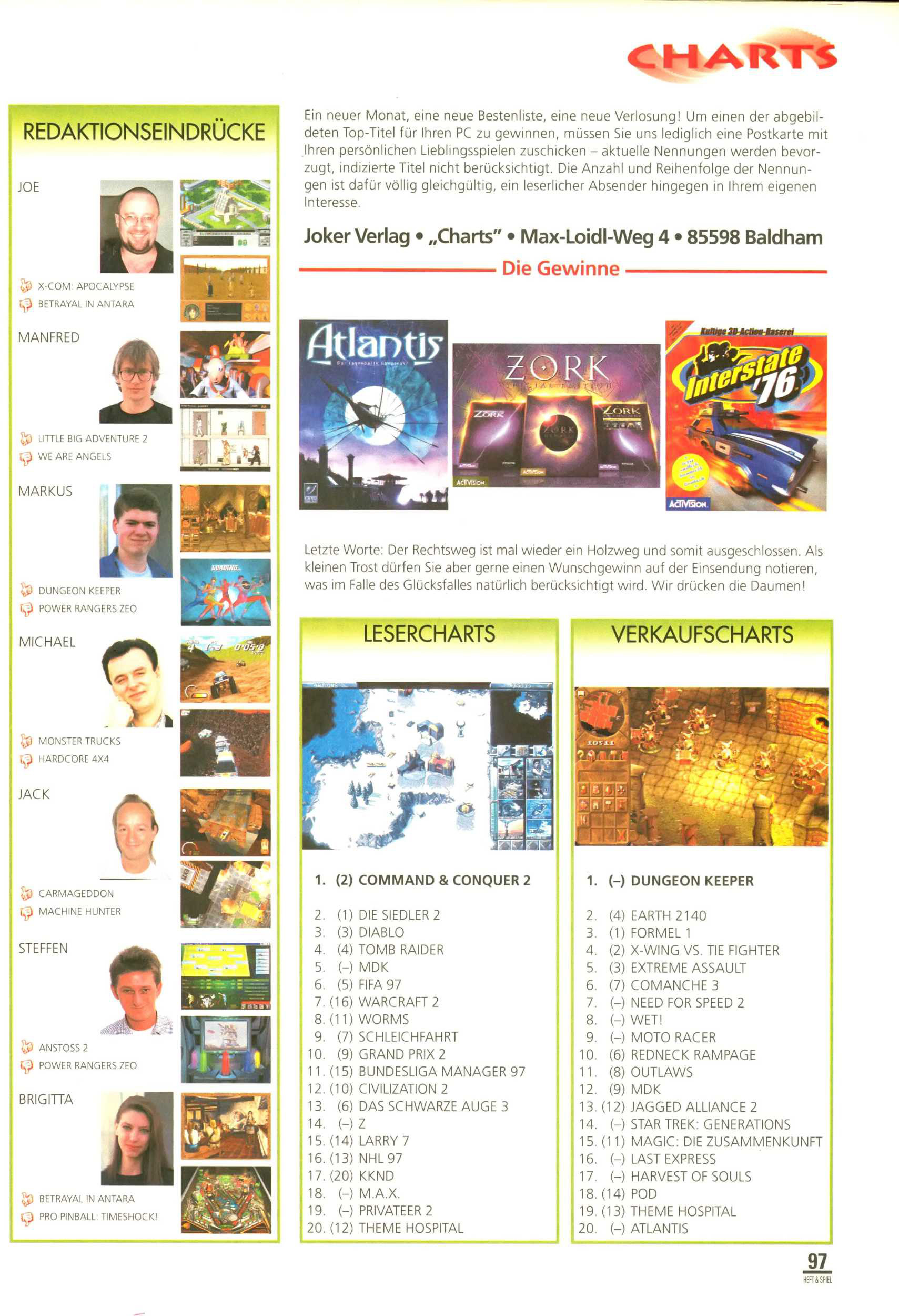 German PC Game sales charts 1991 to 2001 (PC Joker)
