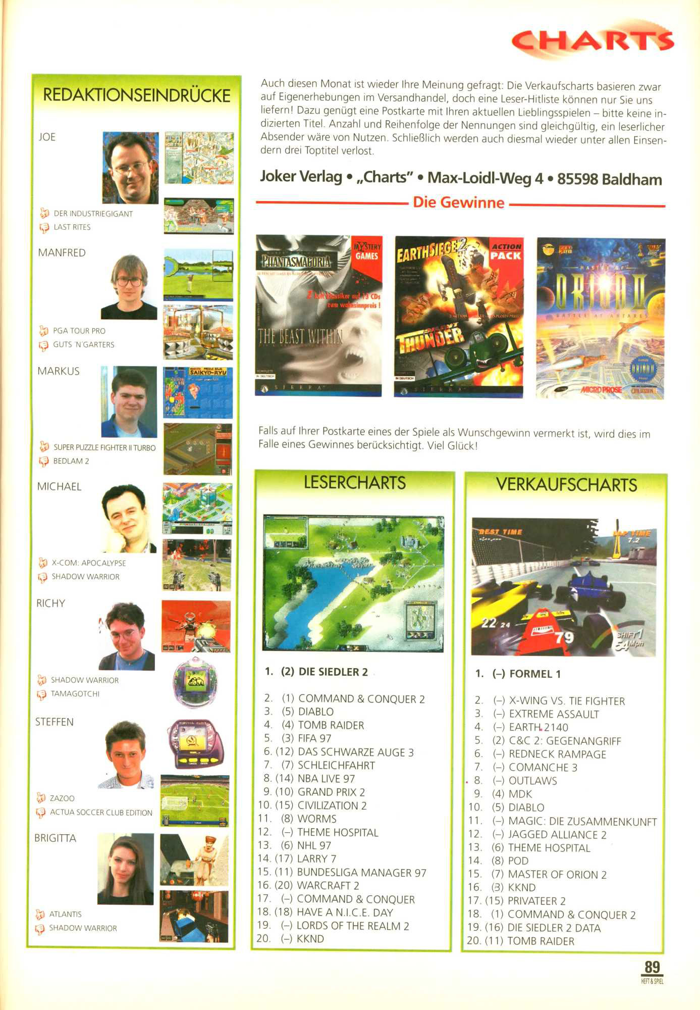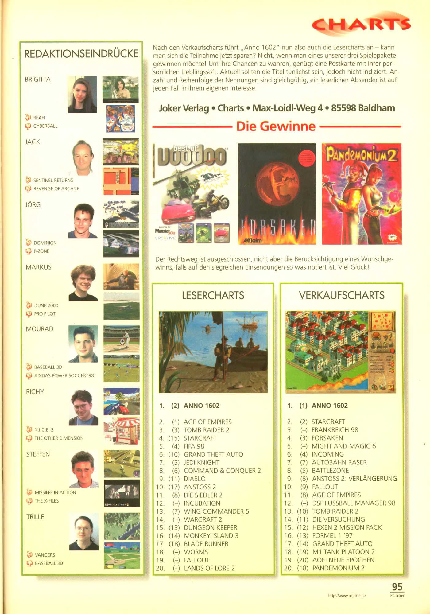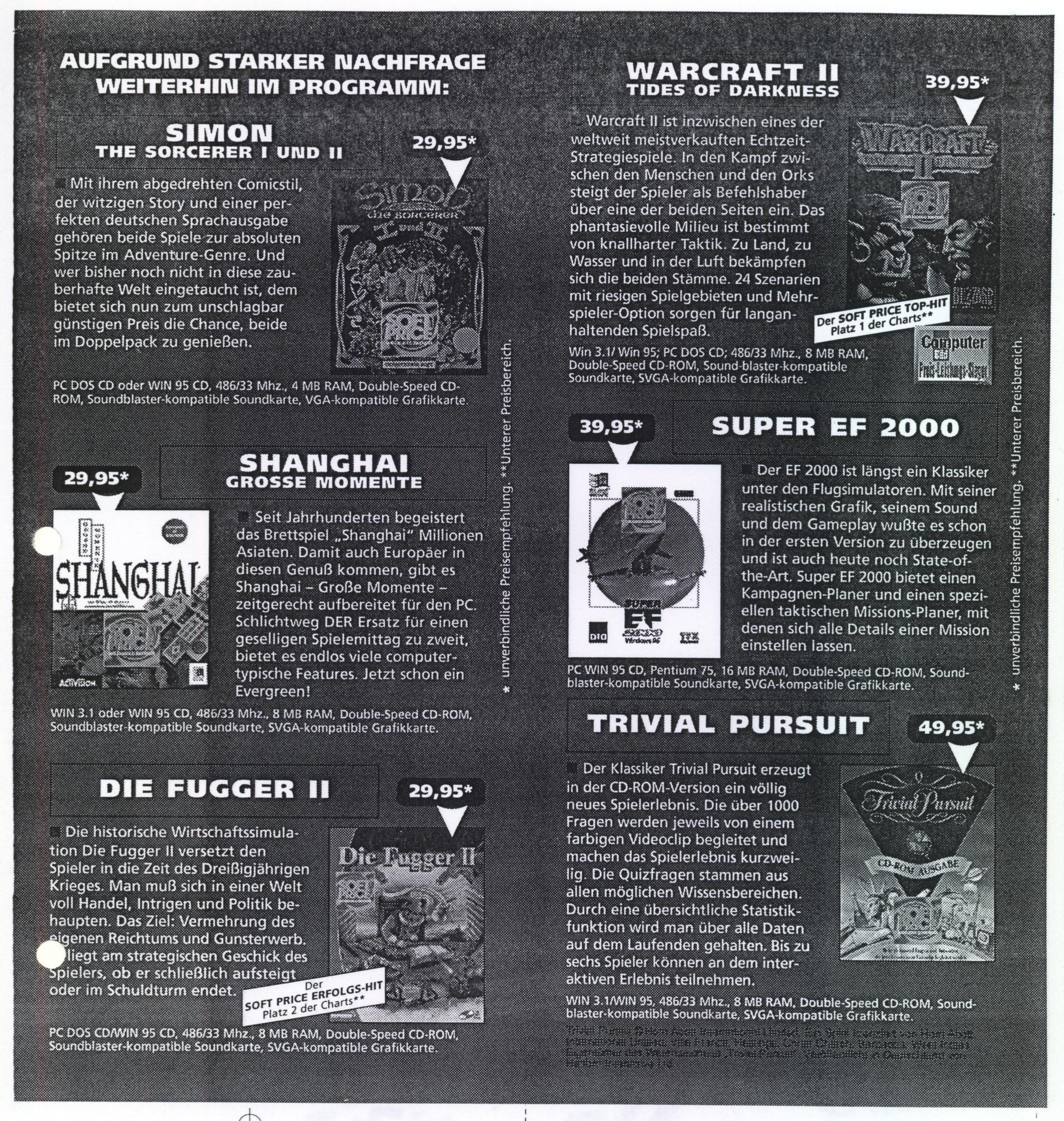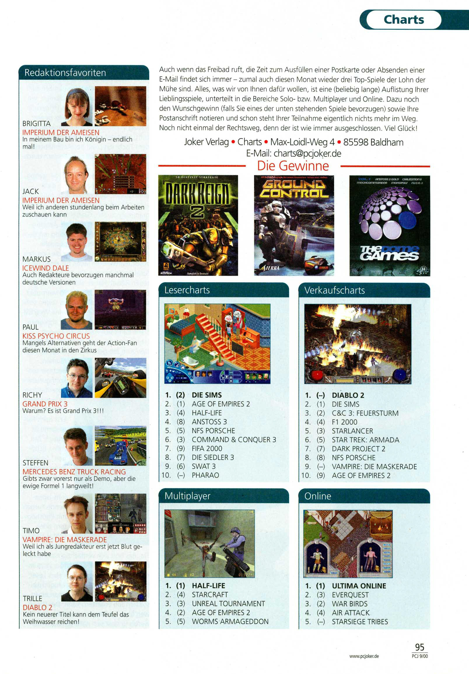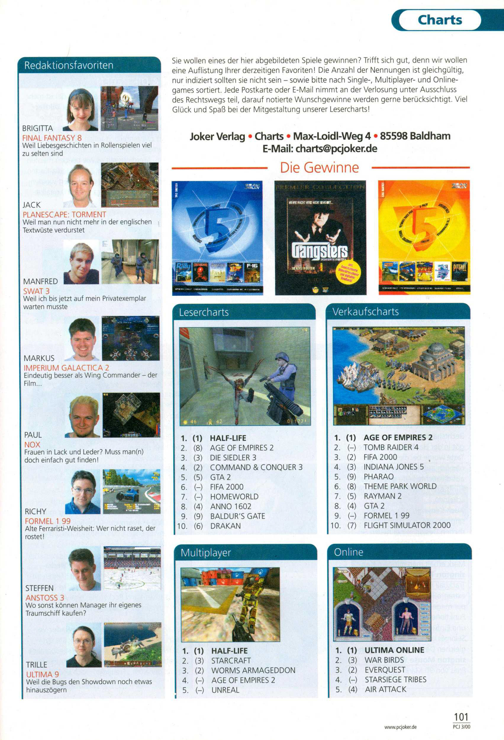 German PC Game sales charts 1991 to 2001 (PC Joker)