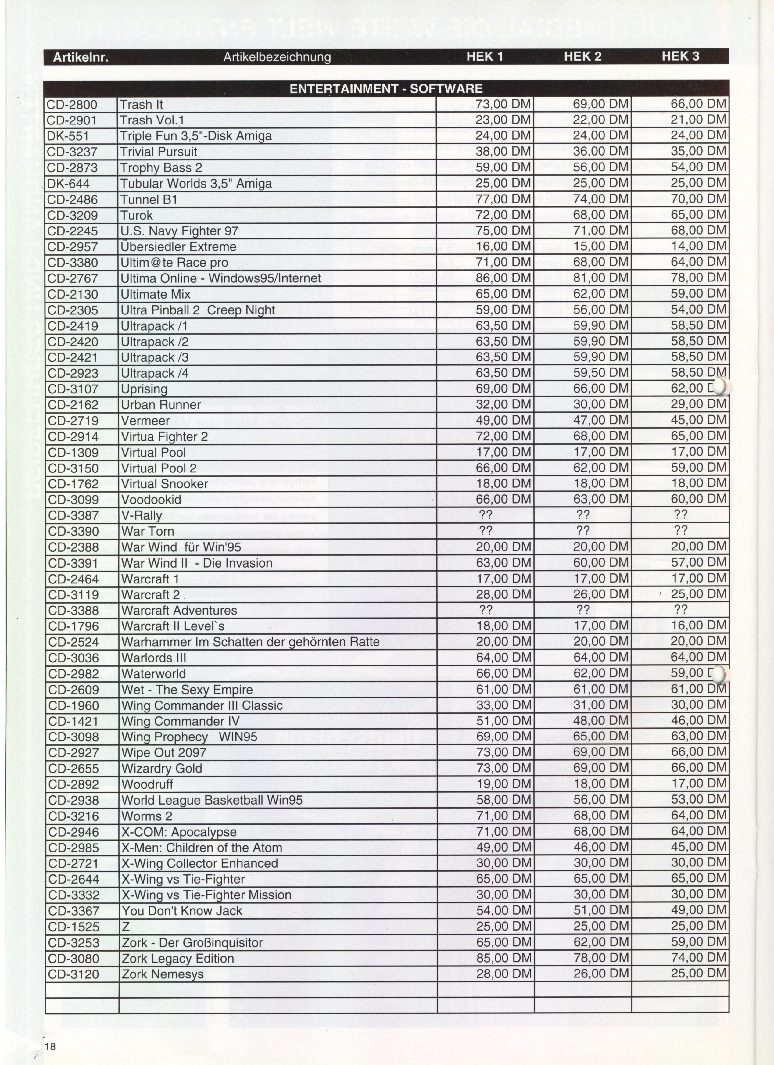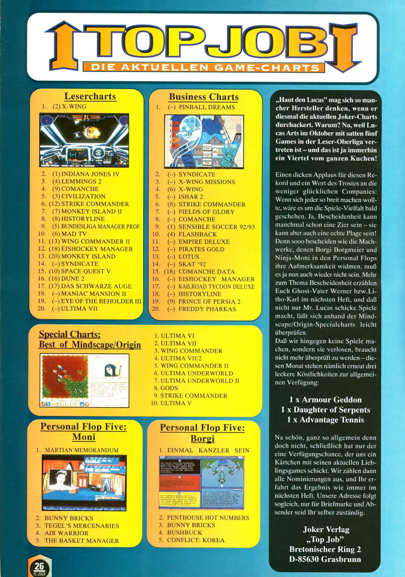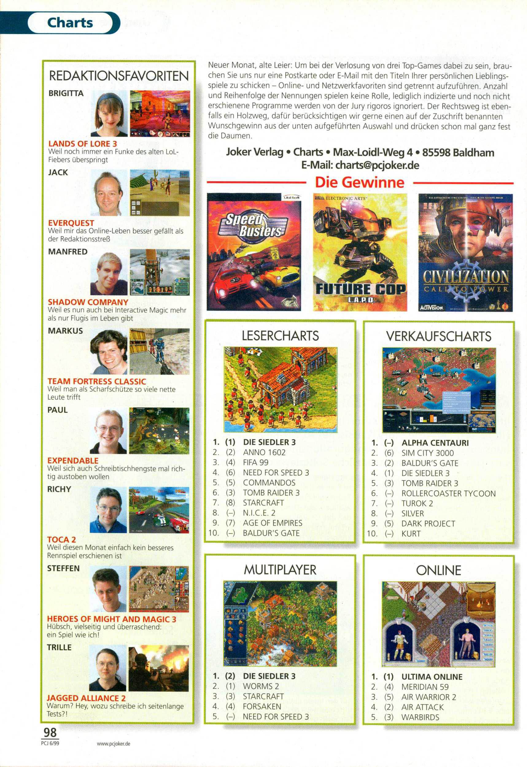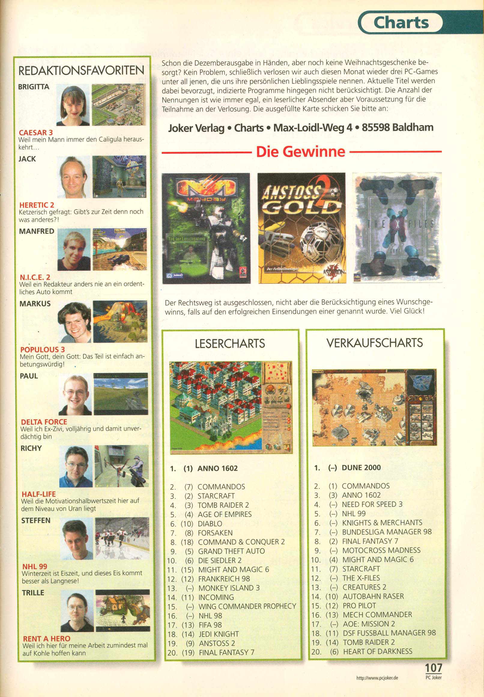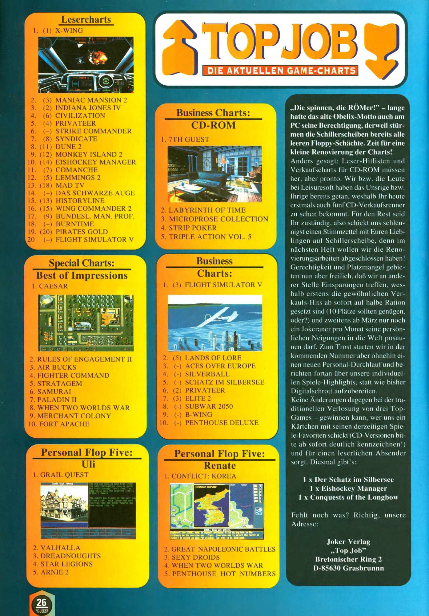 German PC Game sales charts 1991 to 2001 (PC Joker)