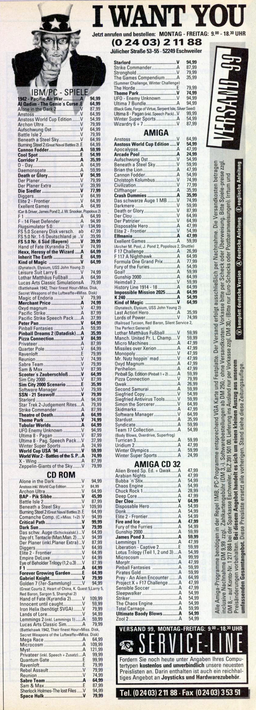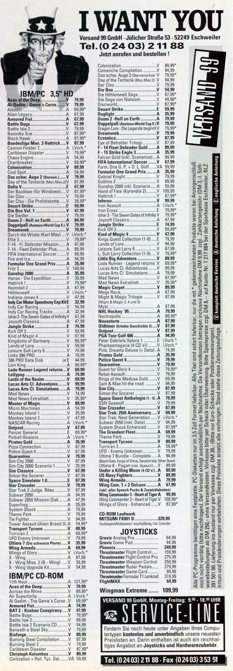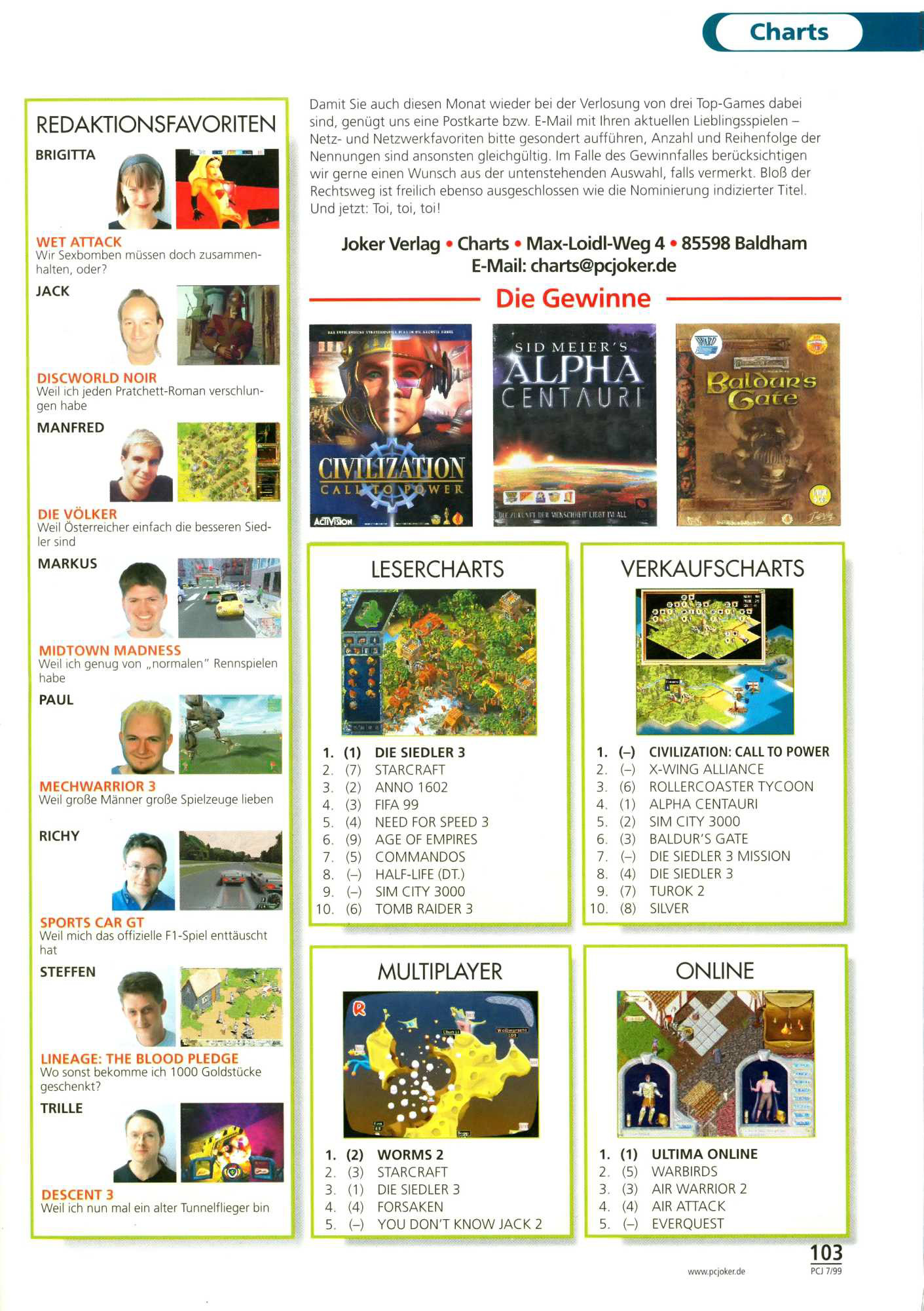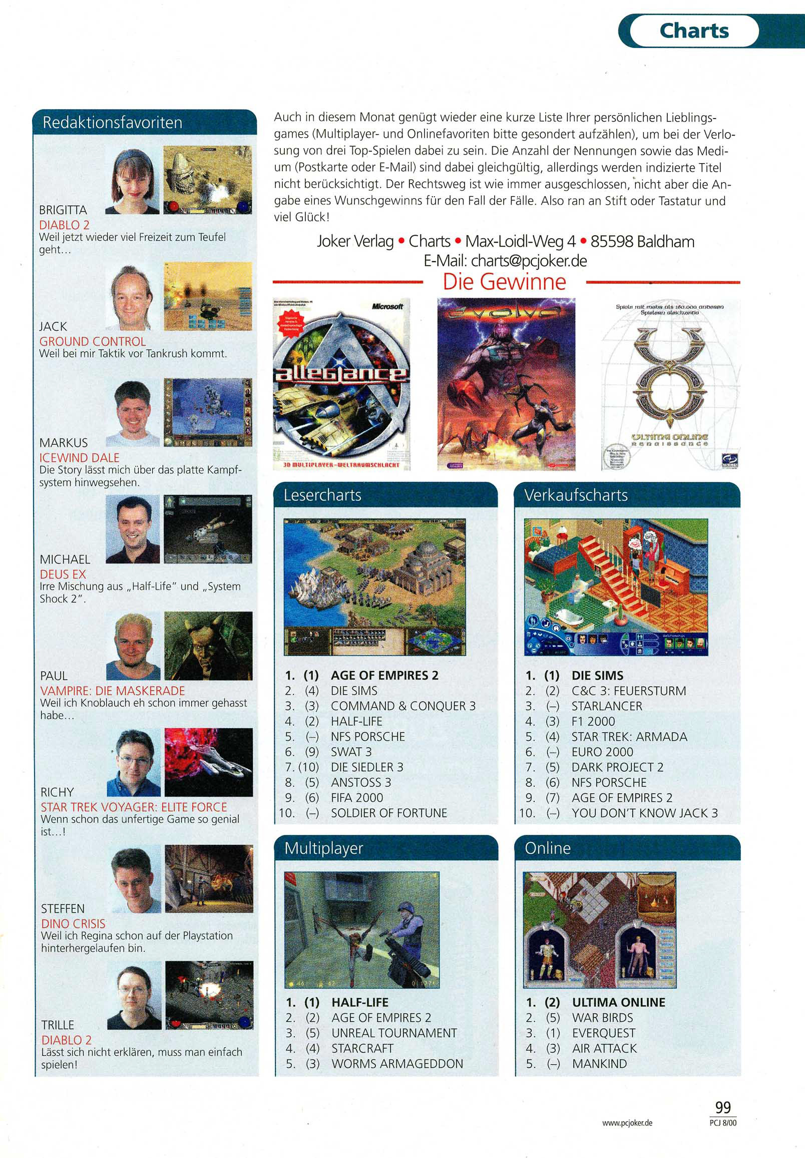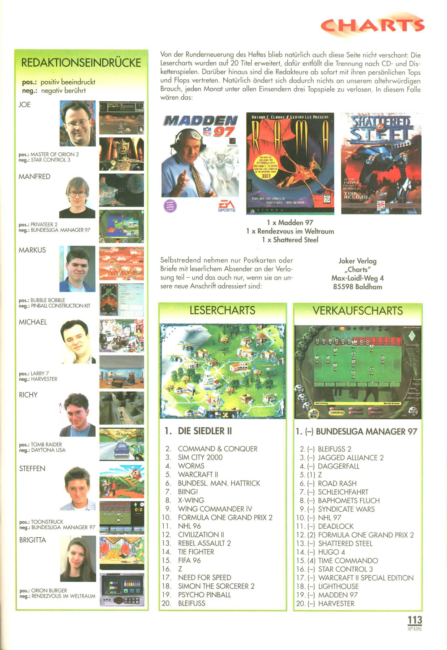 German PC Game sales charts 1991 to 2001 (PC Joker)