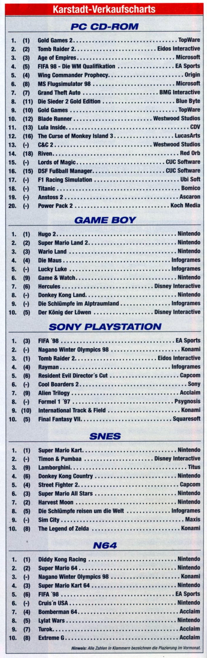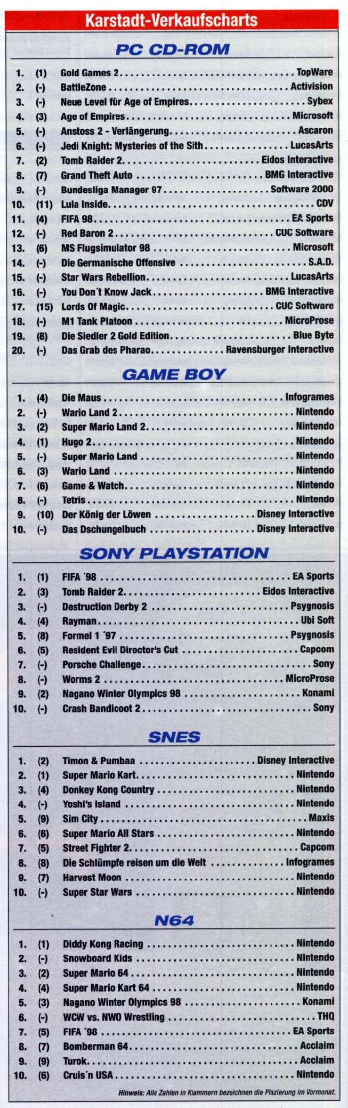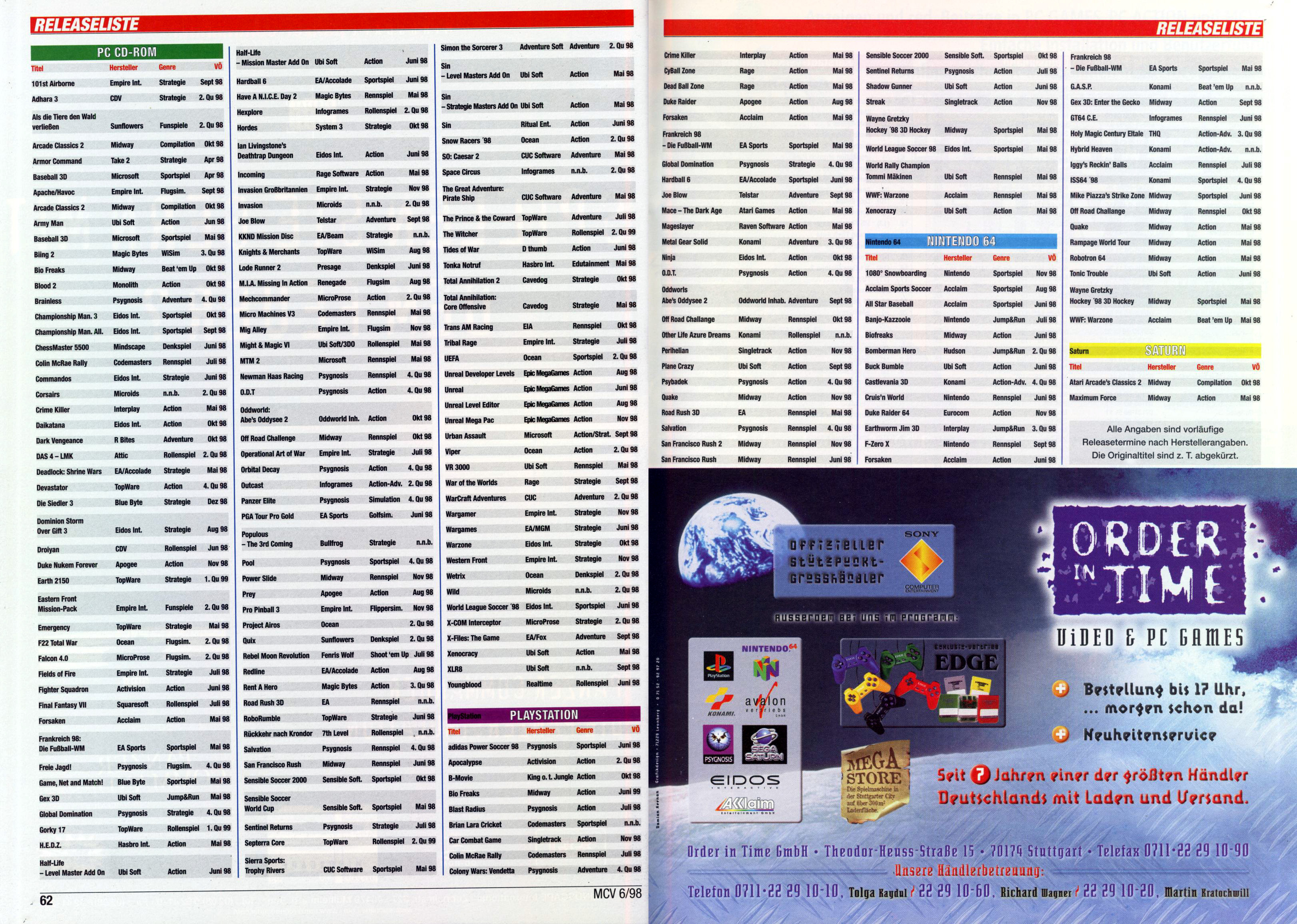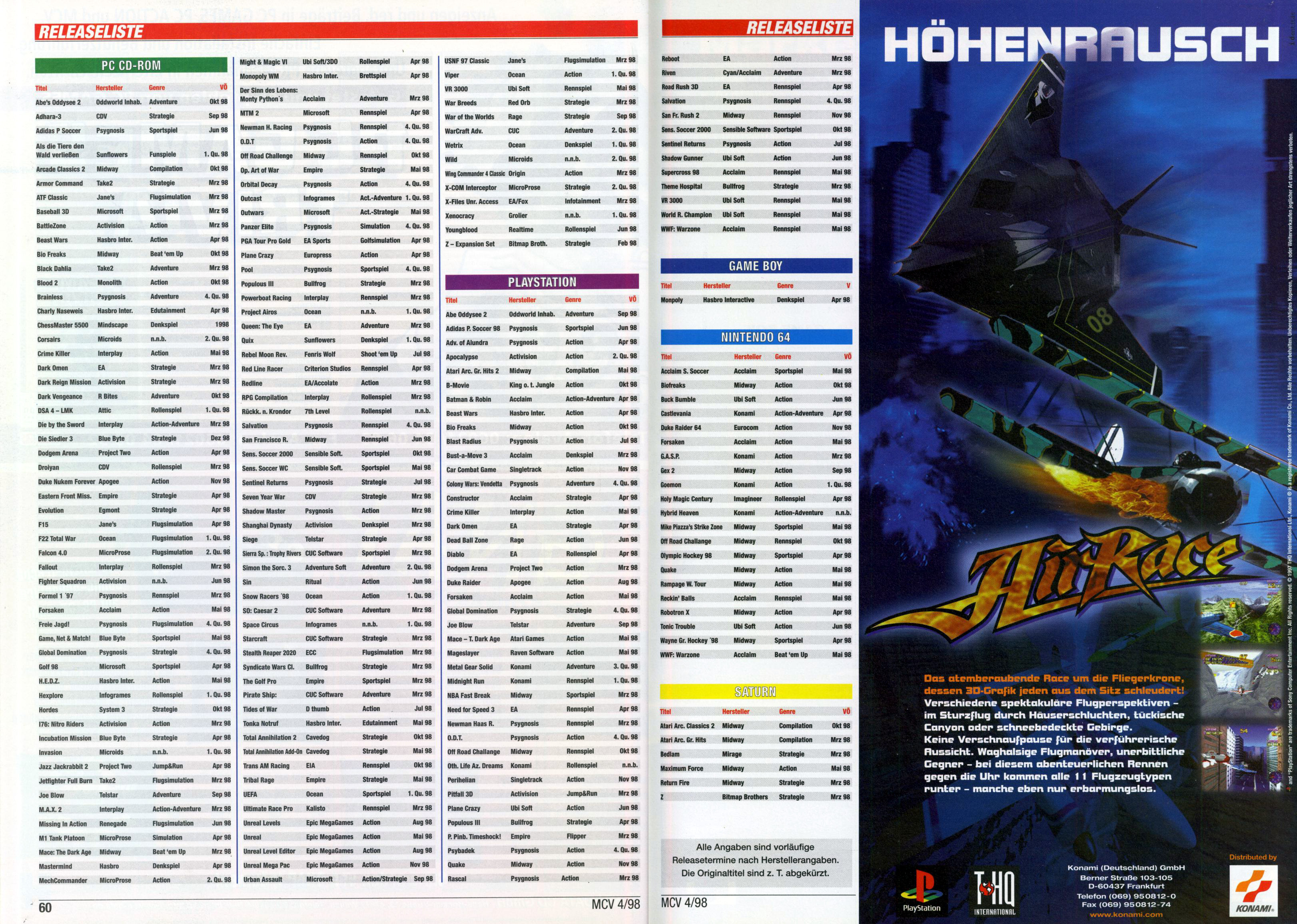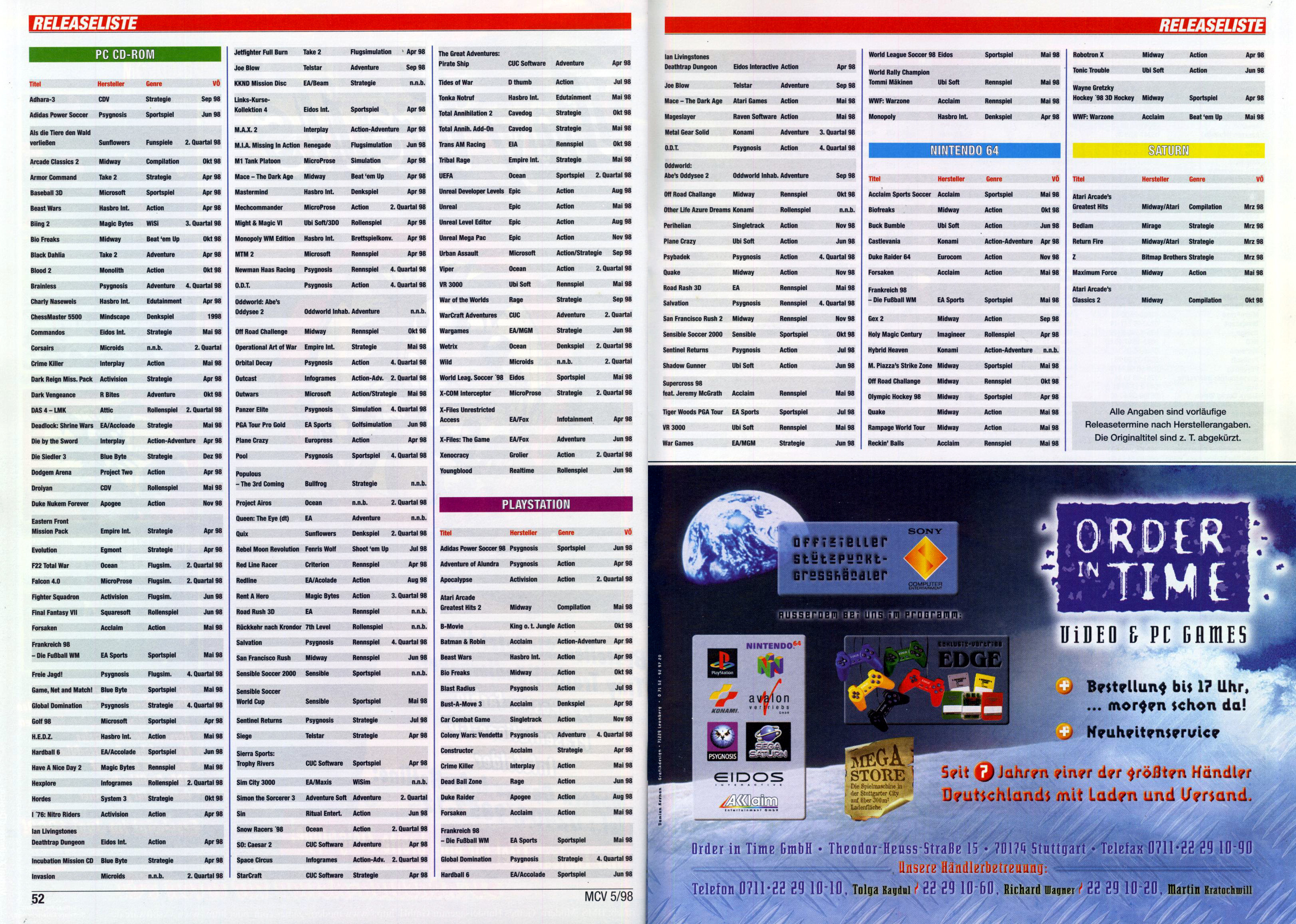 German PC and Video Game Release Lists 1997 and 1998
