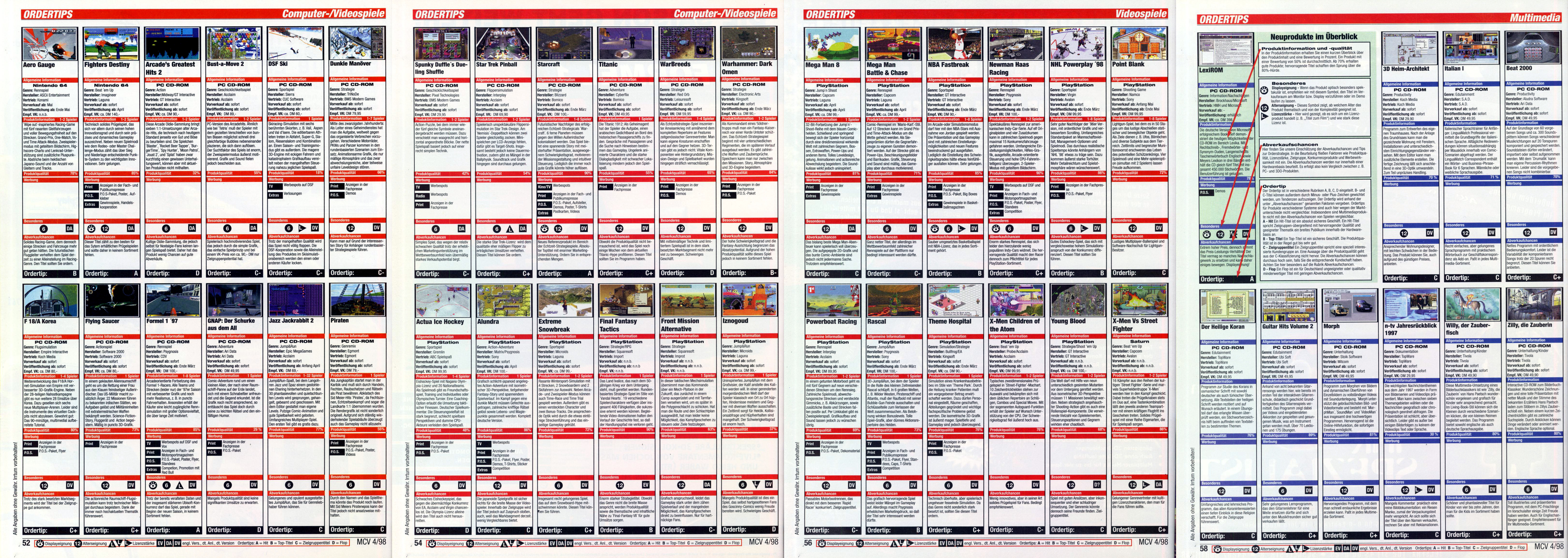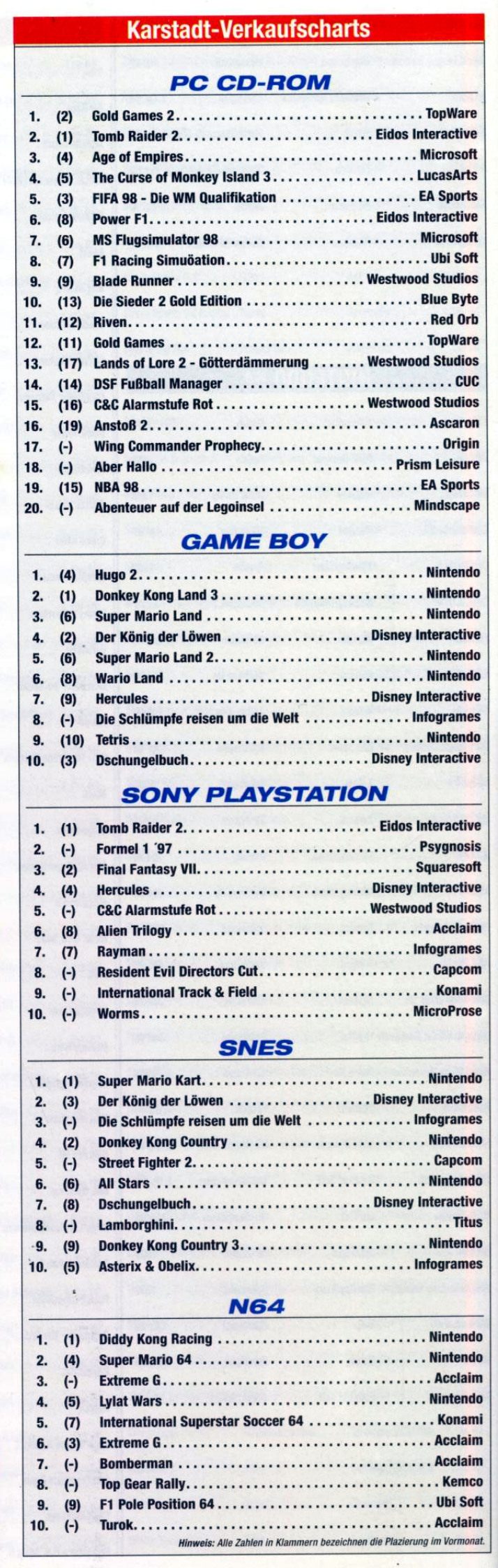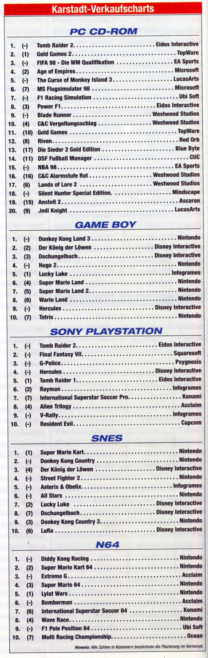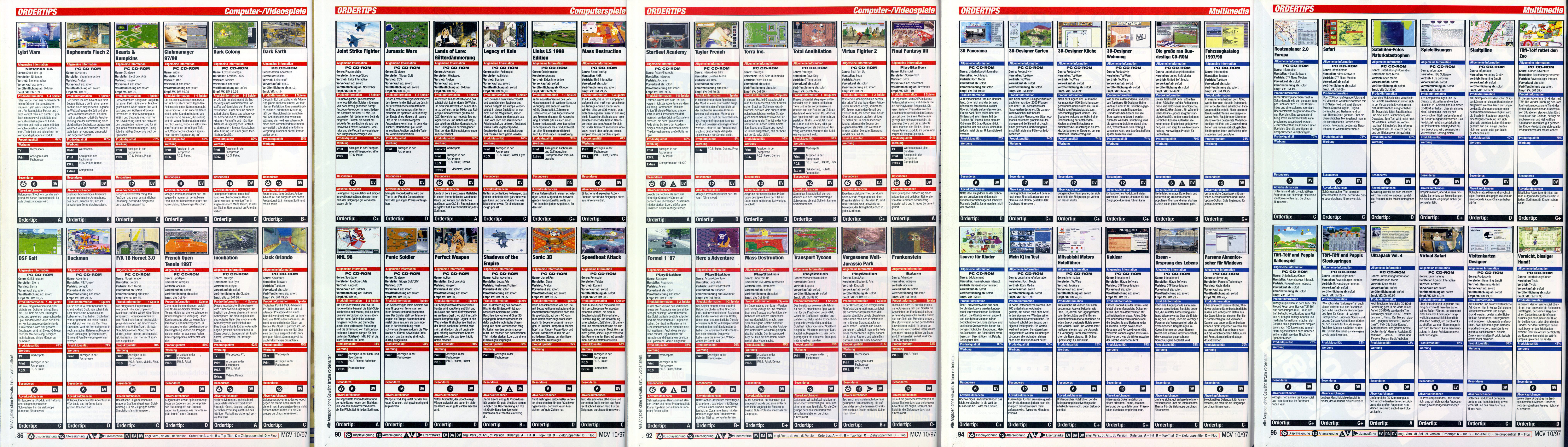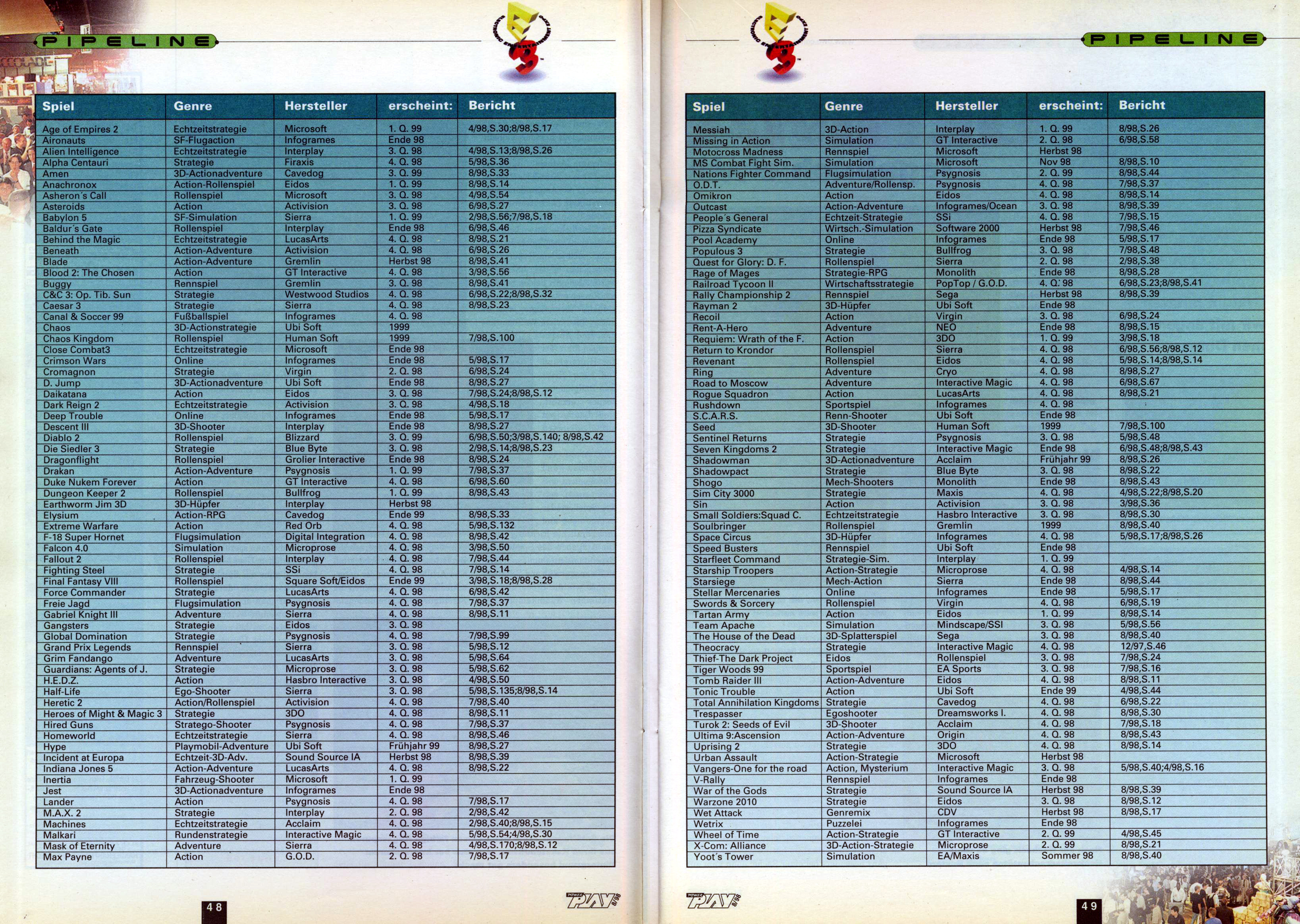 German PC and Video Game Release Lists 1997 and 1998