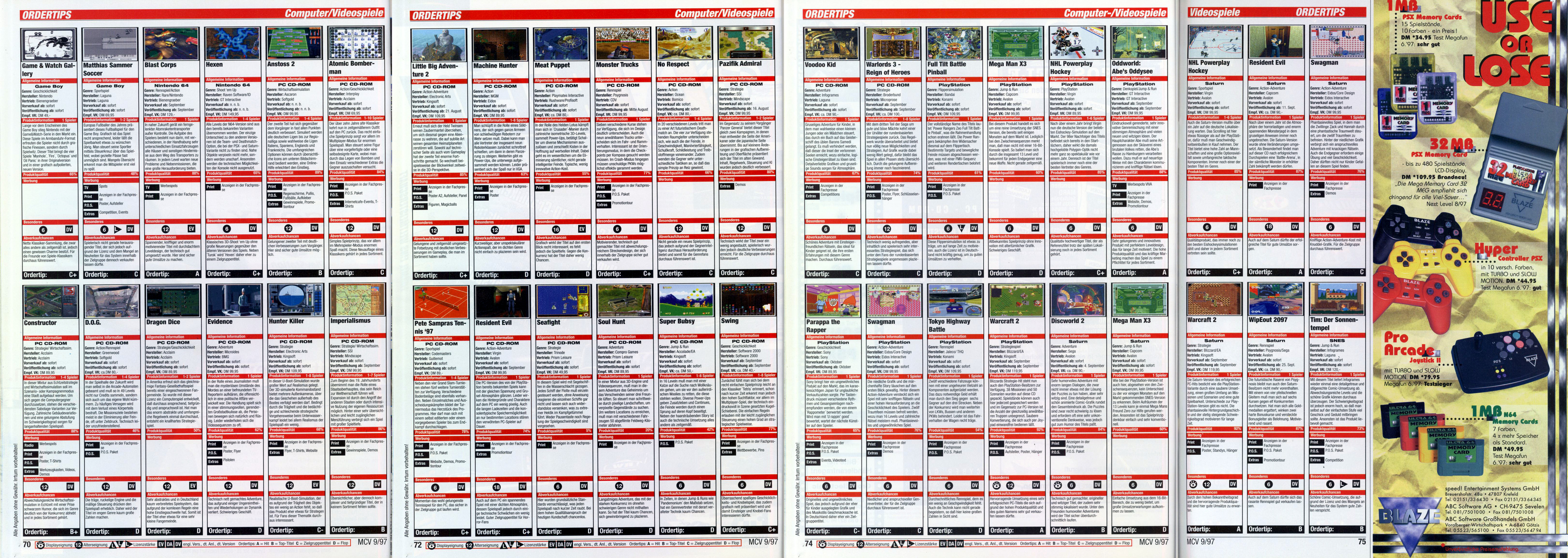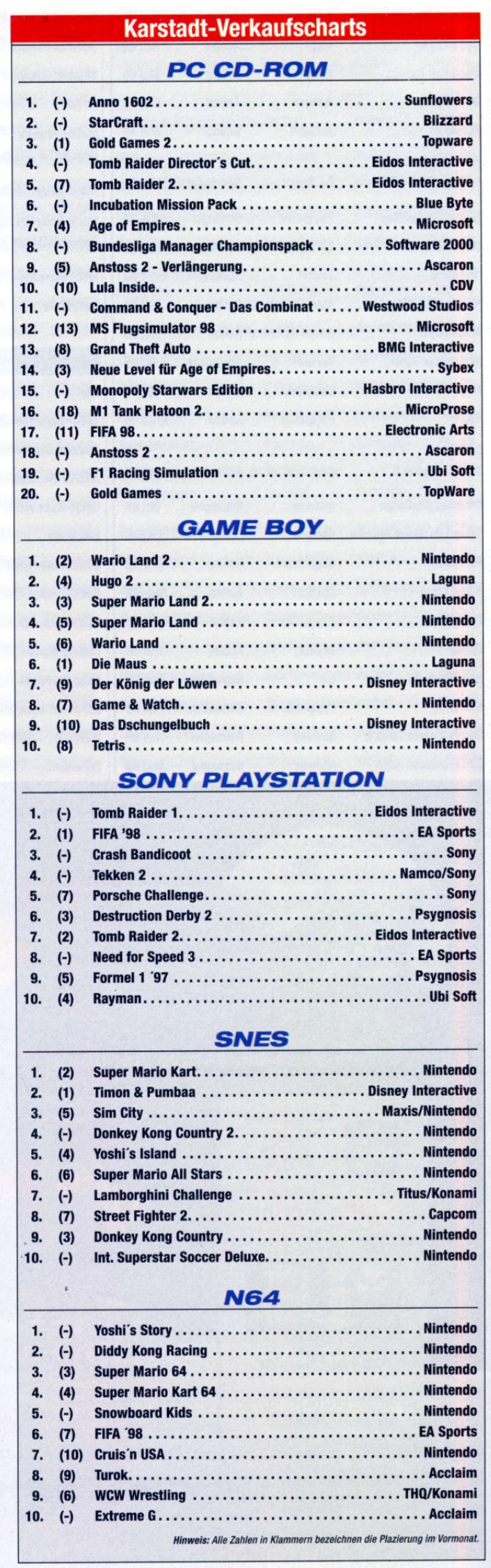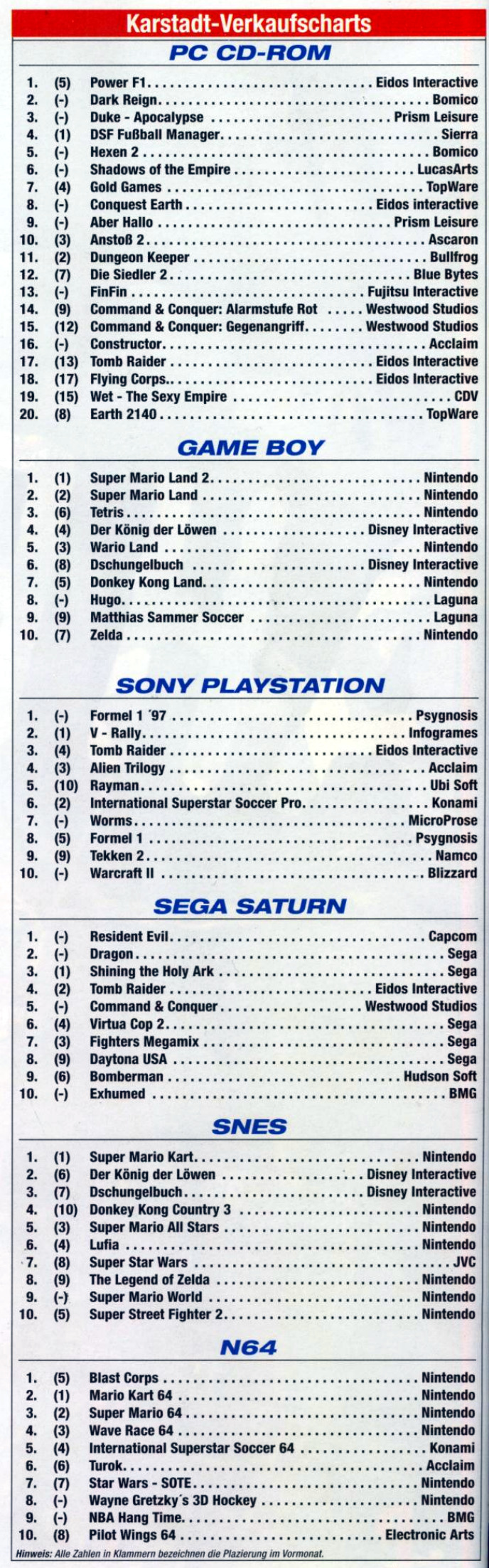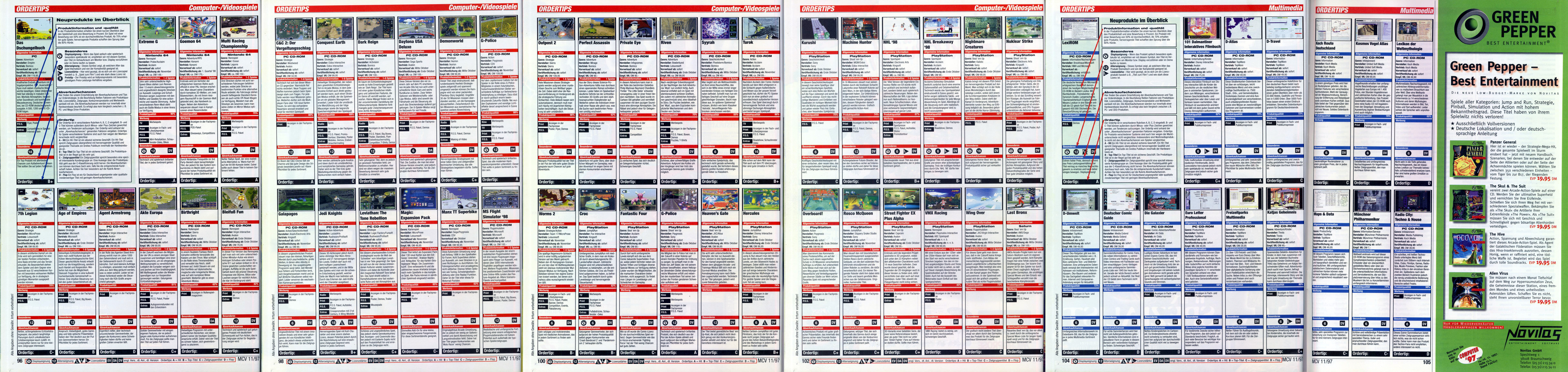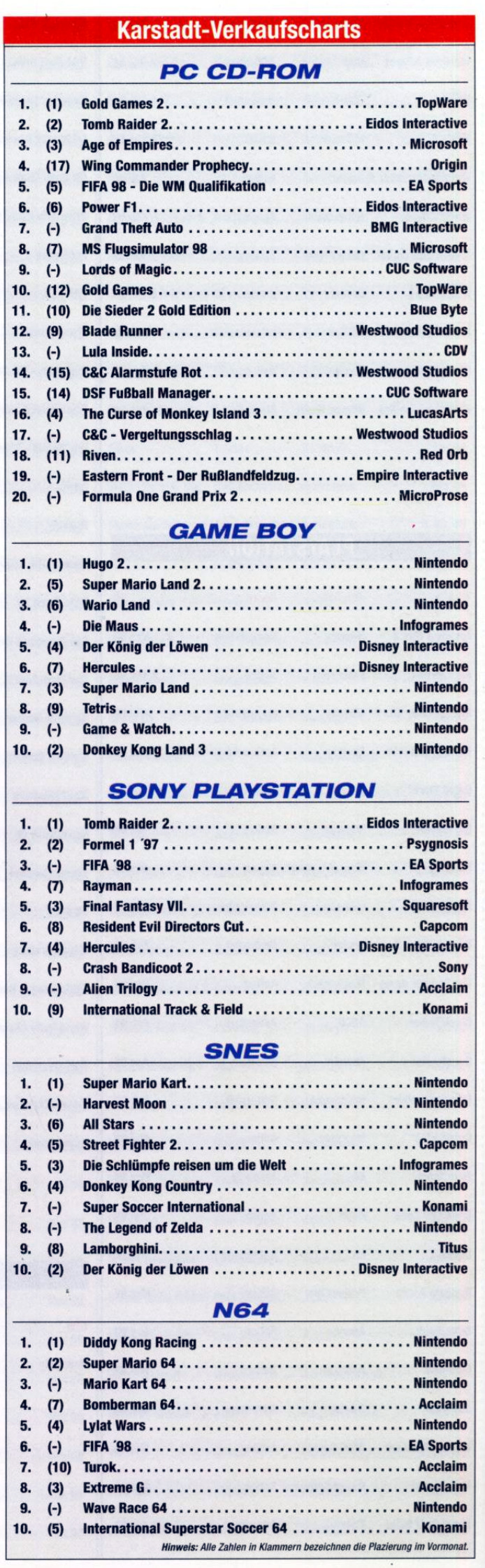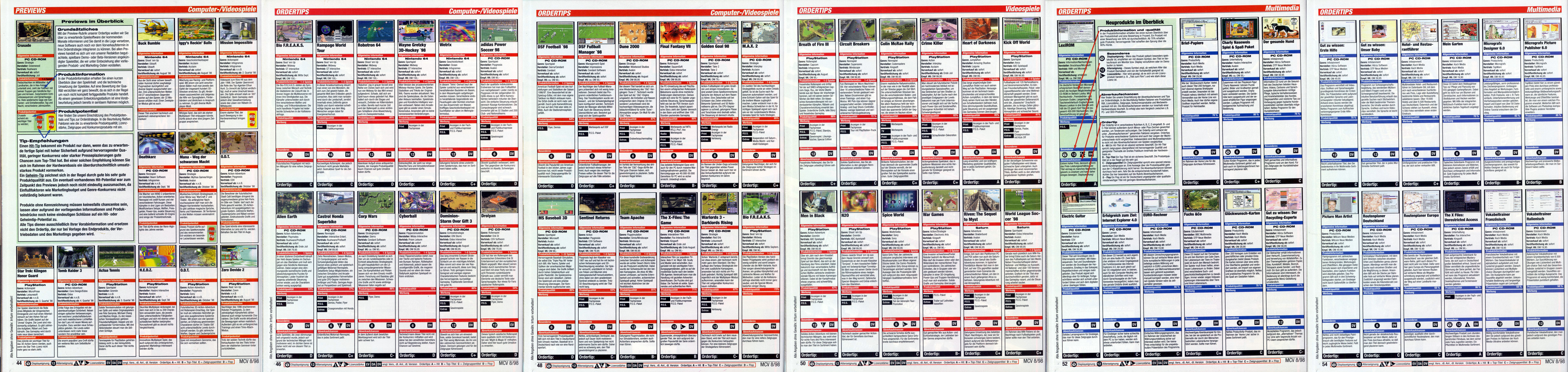 German PC and Video Game Release Lists 1997 and 1998