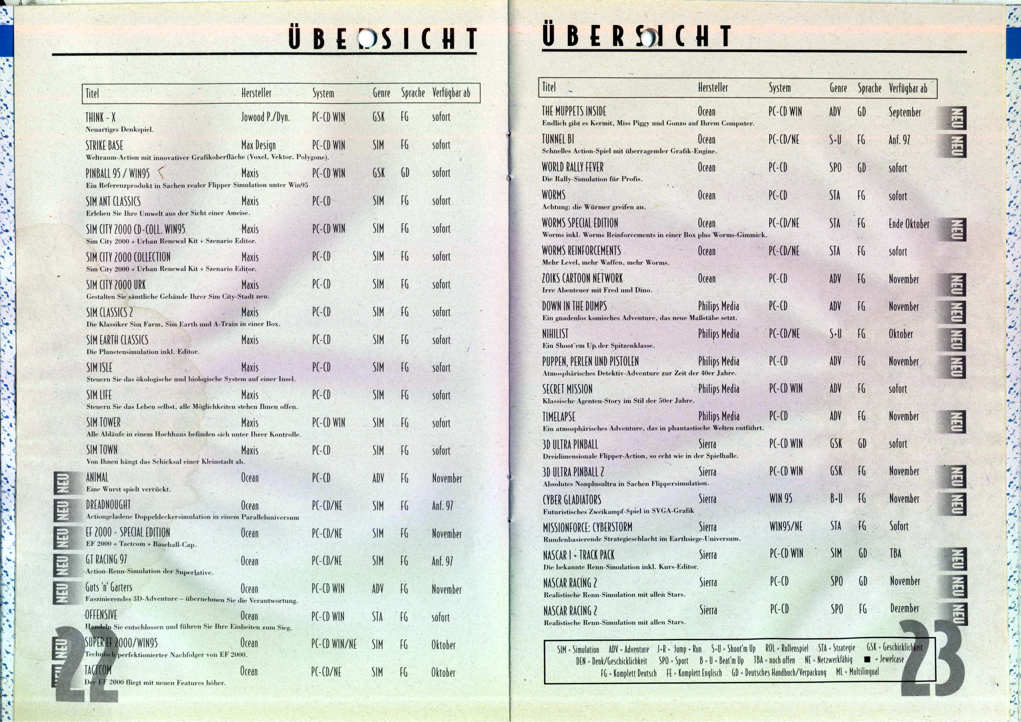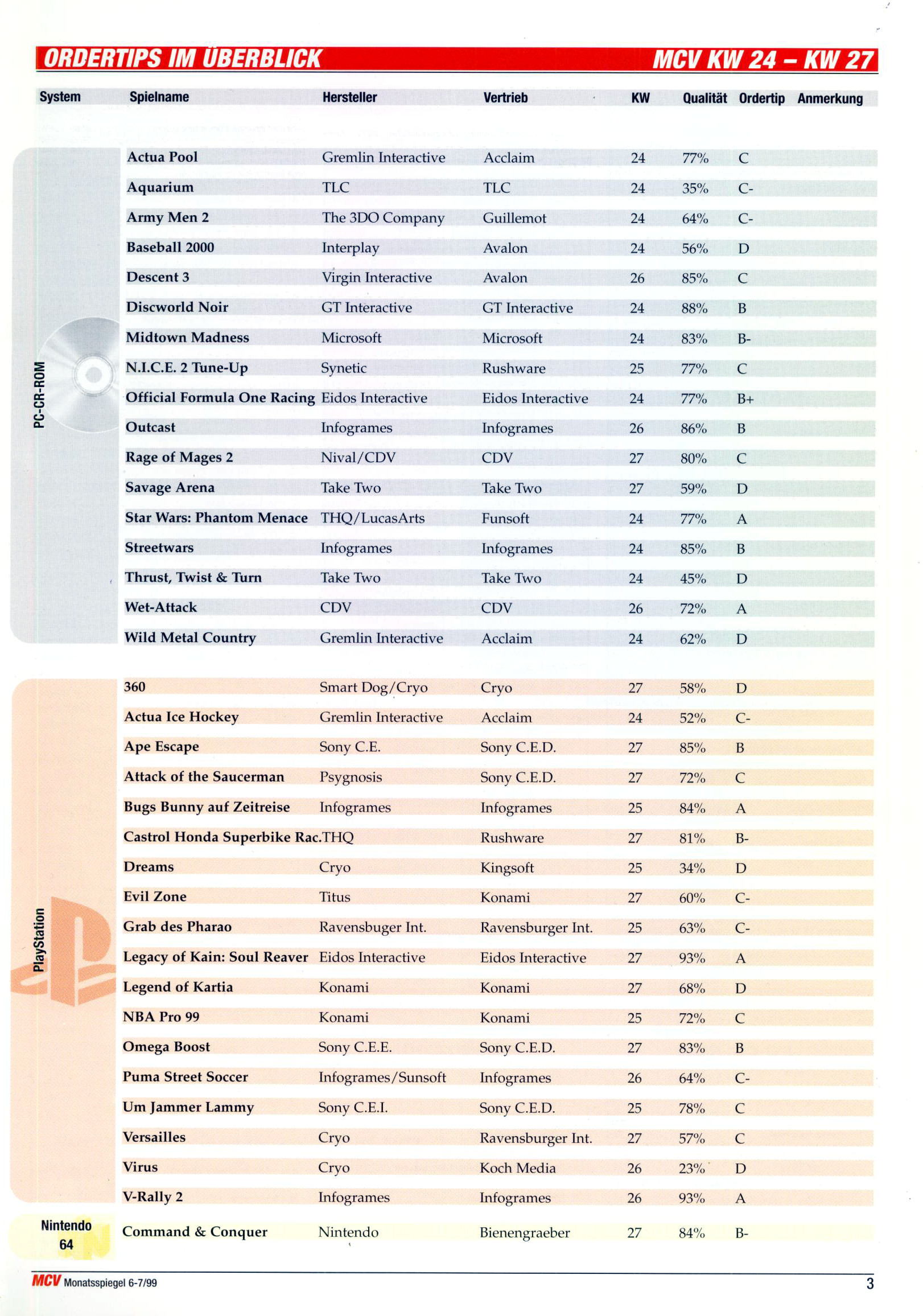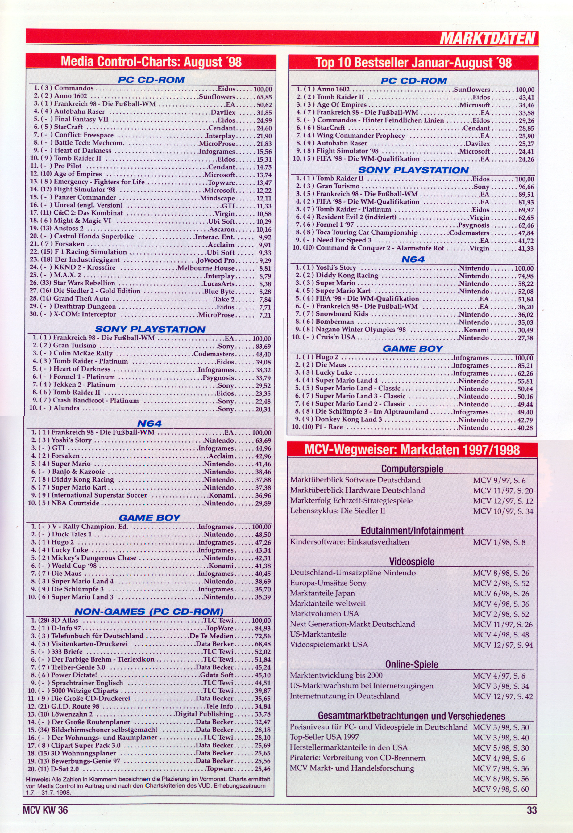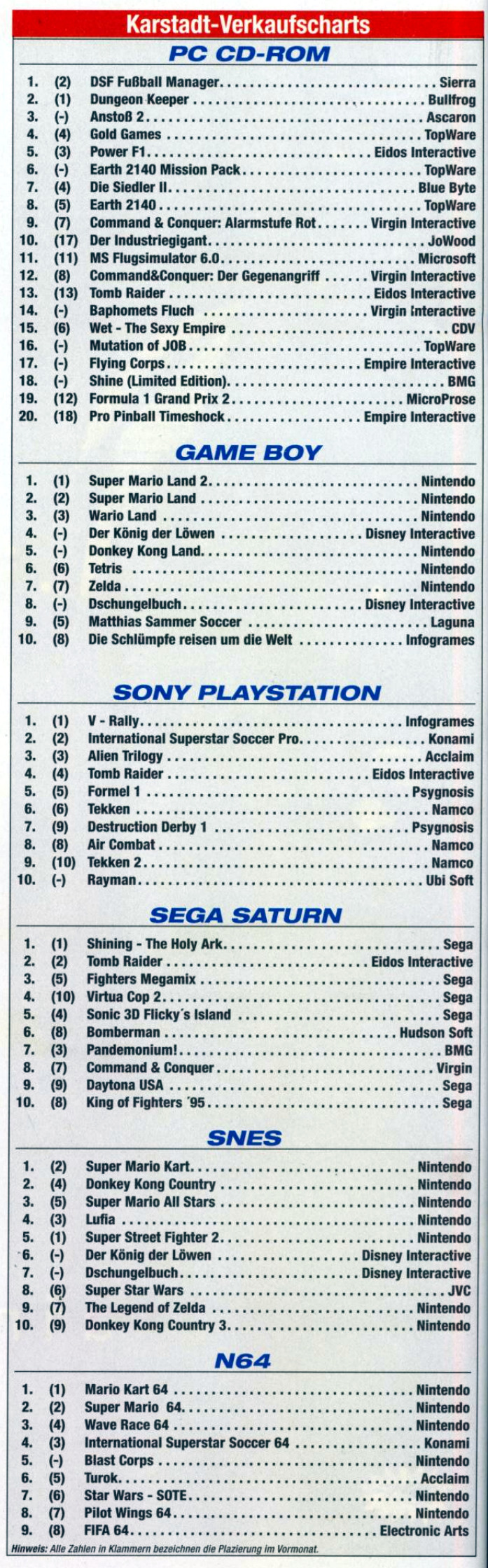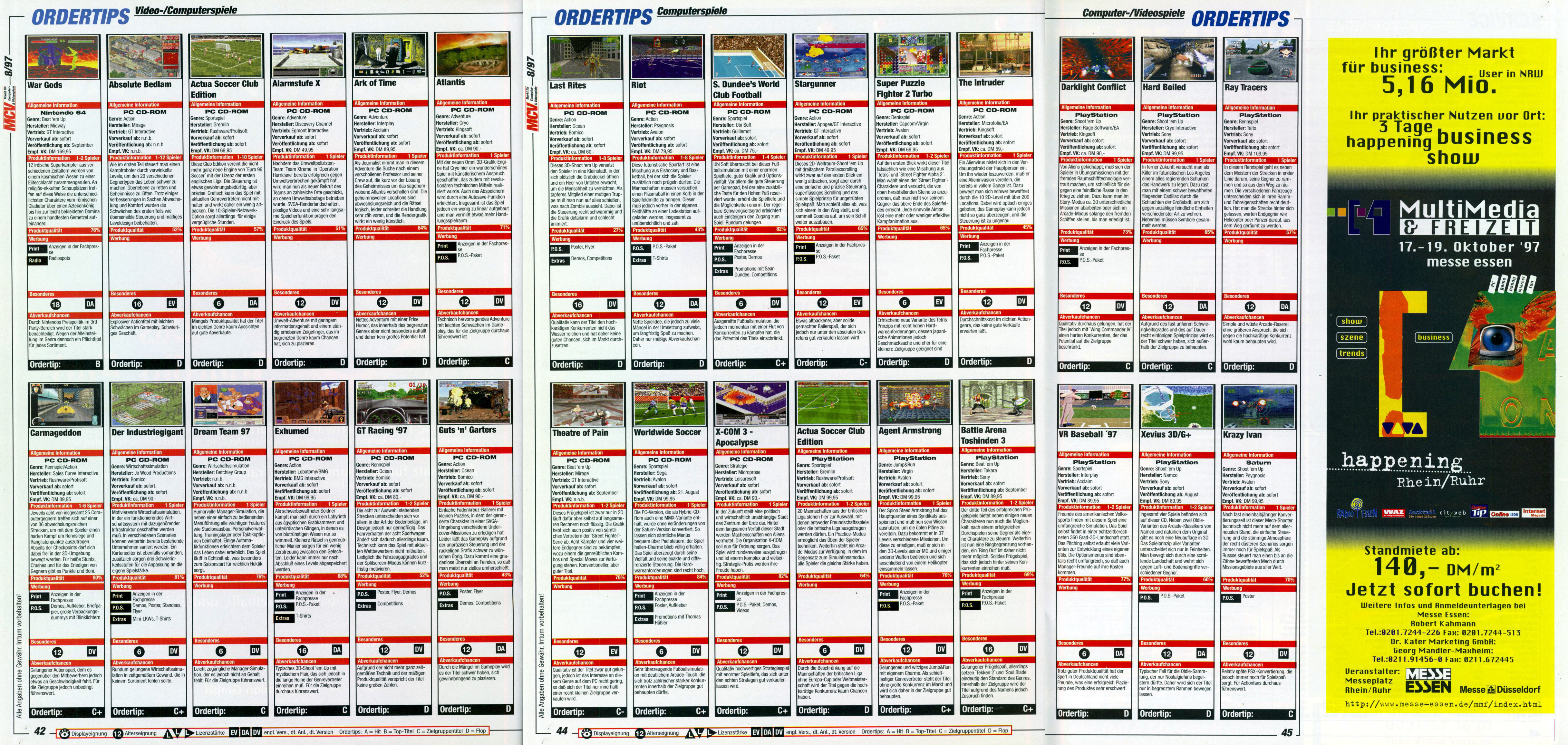 German PC and Video Game Release Lists 1997 and 1998