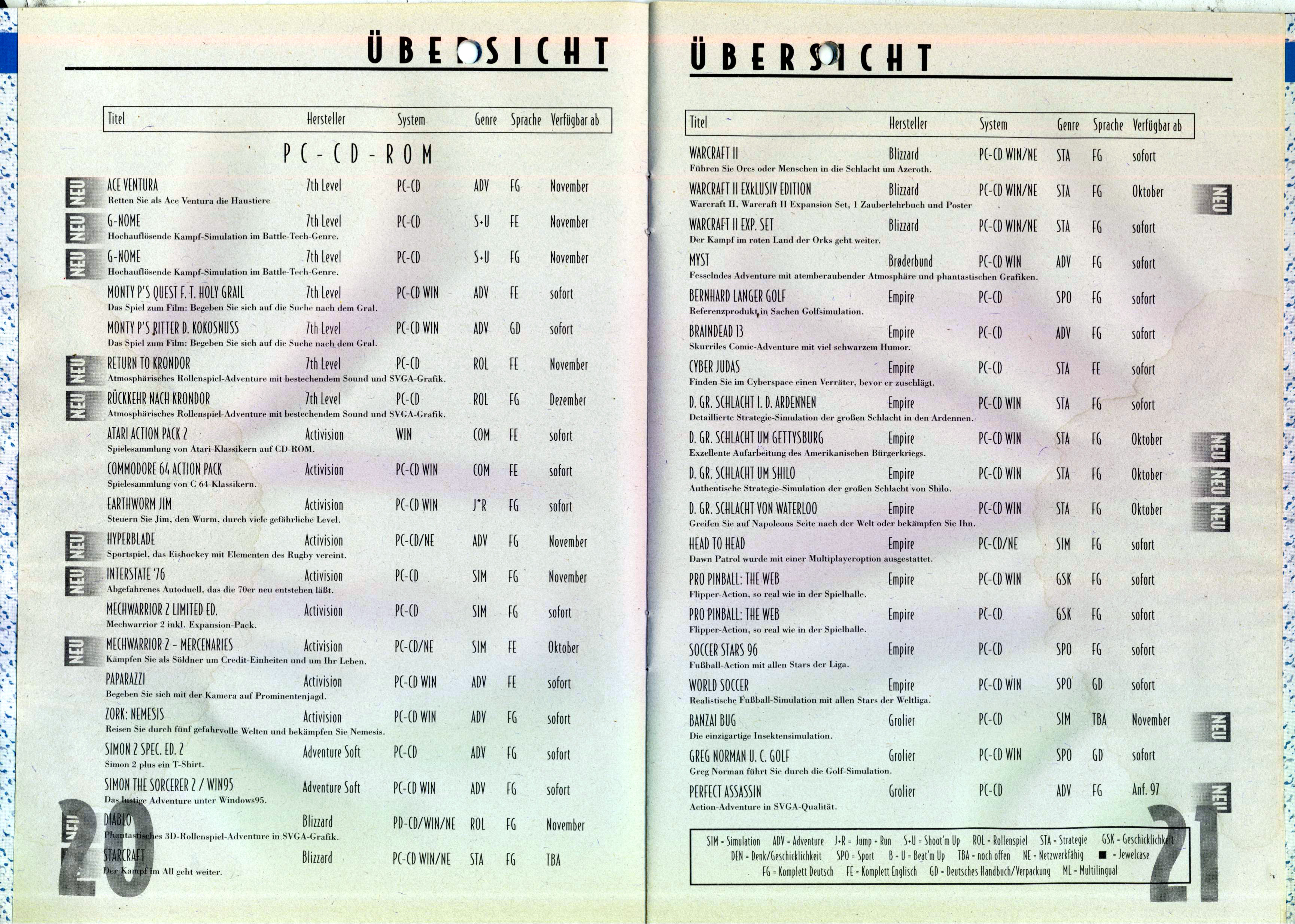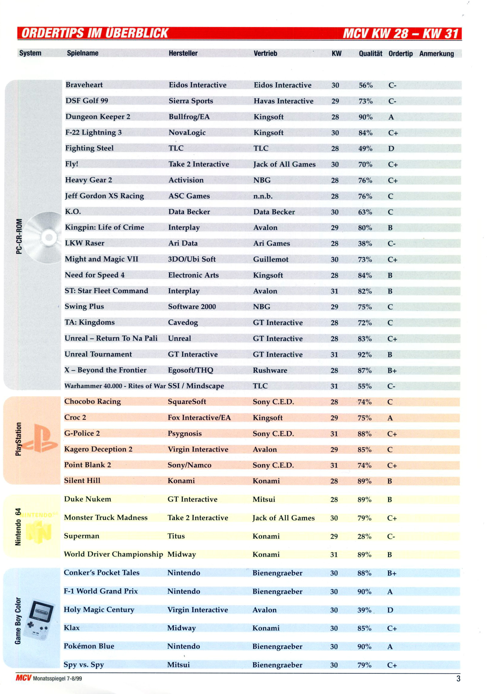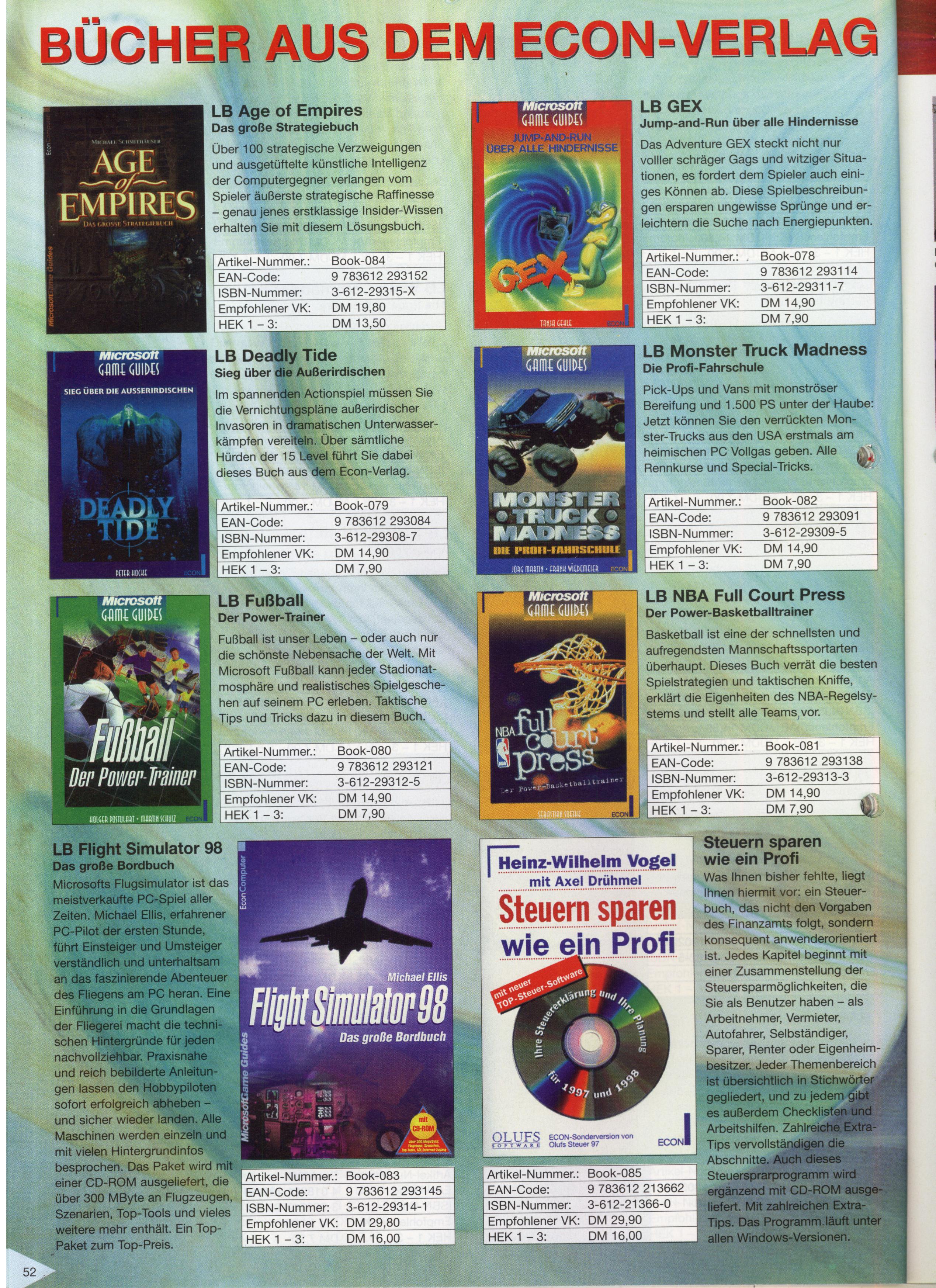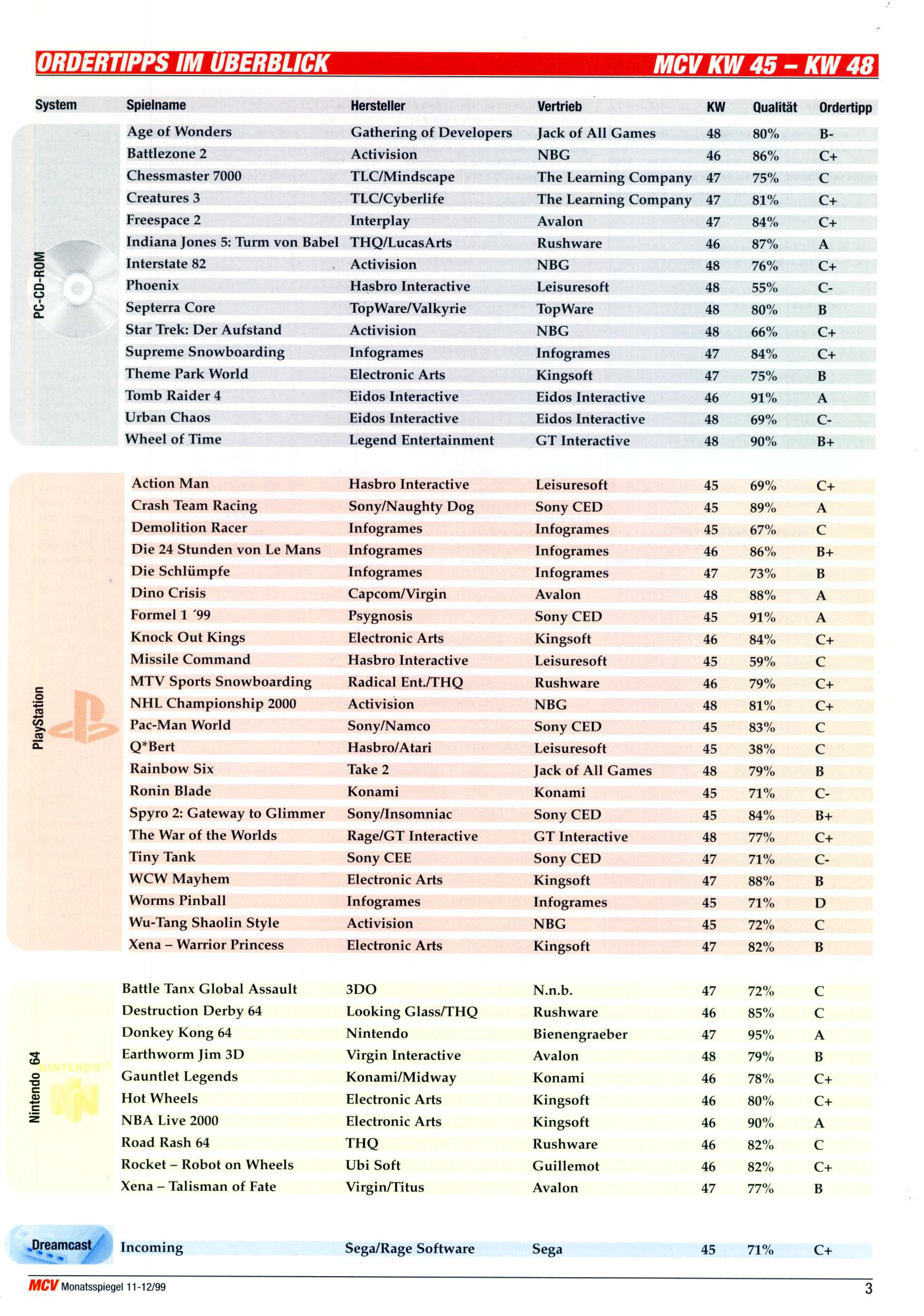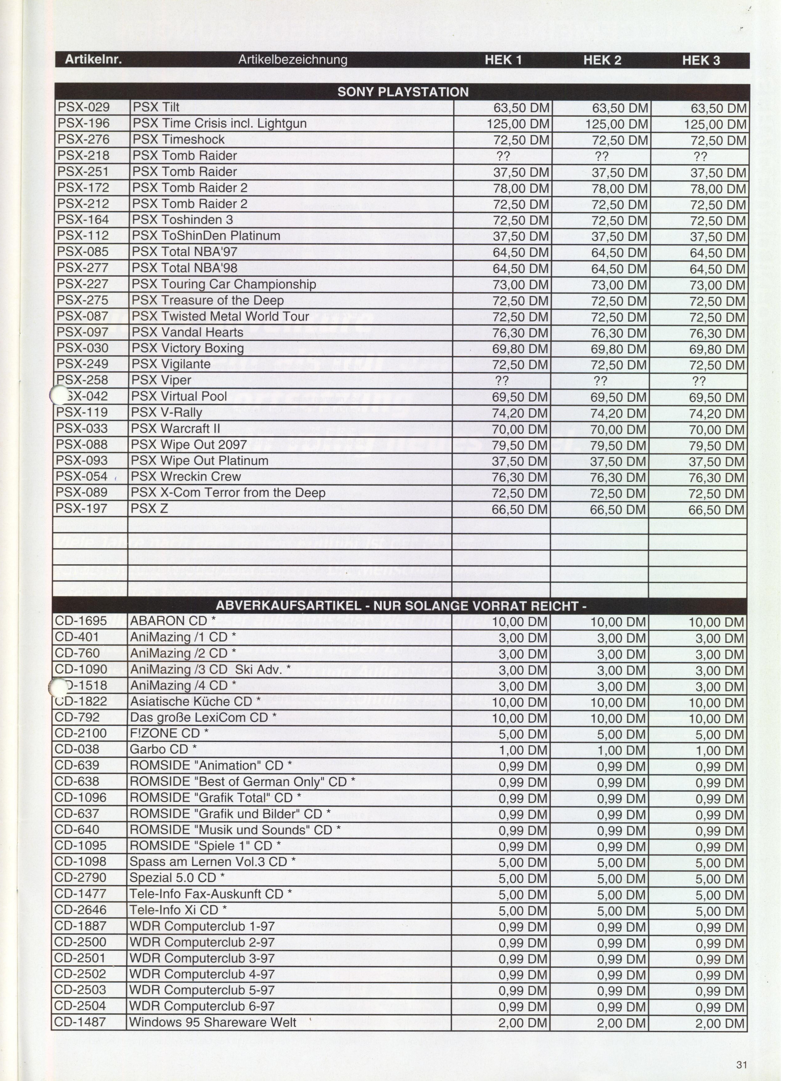 German PC and Video Game Release Lists 1997 and 1998