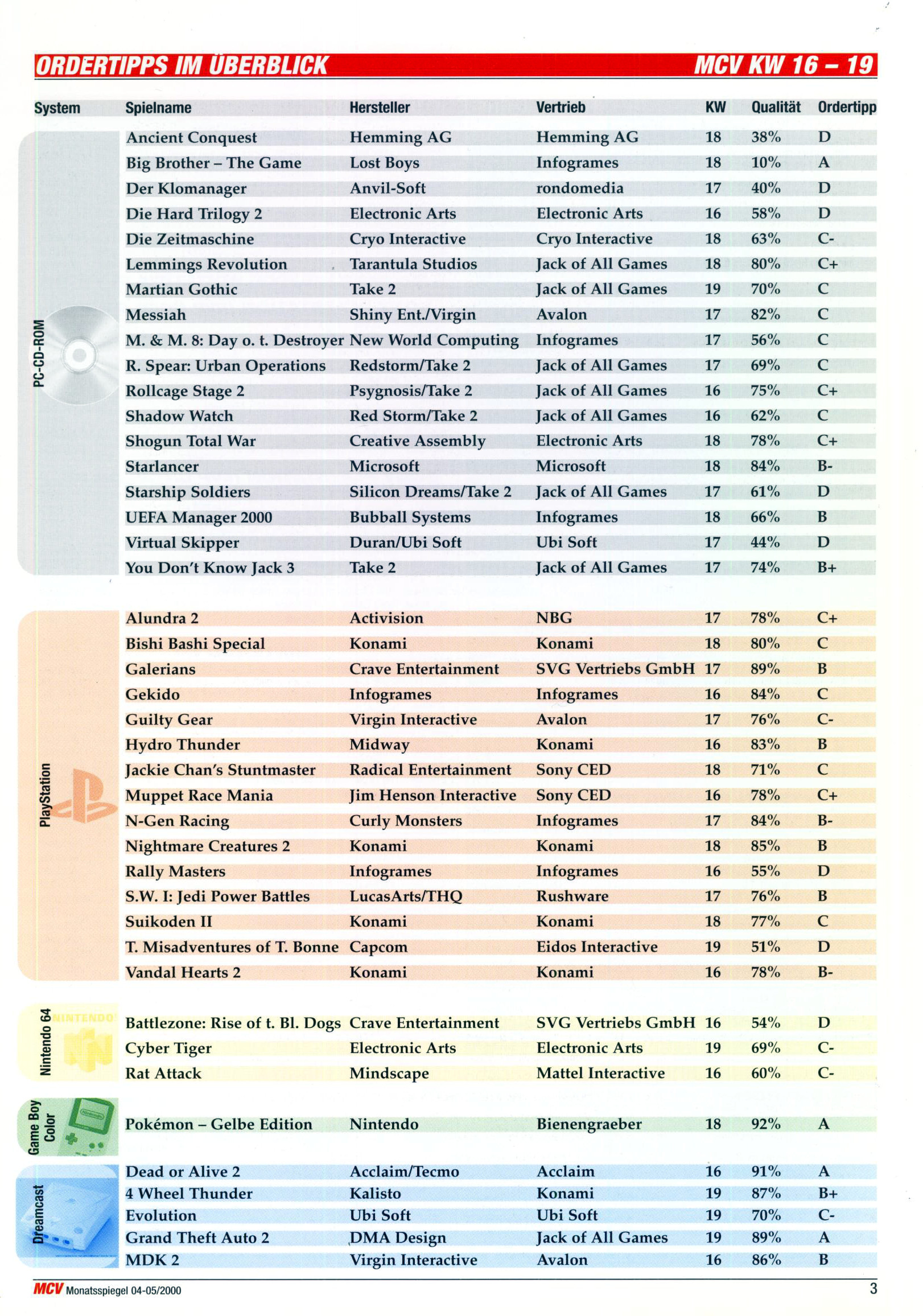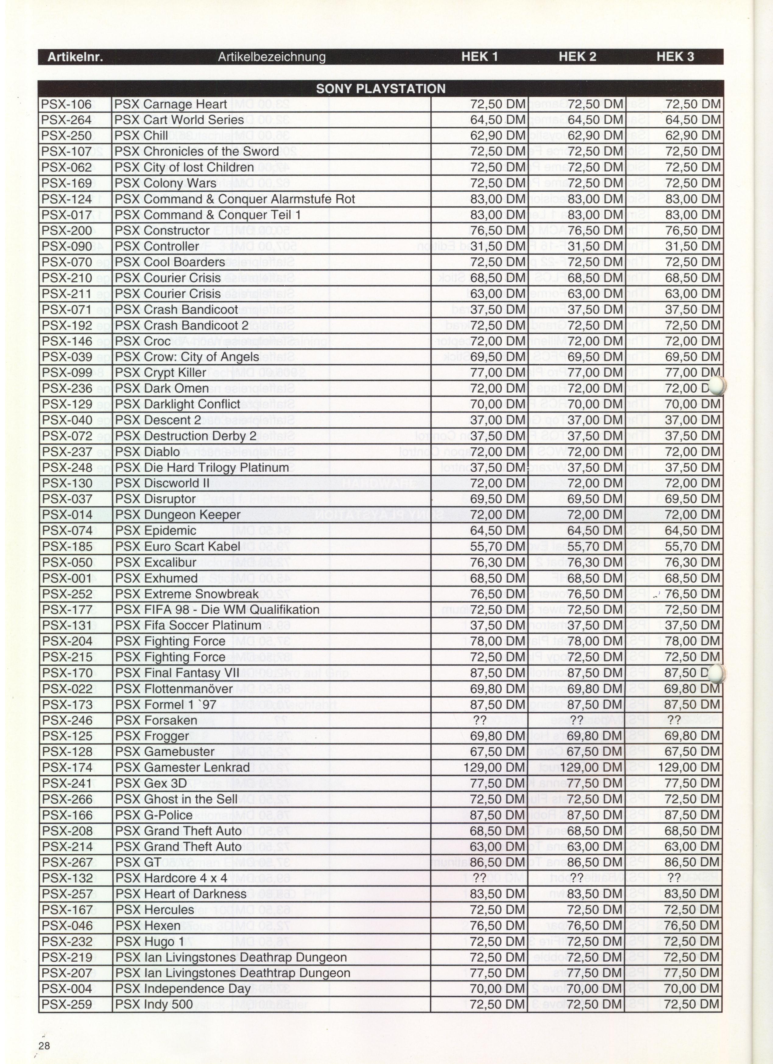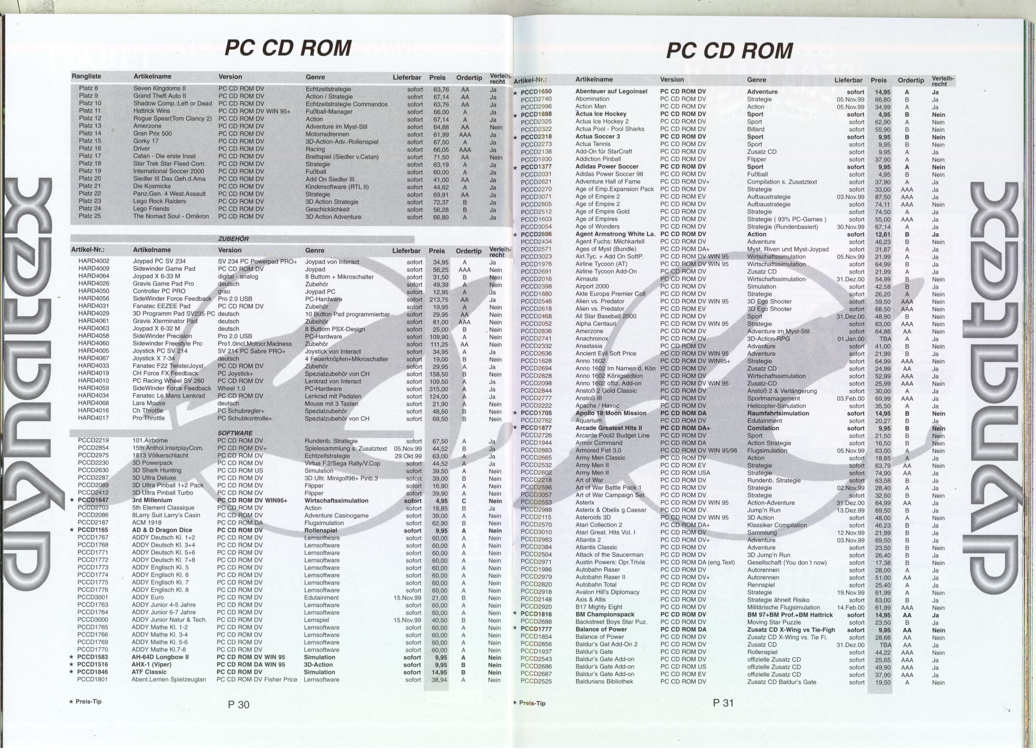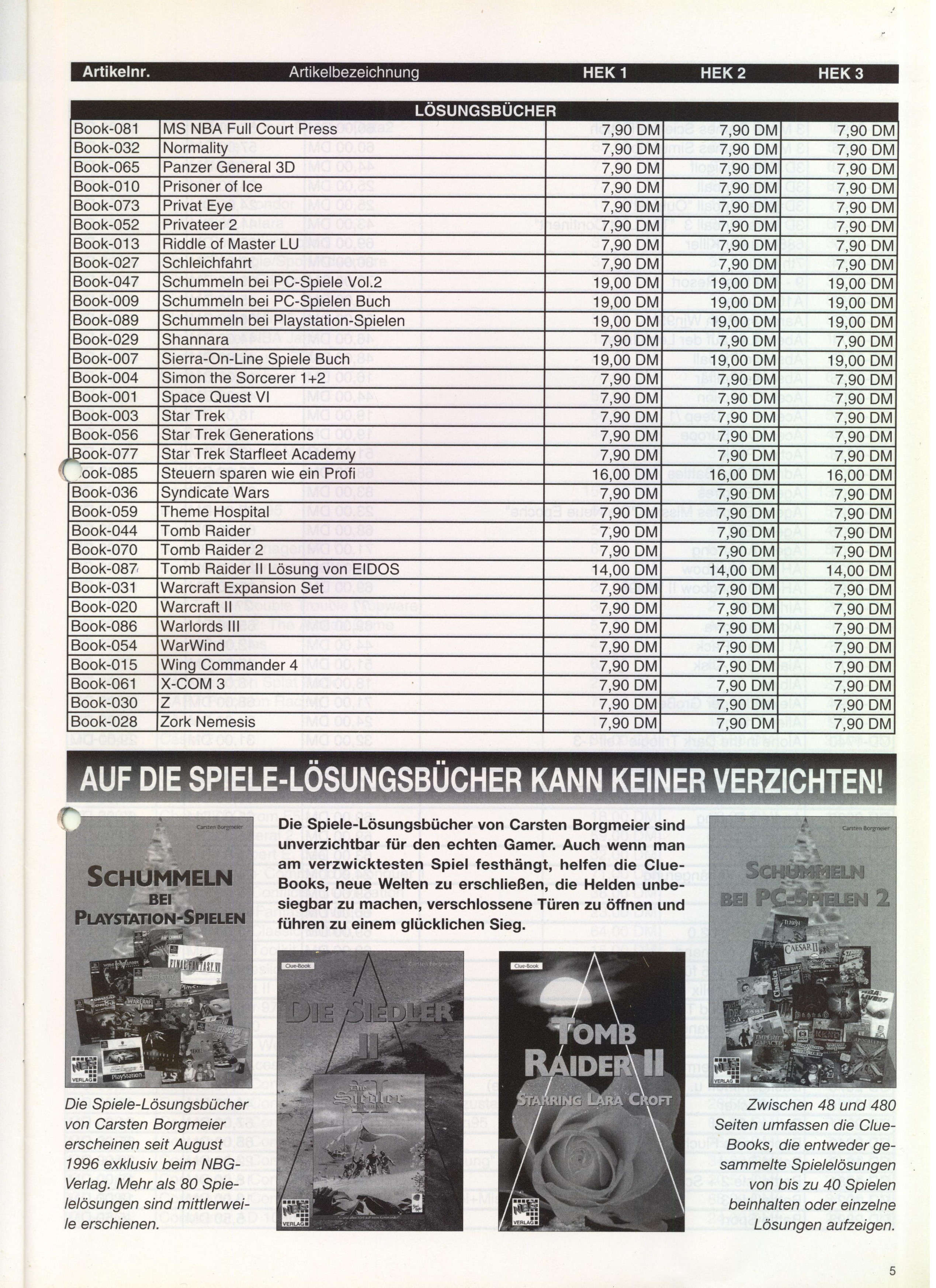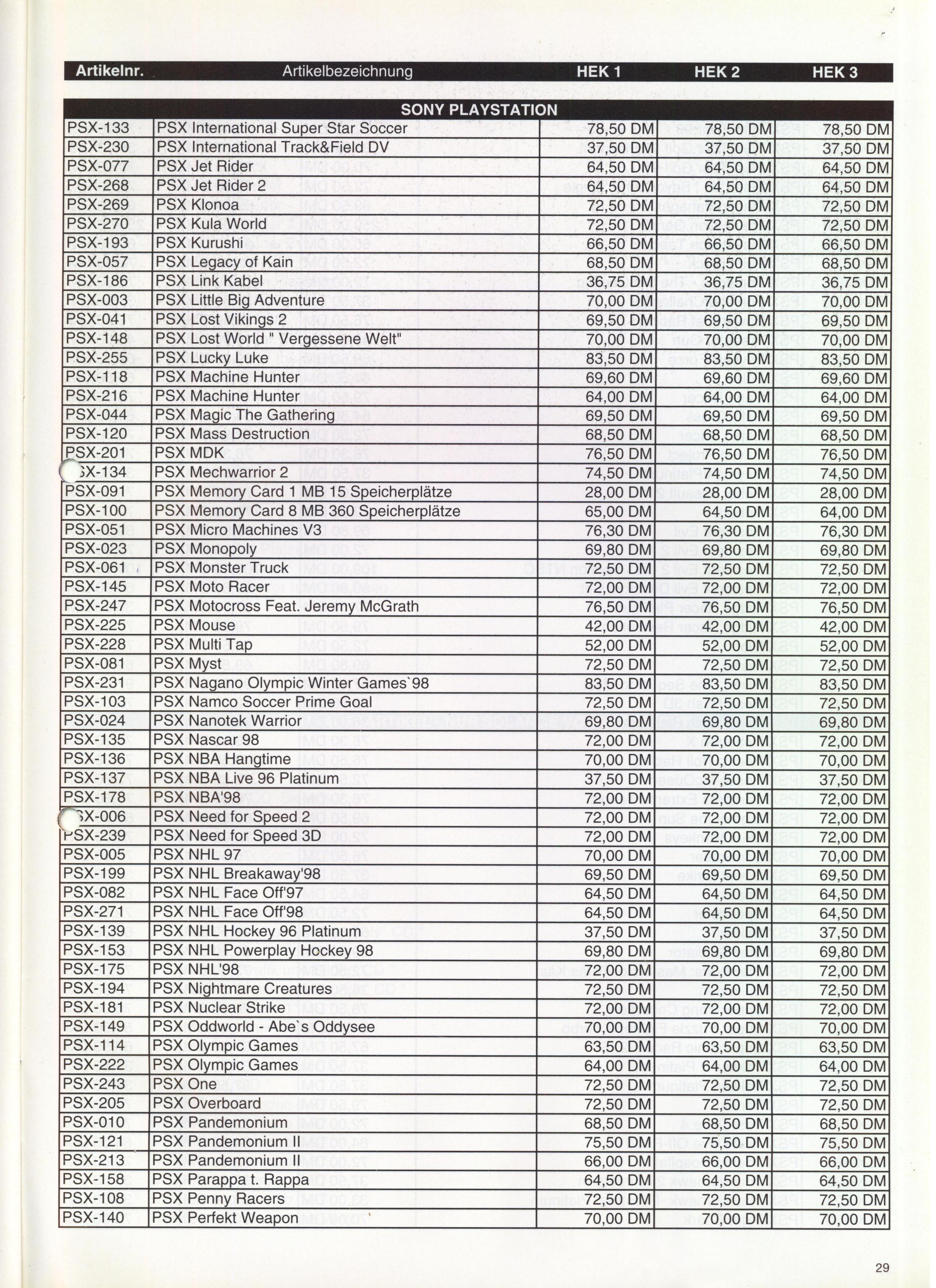 German PC and Video Game Release Lists 1997 and 1998