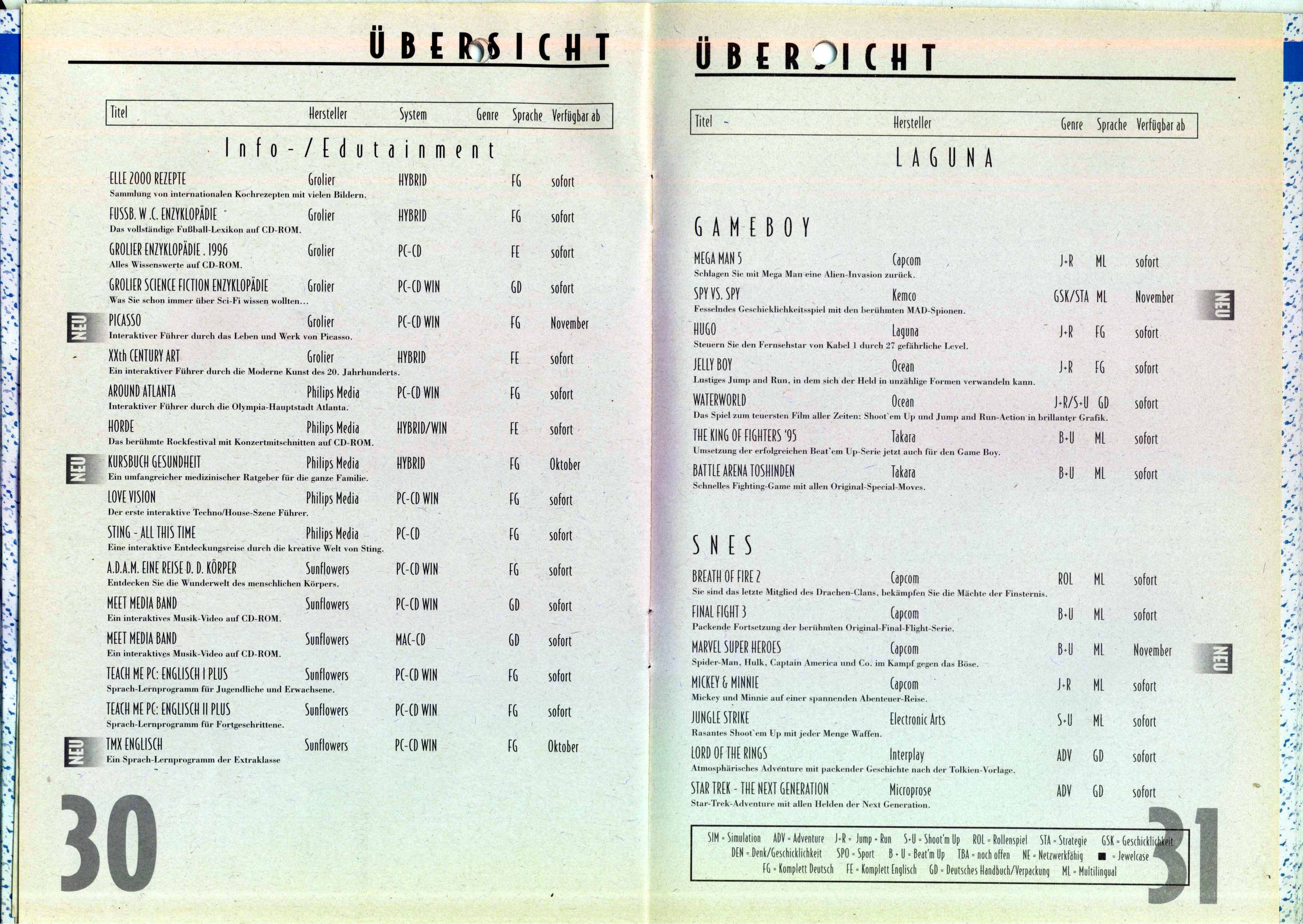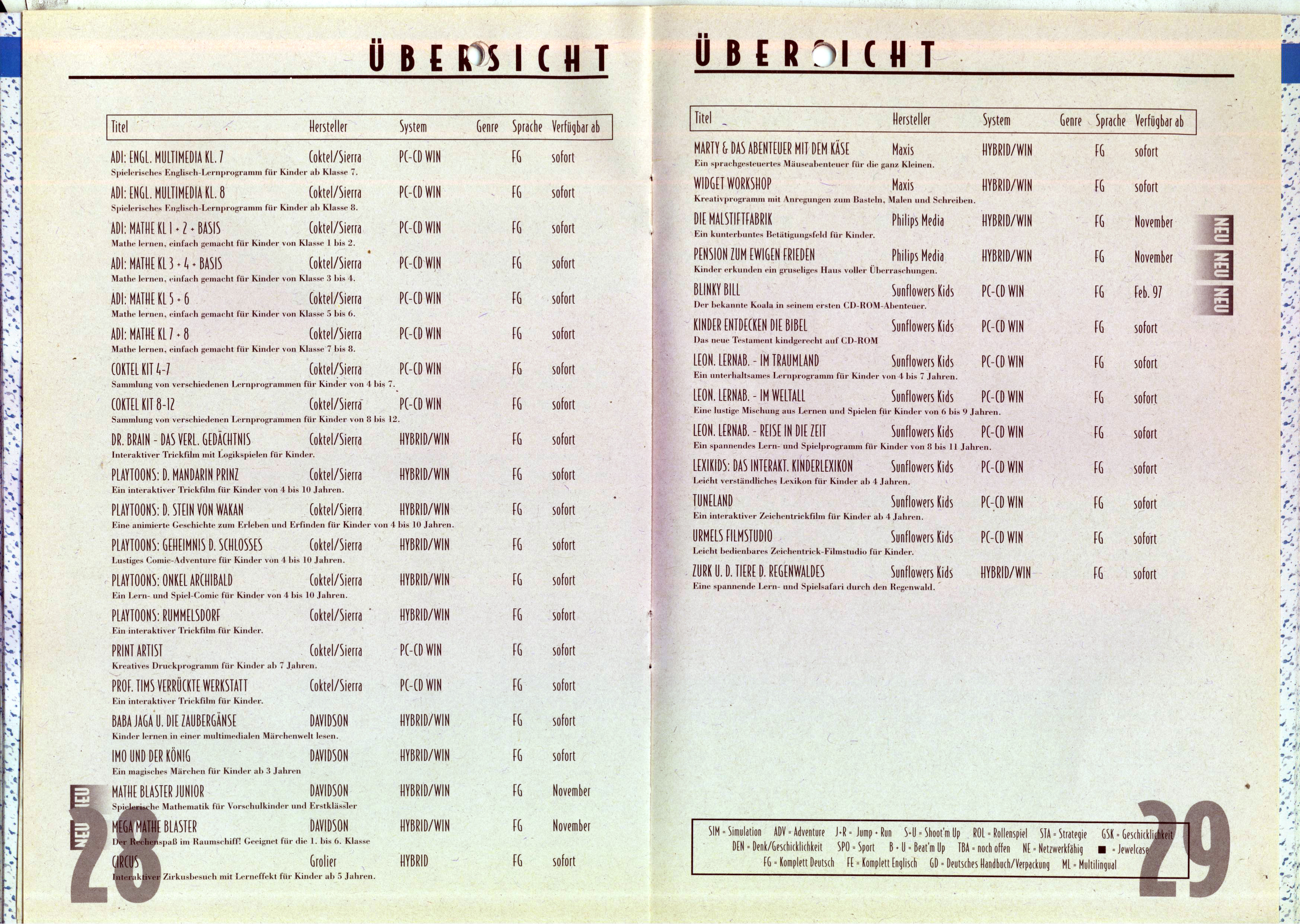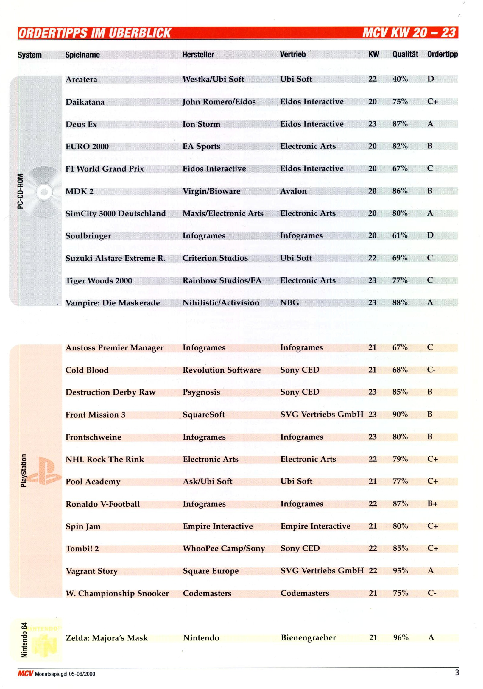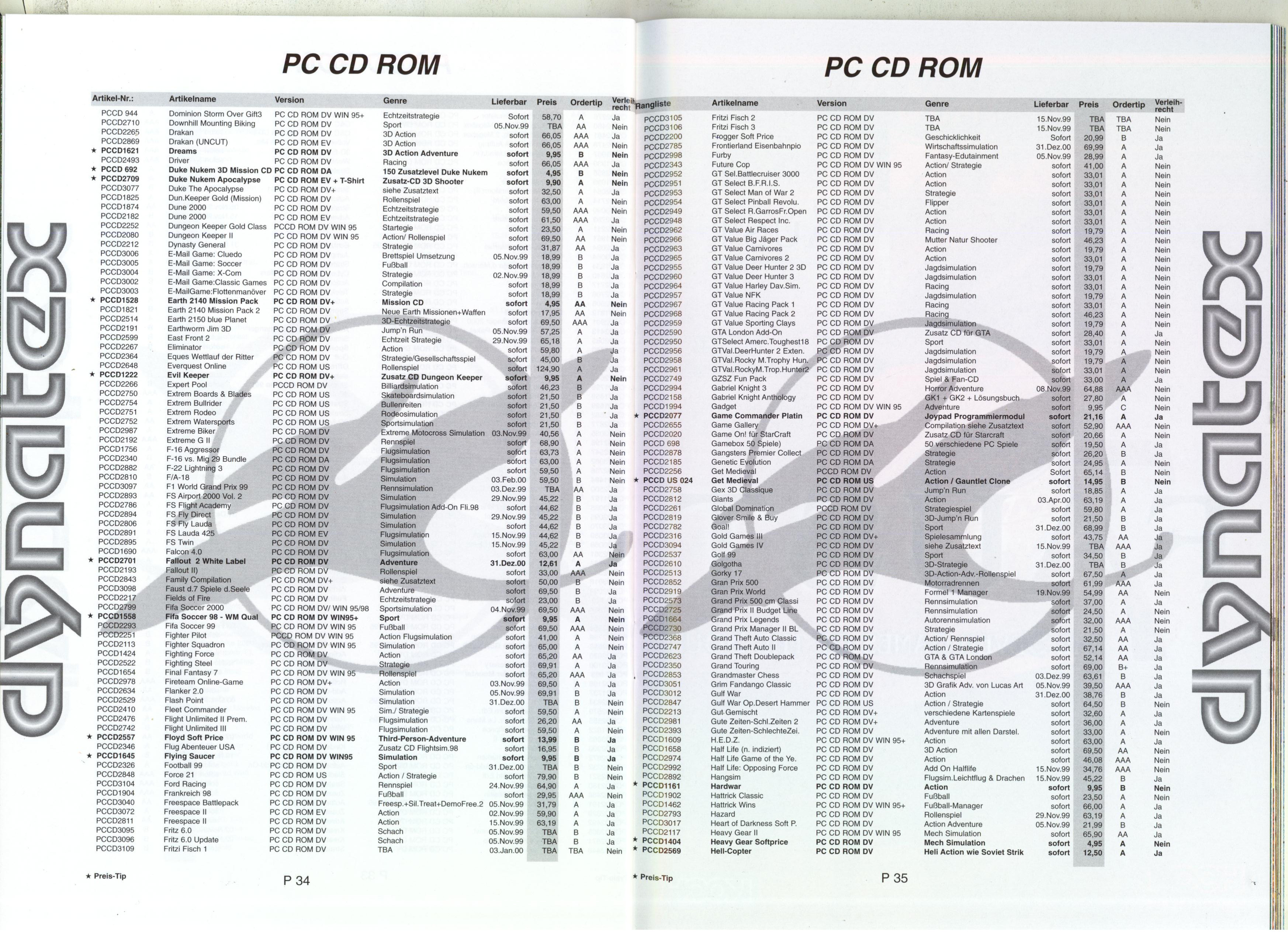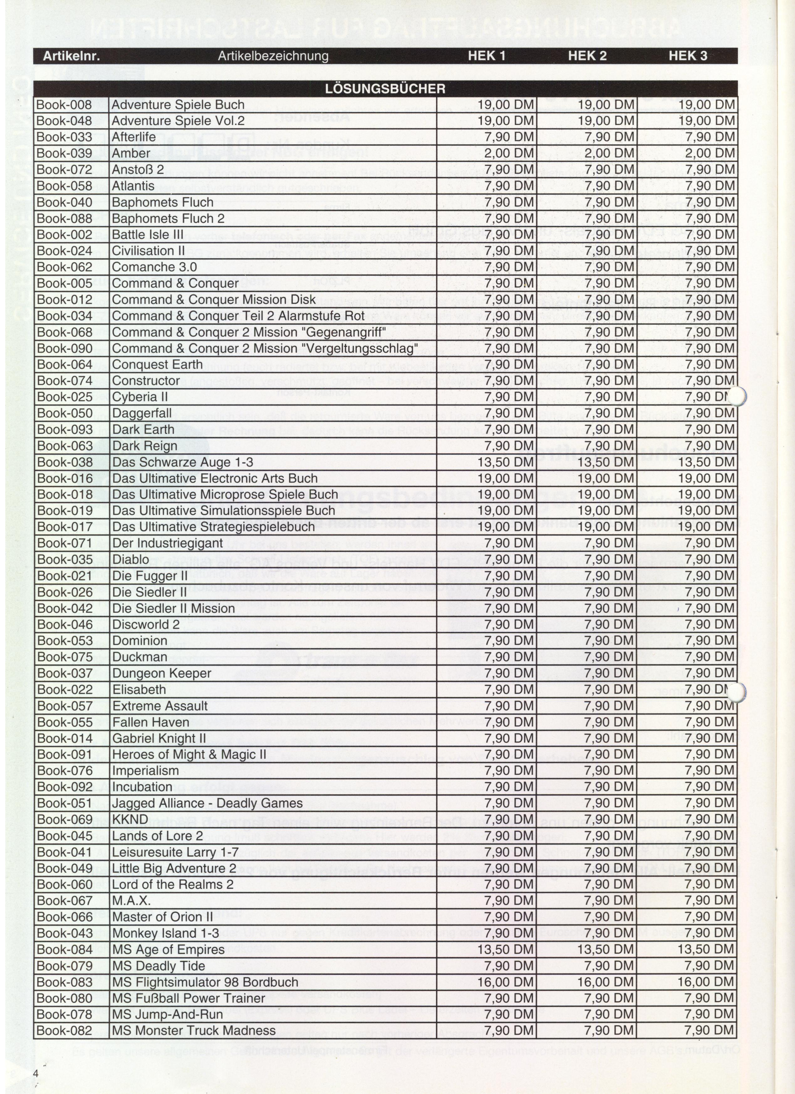 German PC and Video Game Release Lists 1997 and 1998