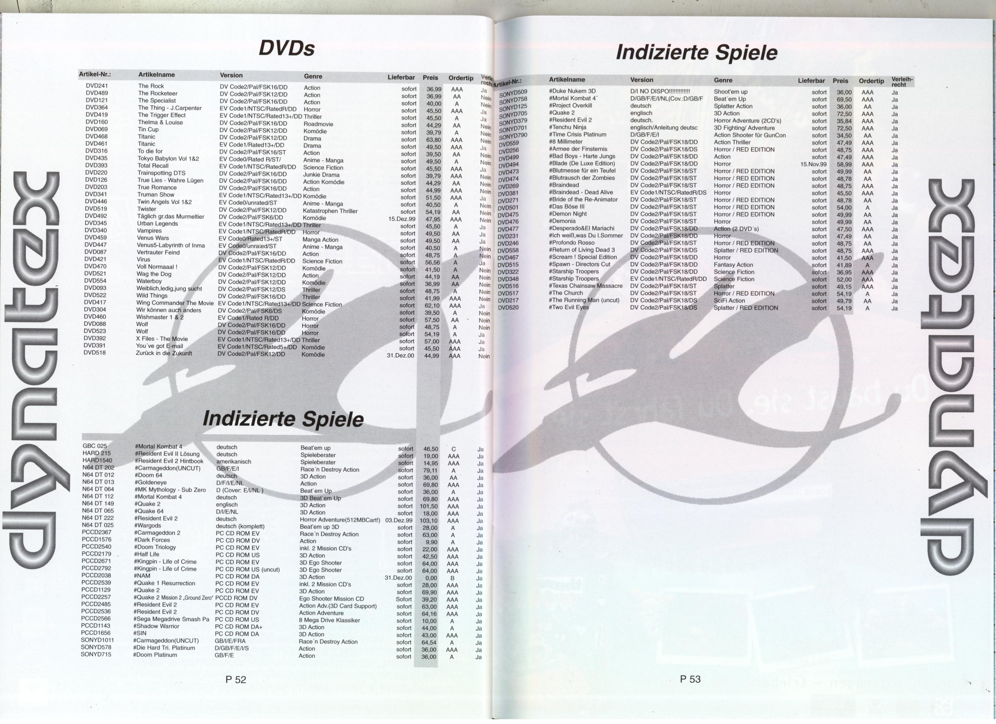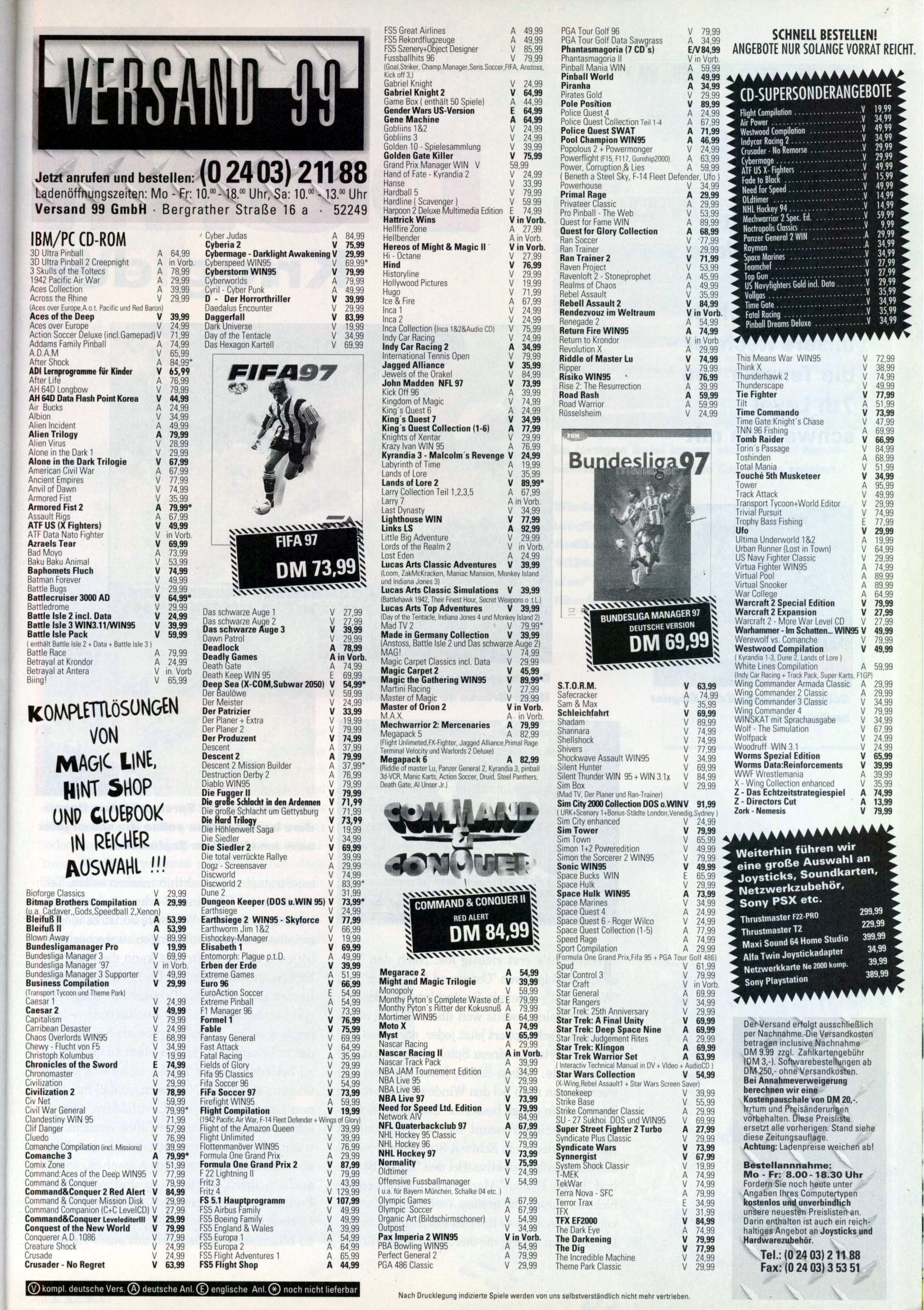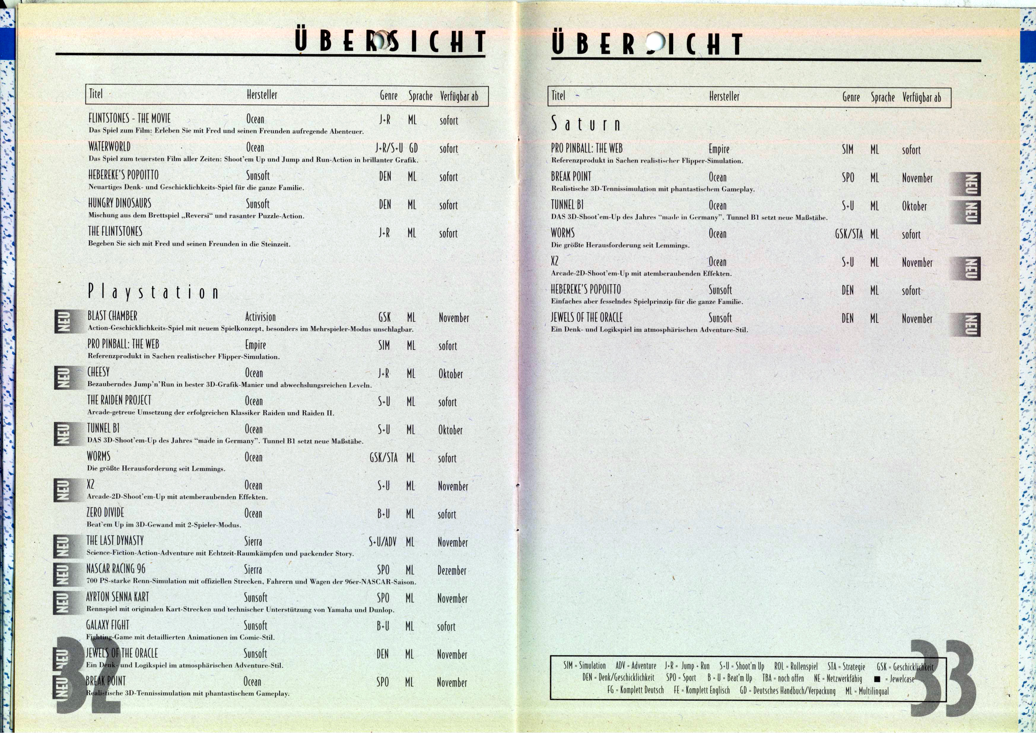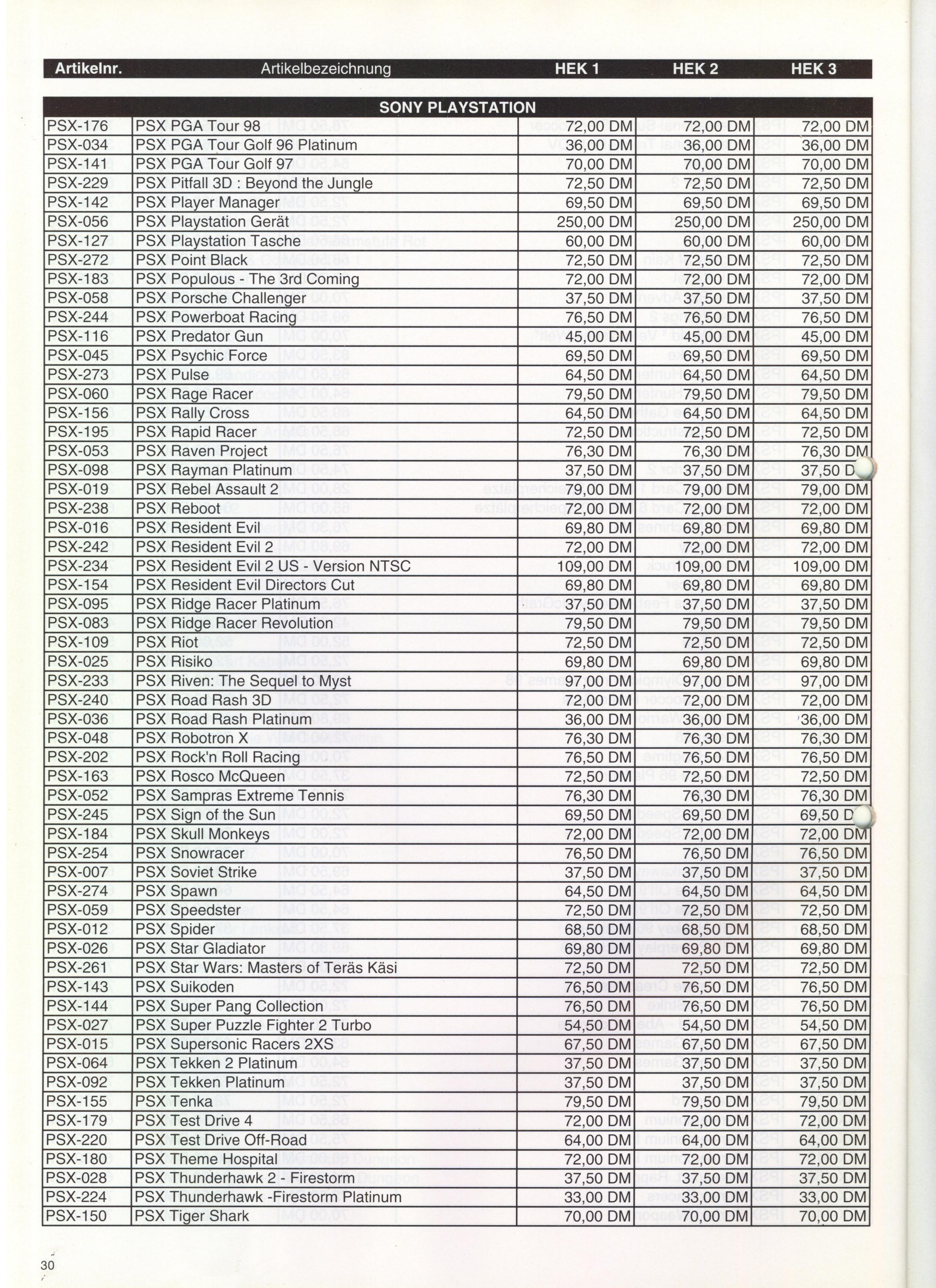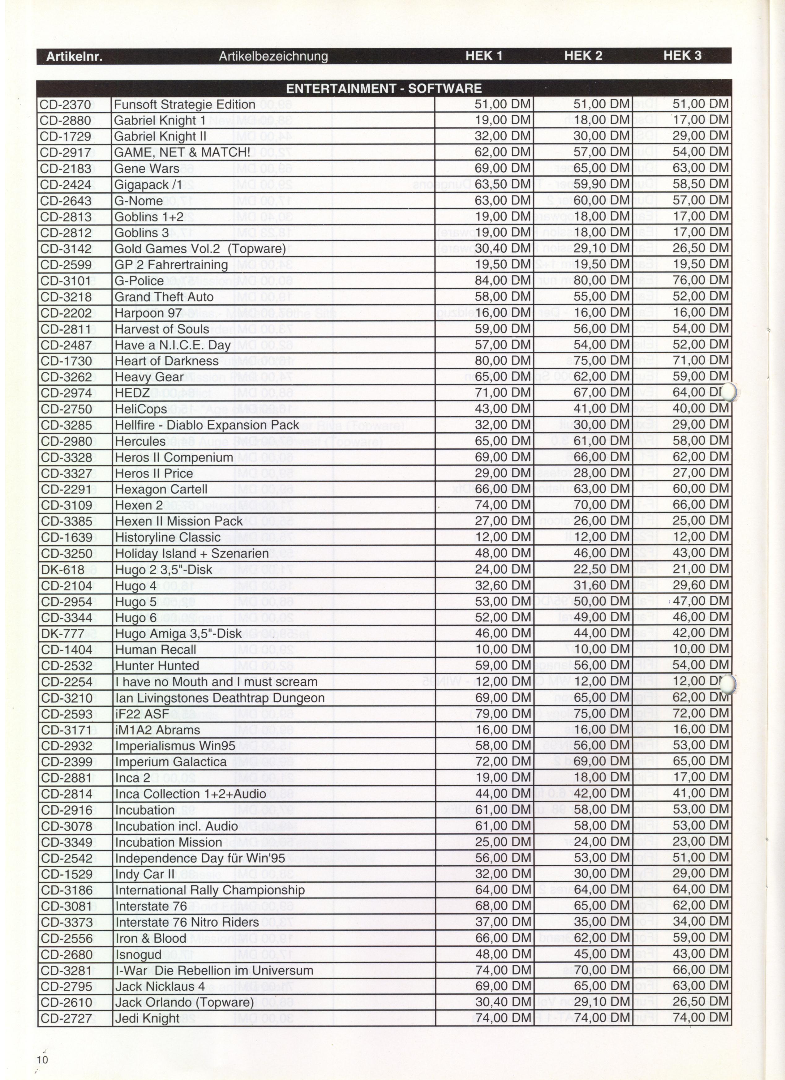 German PC and Video Game Release Lists 1997 and 1998