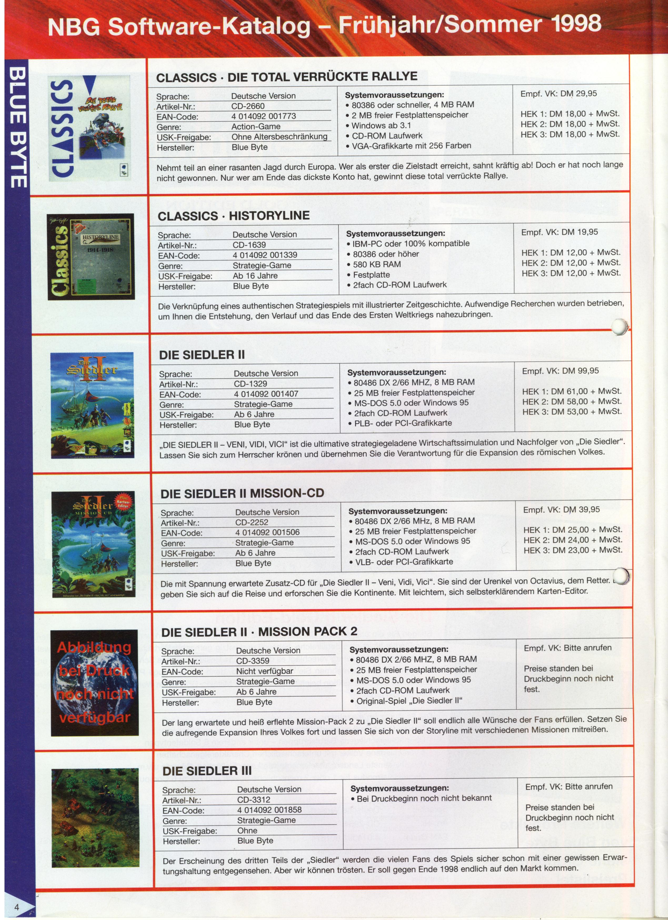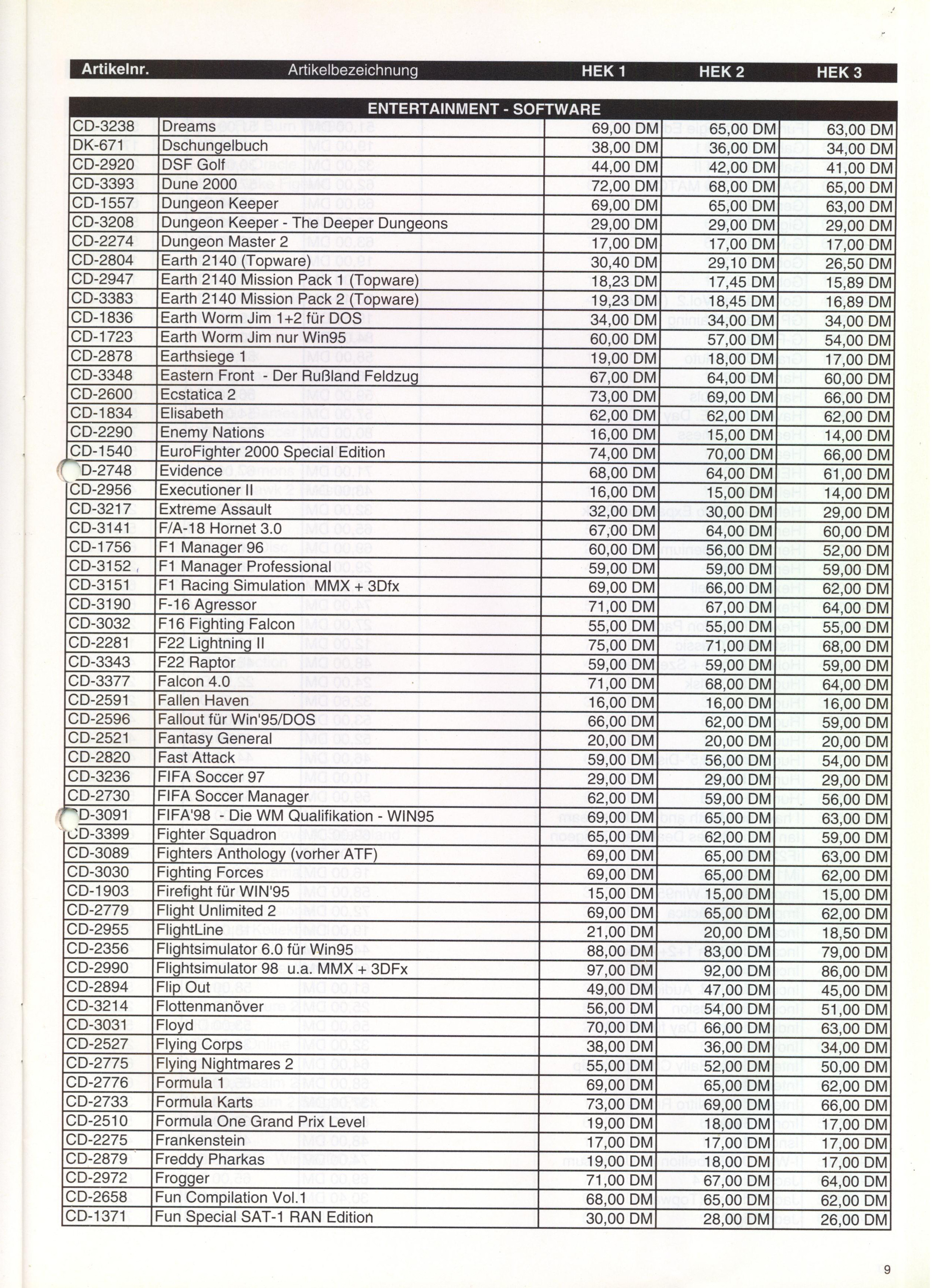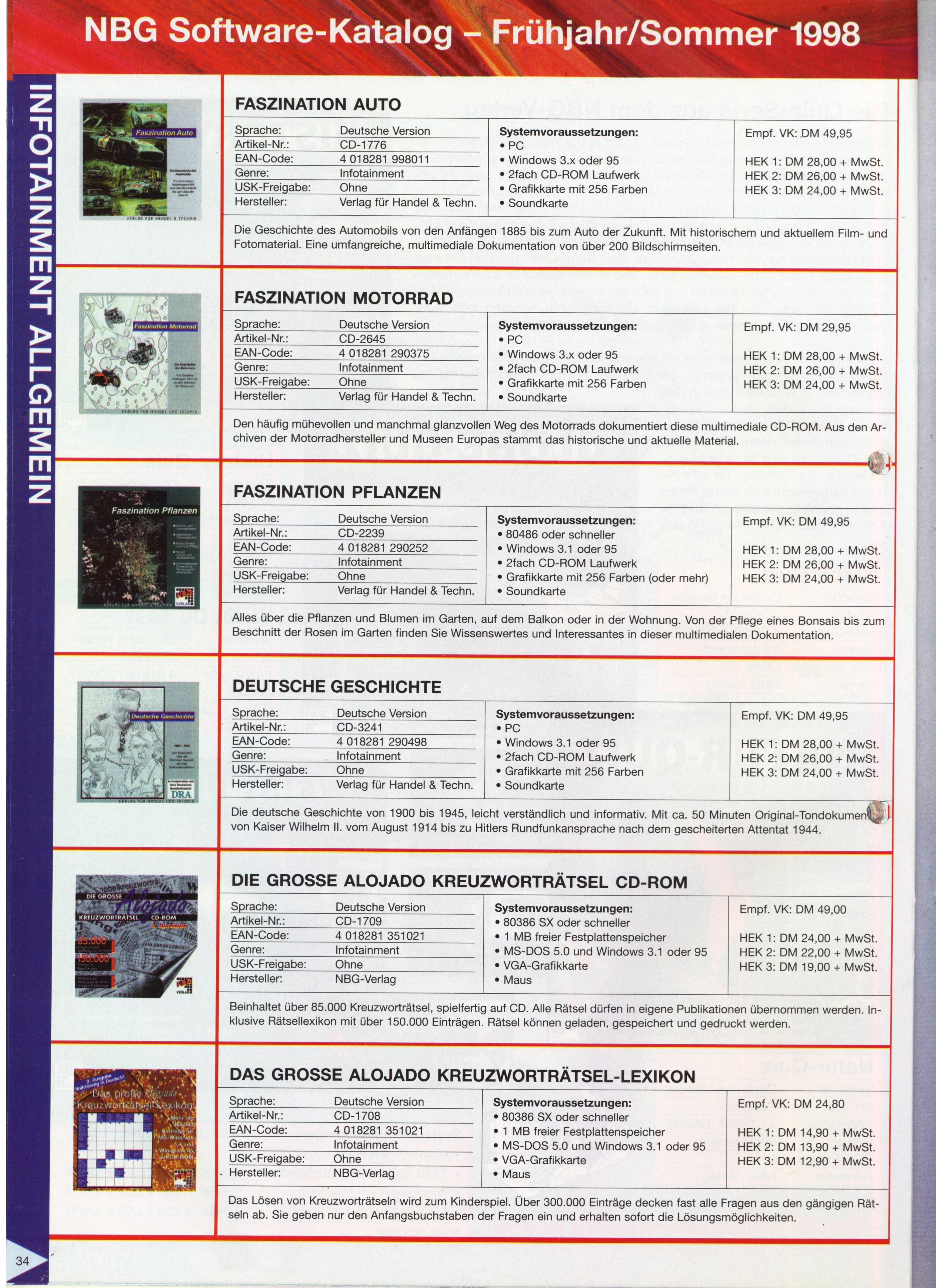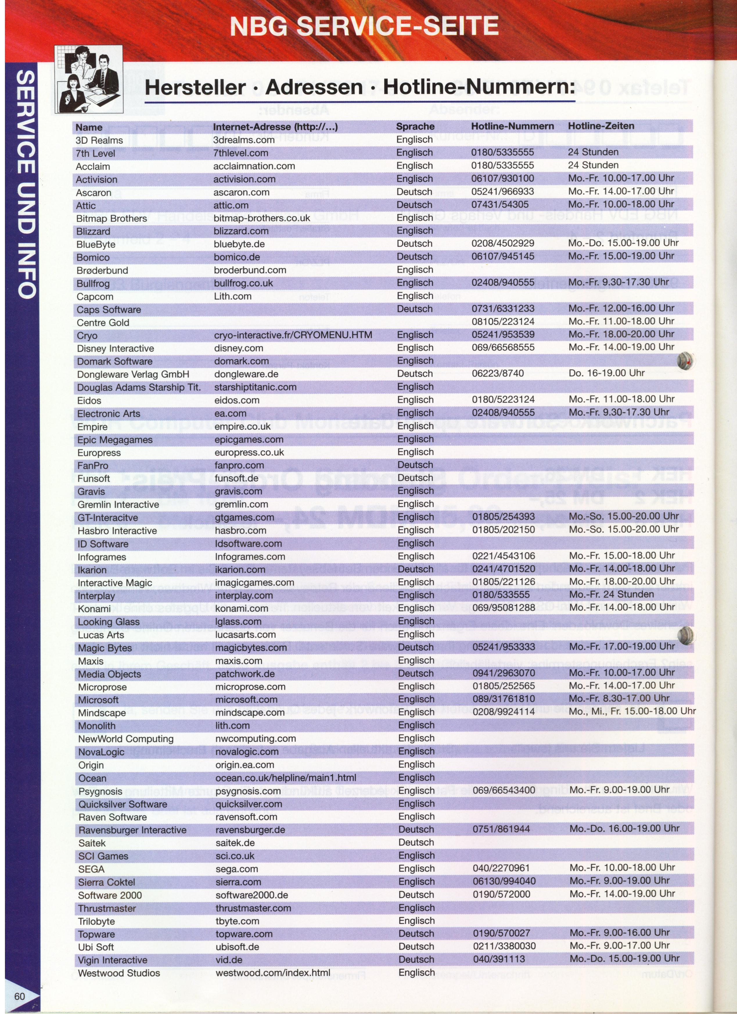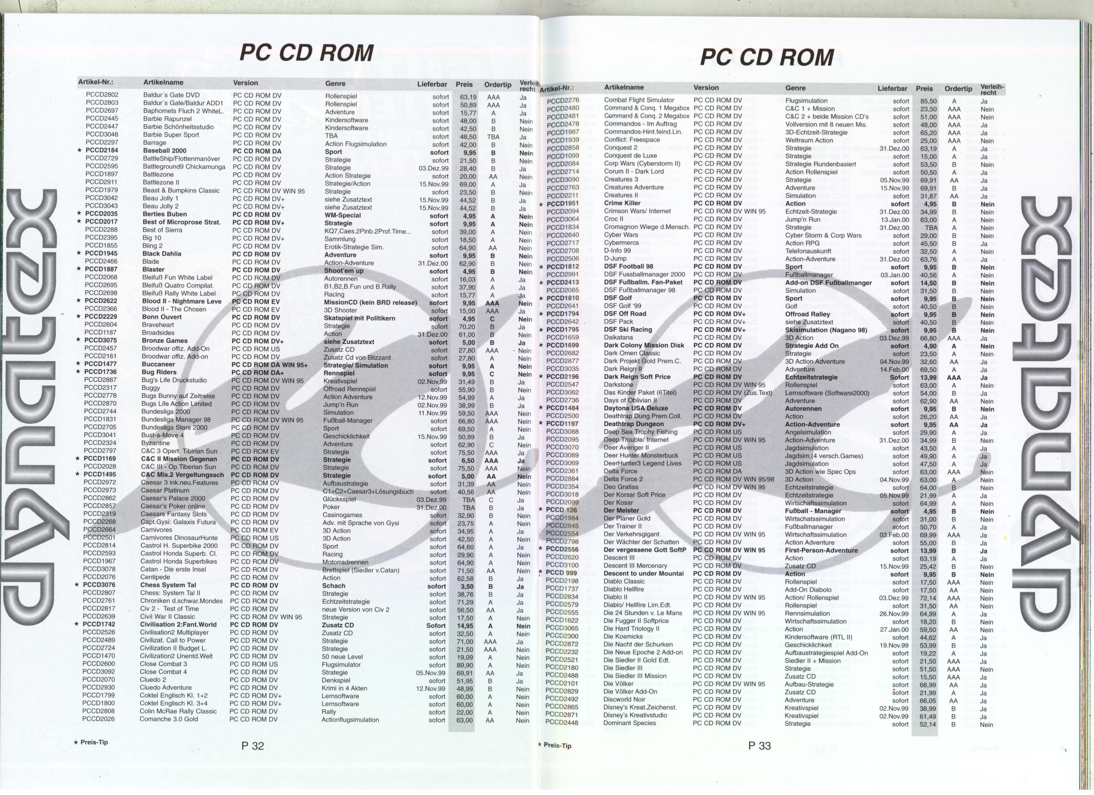 German PC and Video Game Release Lists 1997 and 1998