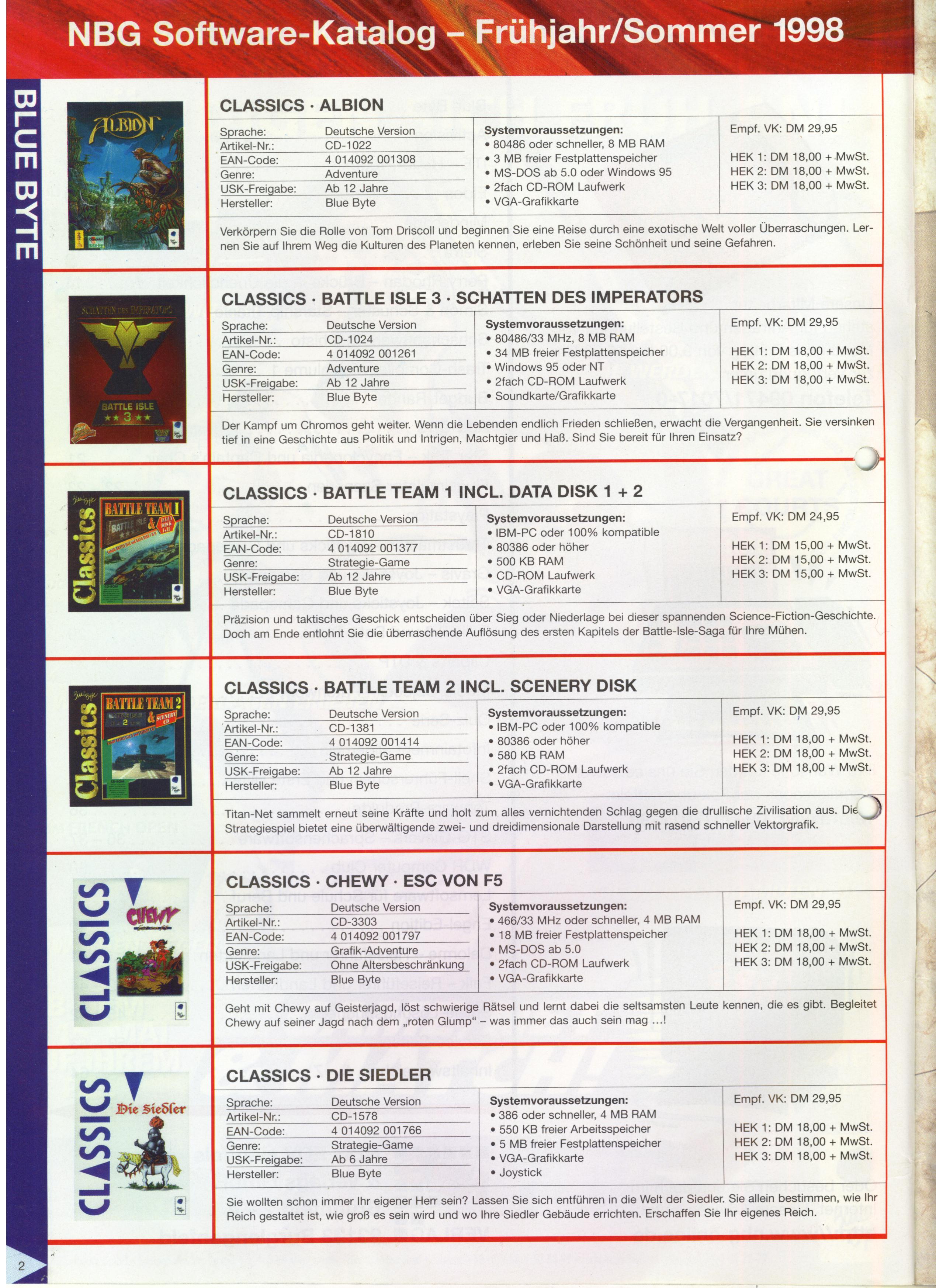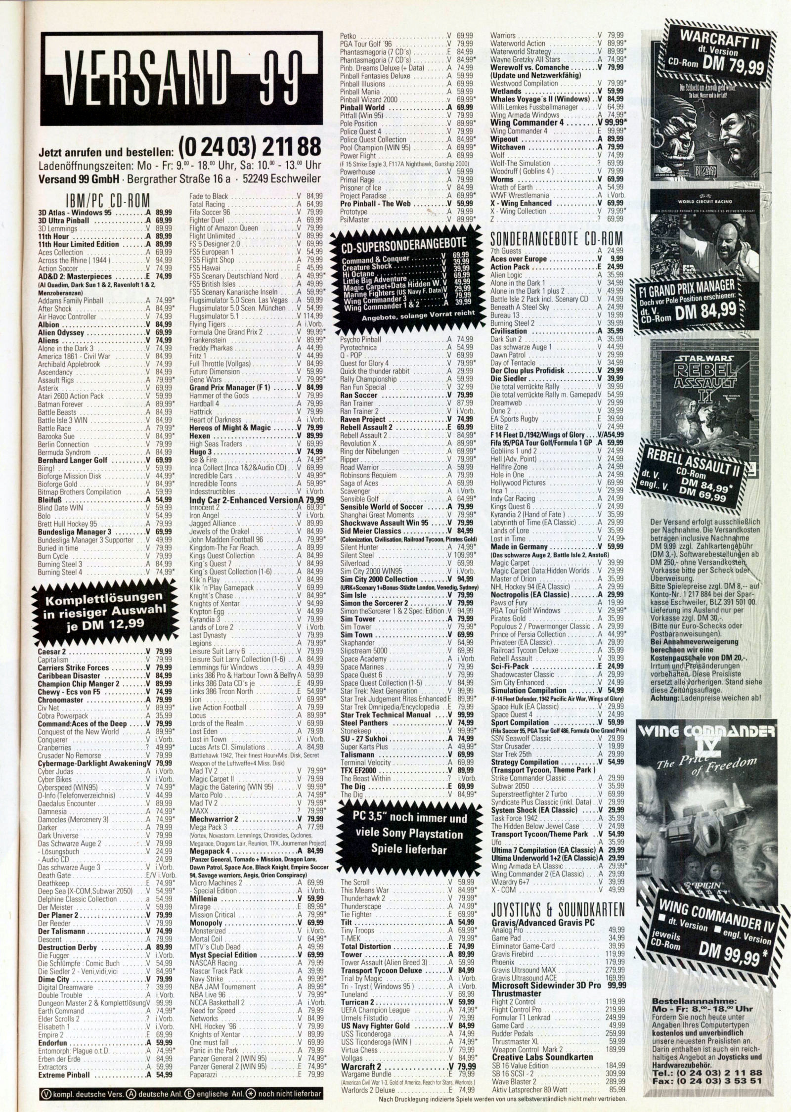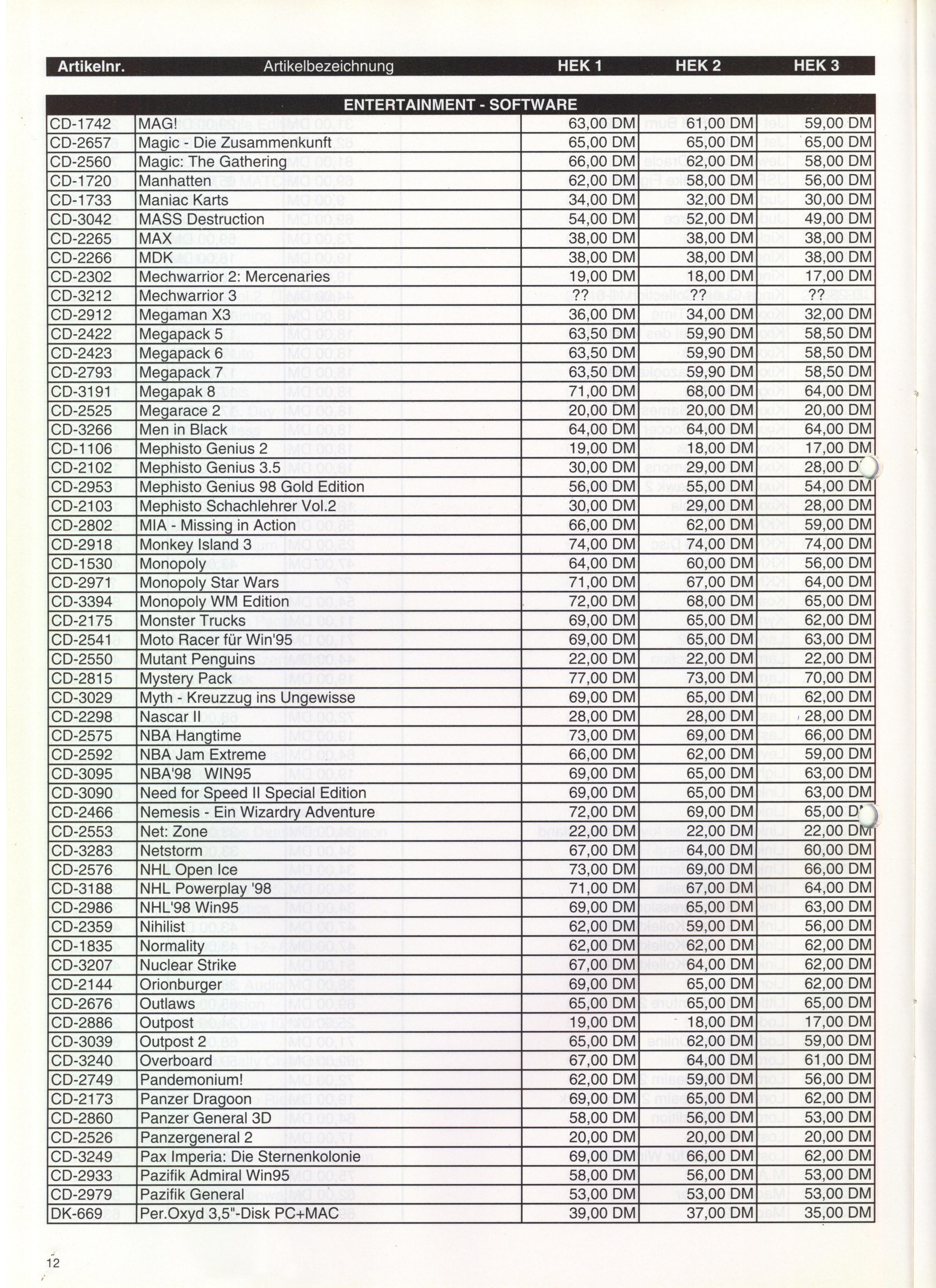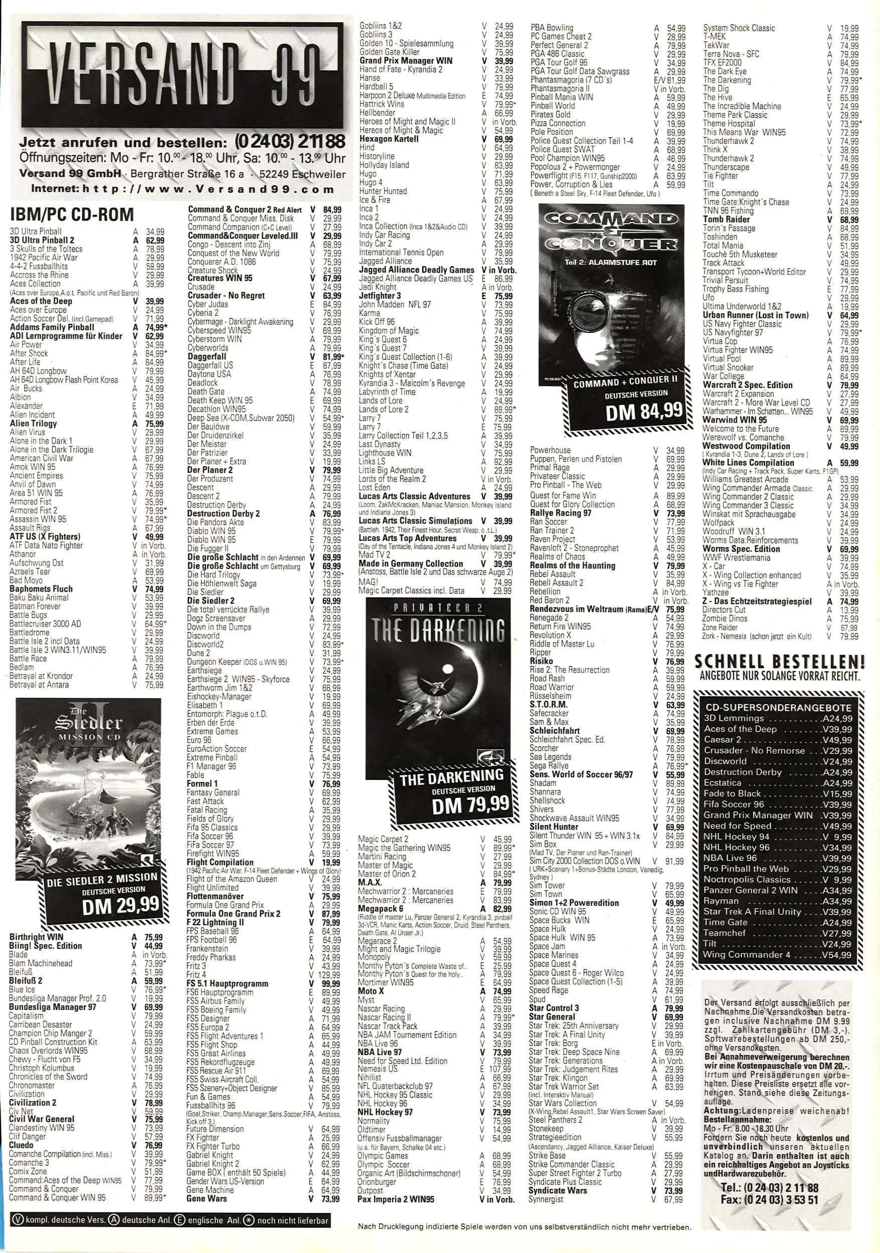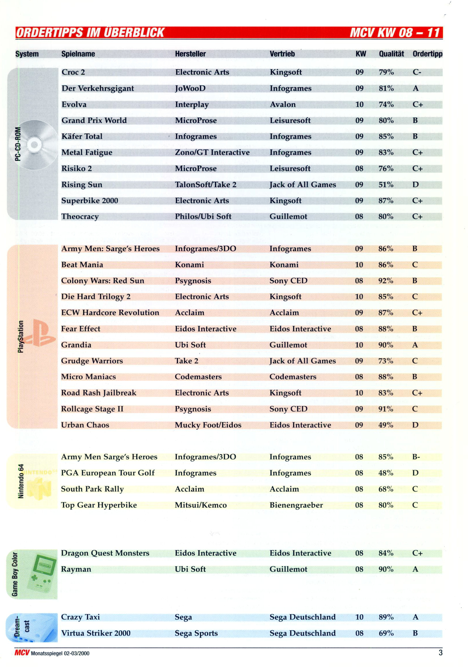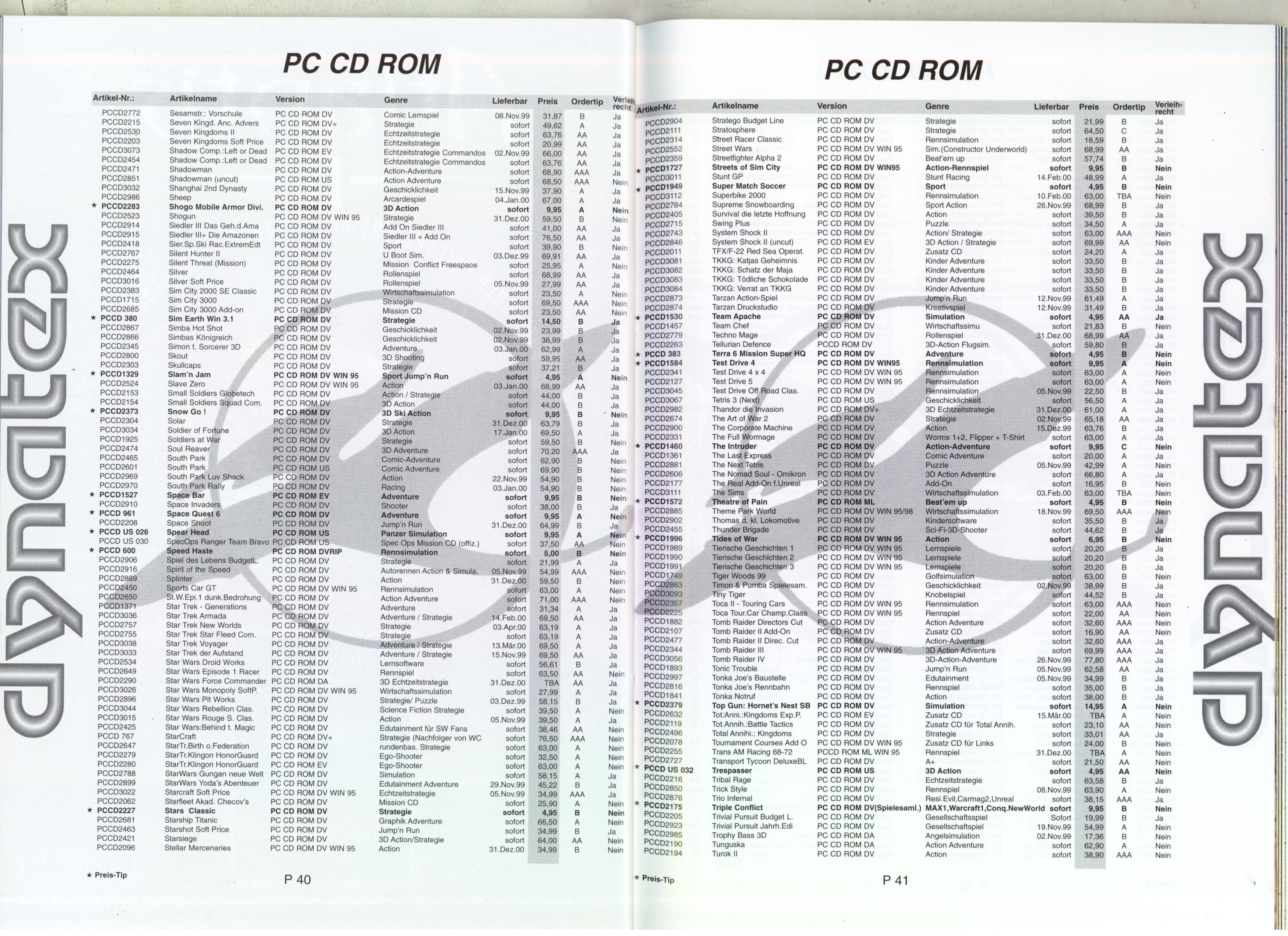 German PC and Video Game Release Lists 1997 and 1998