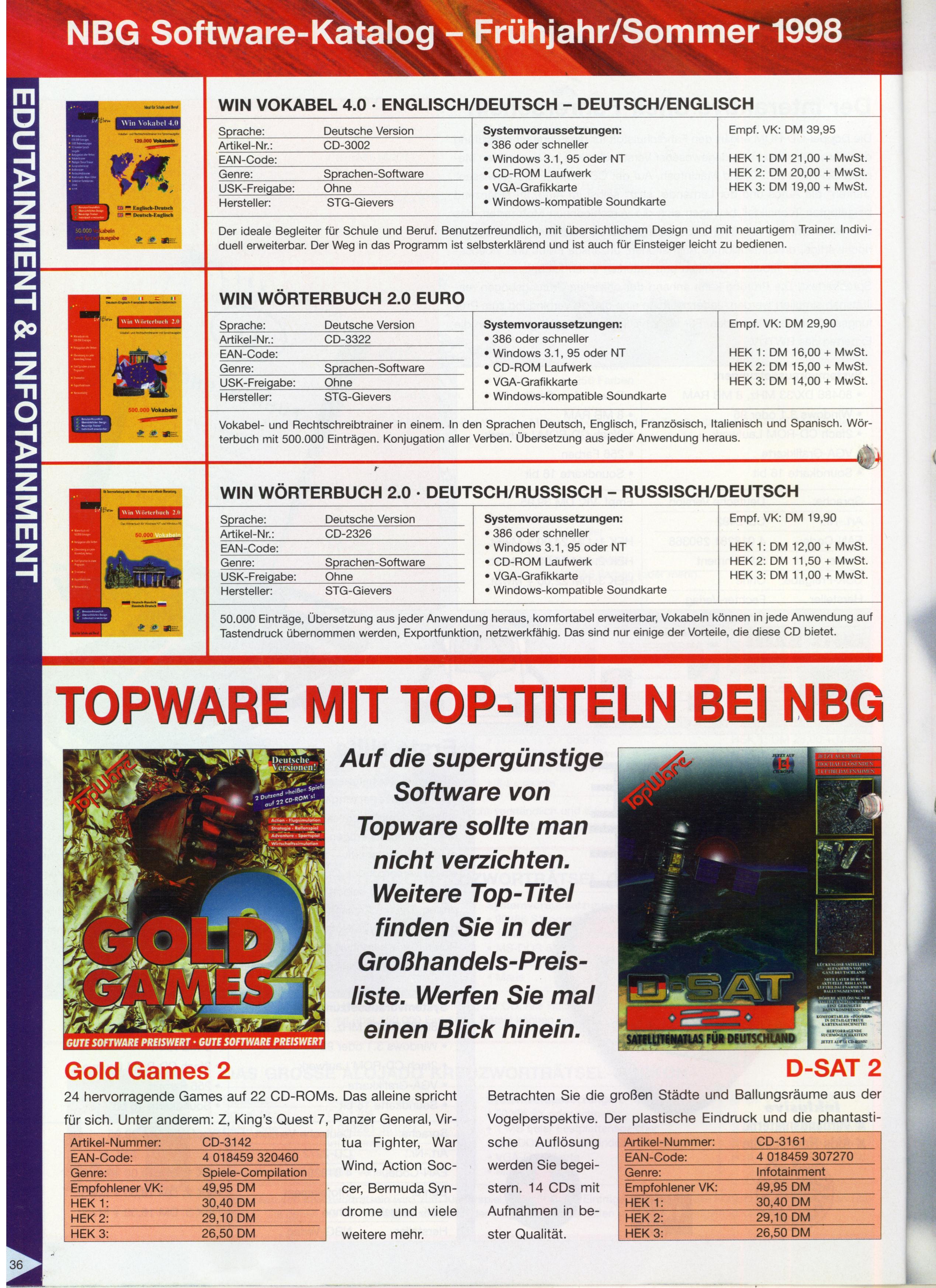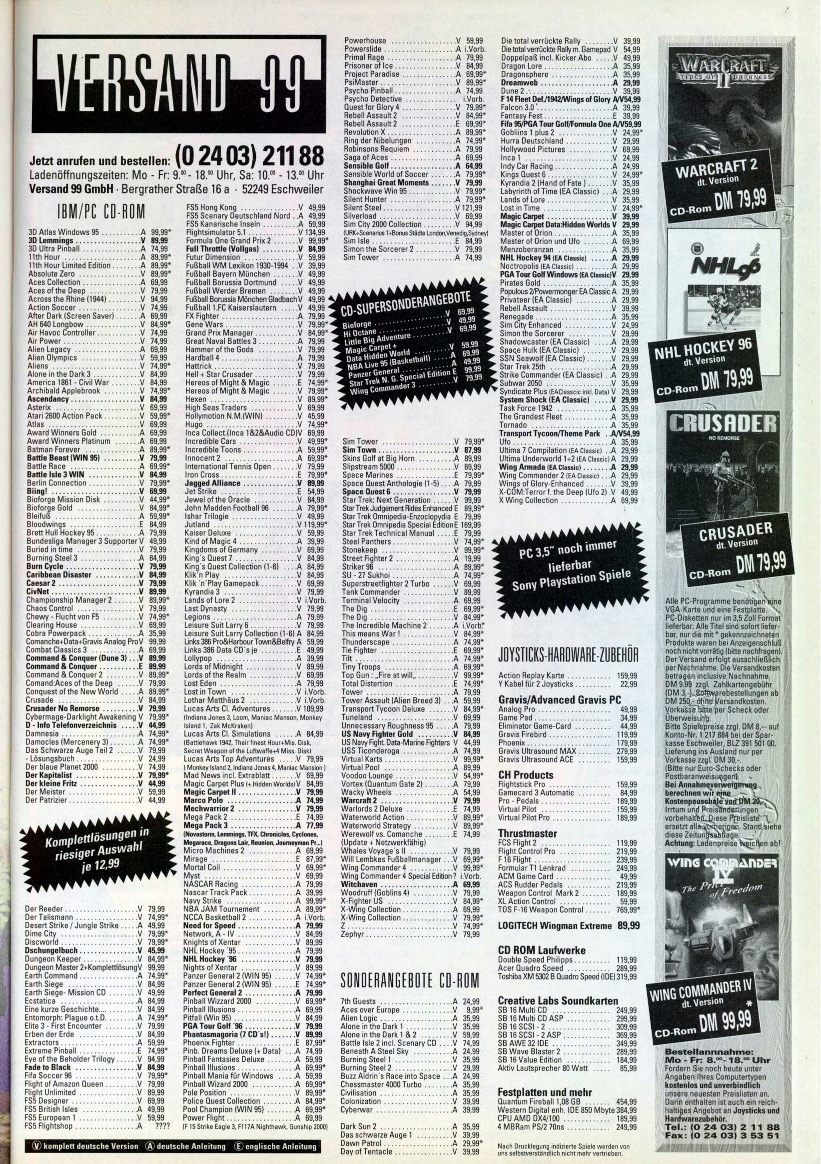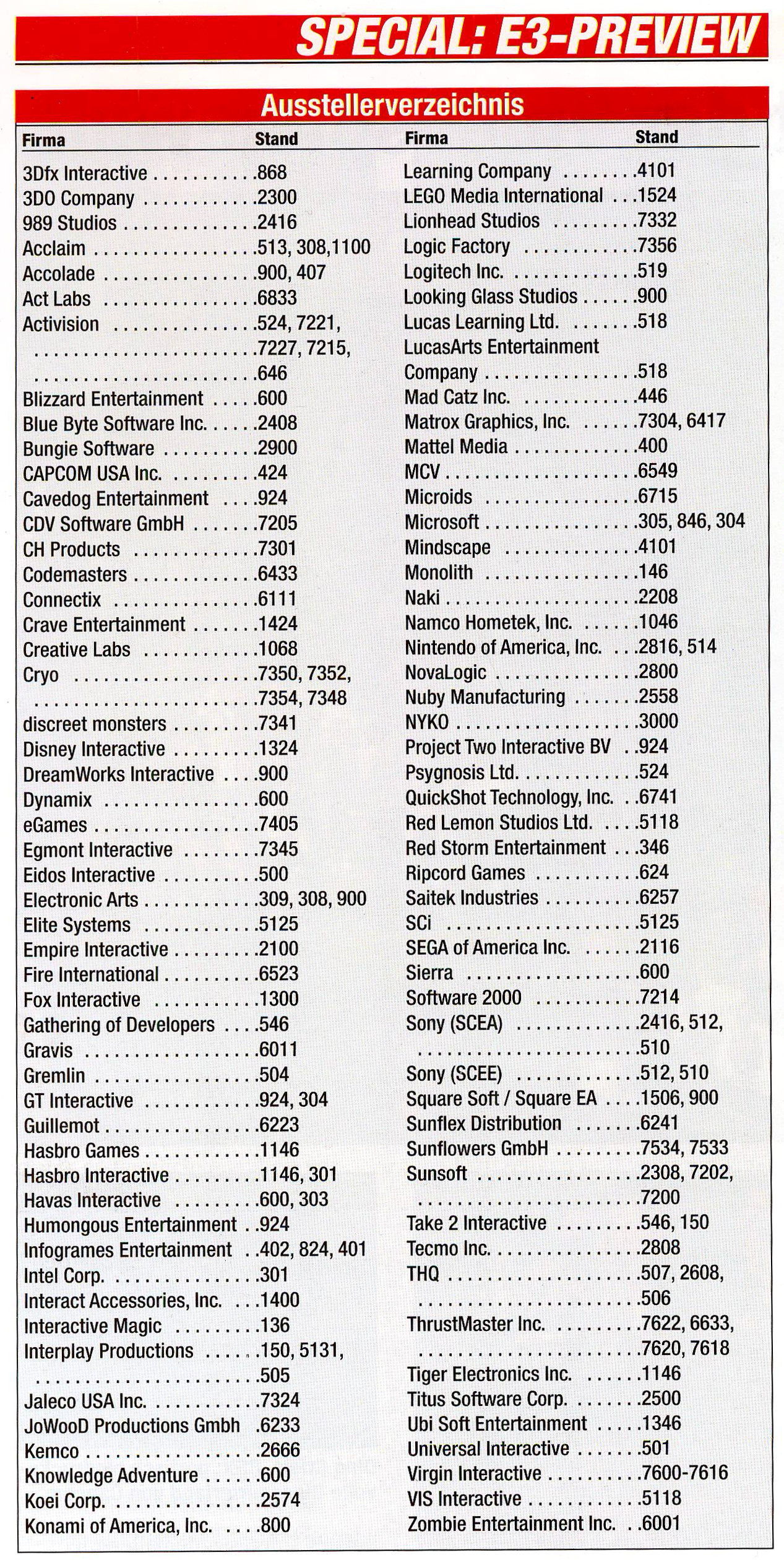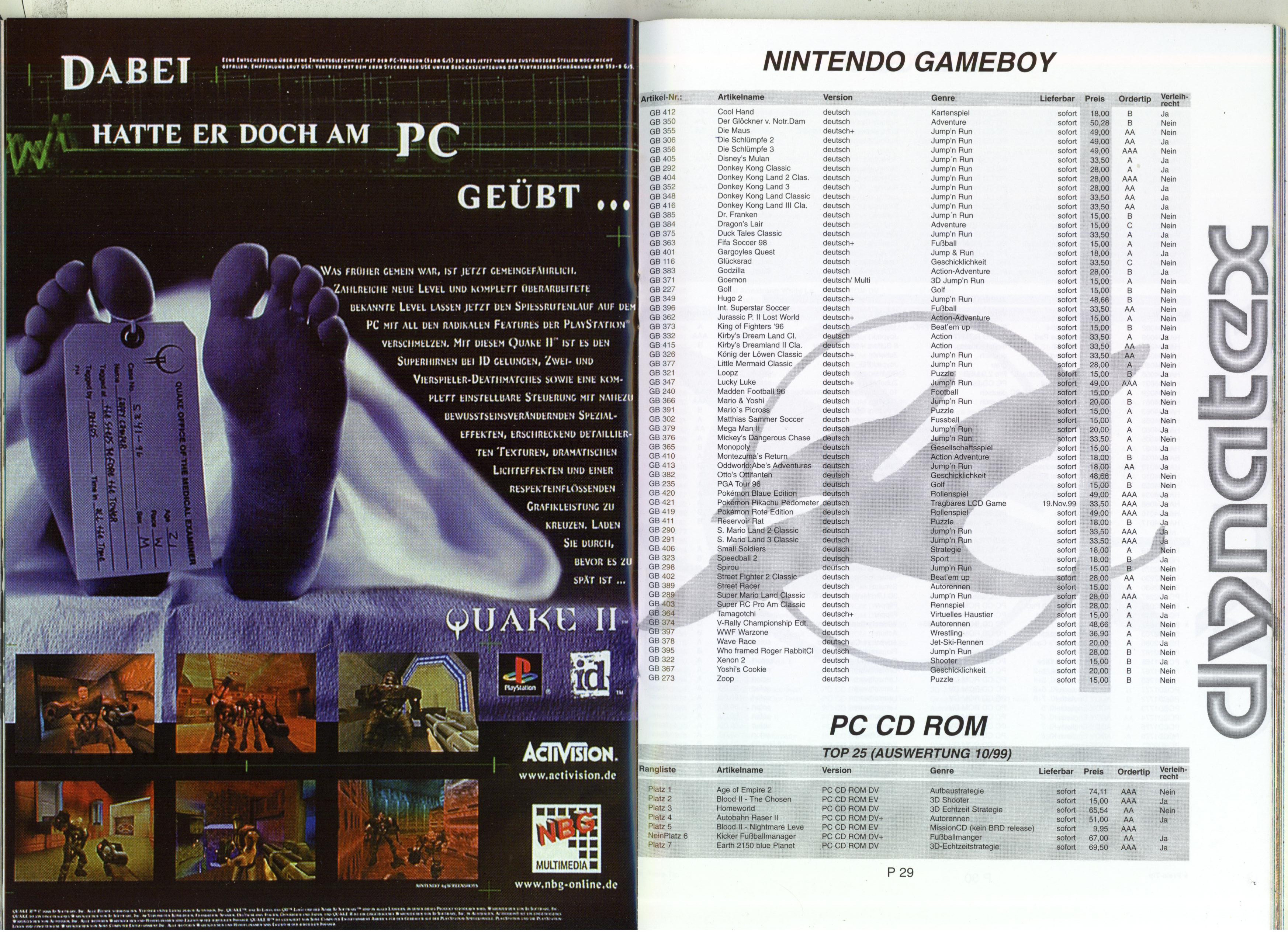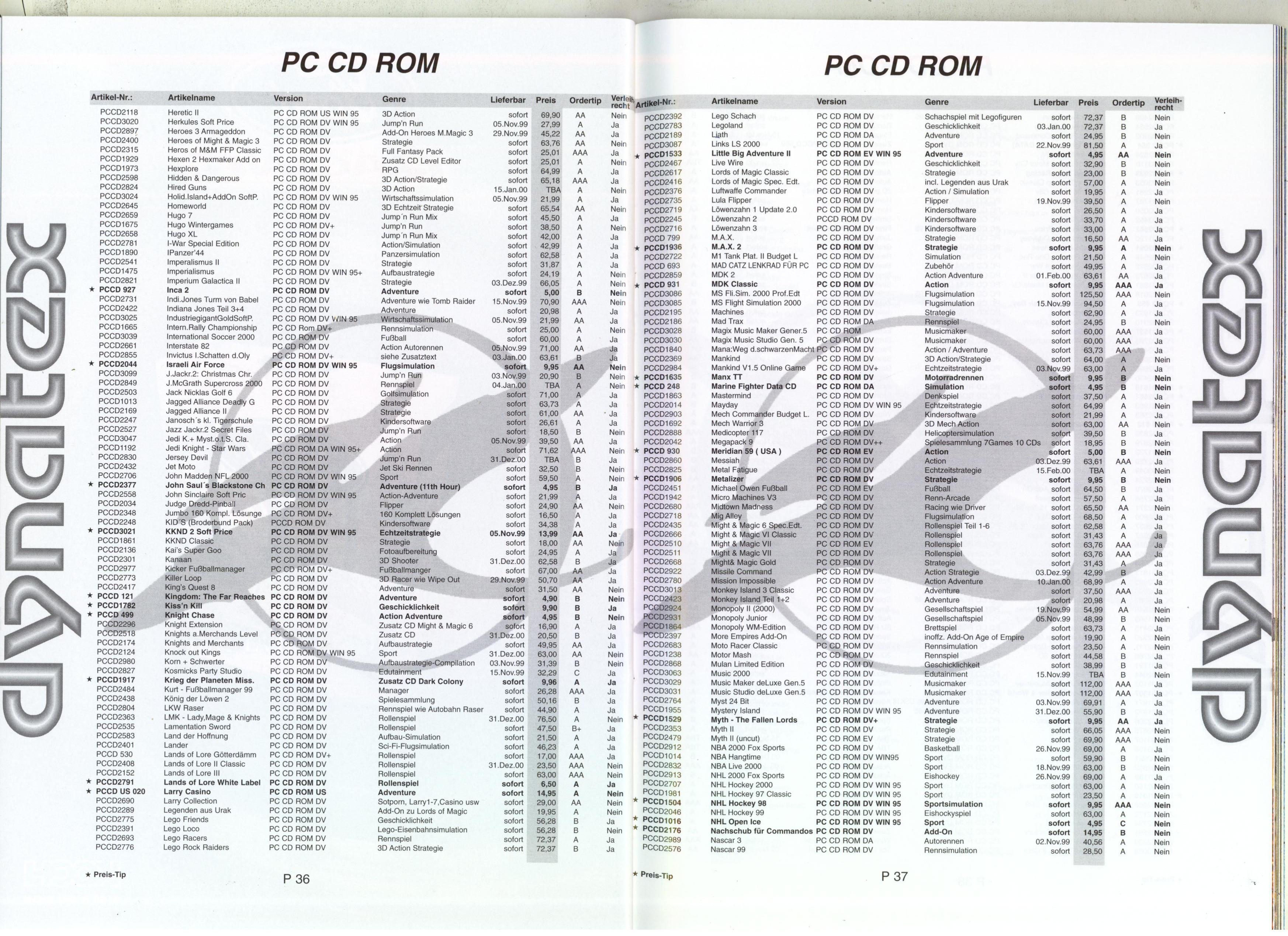 German PC and Video Game Release Lists 1997 and 1998