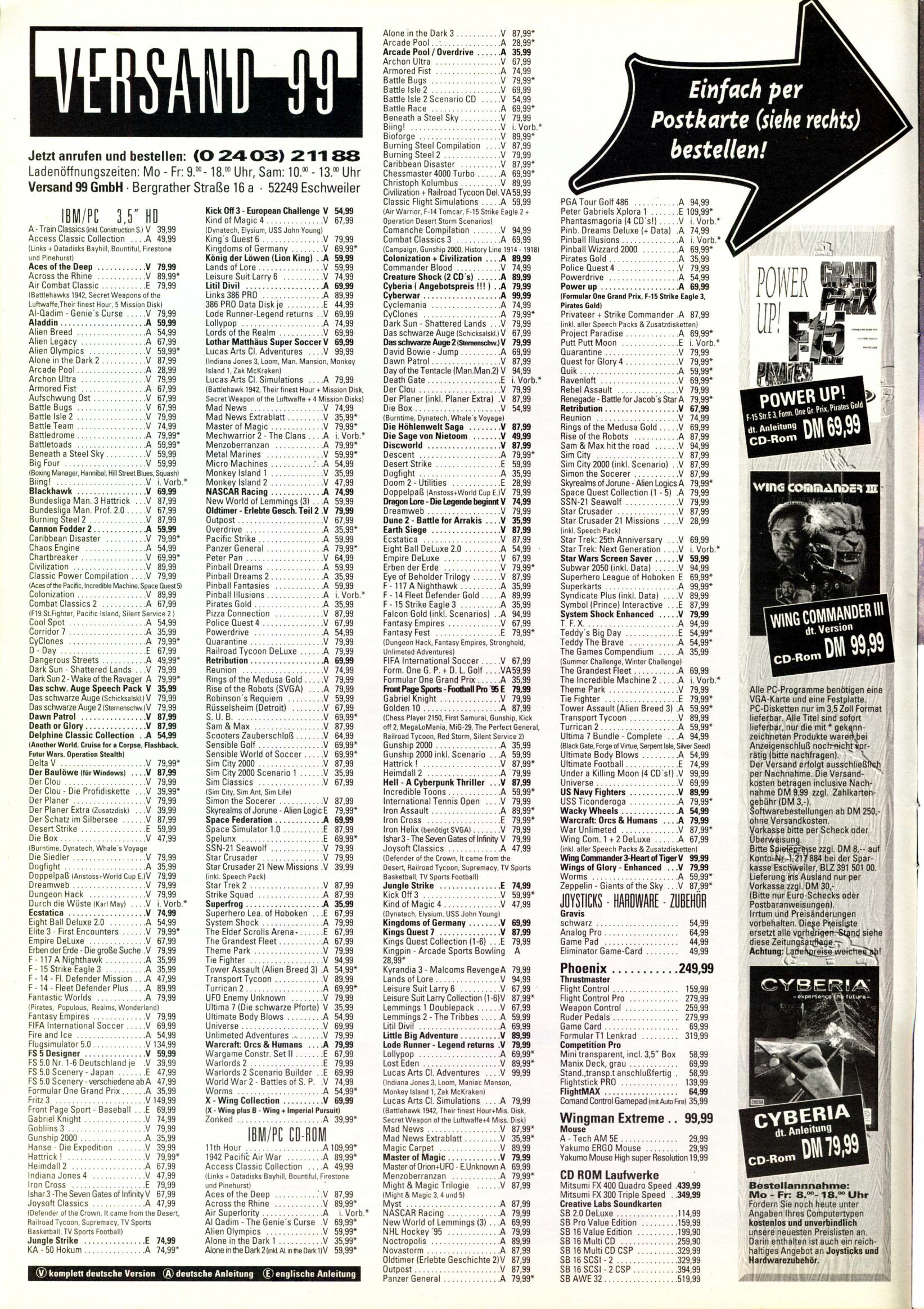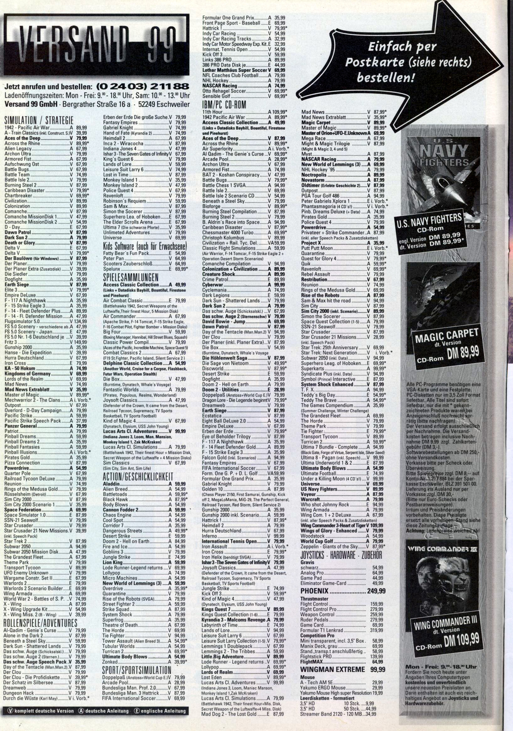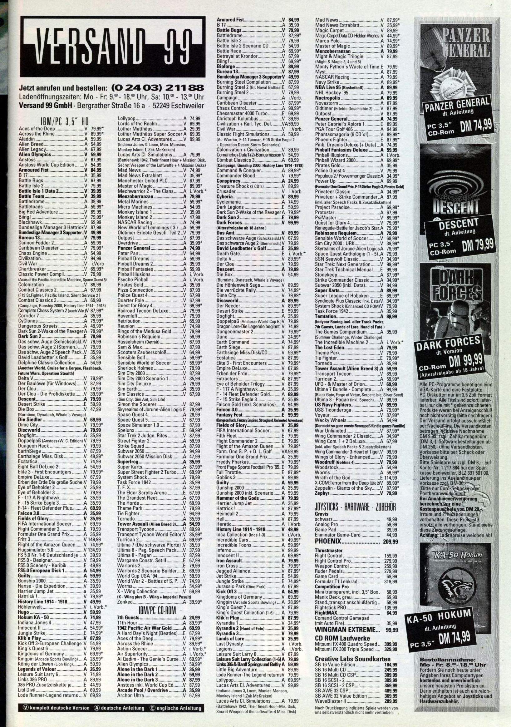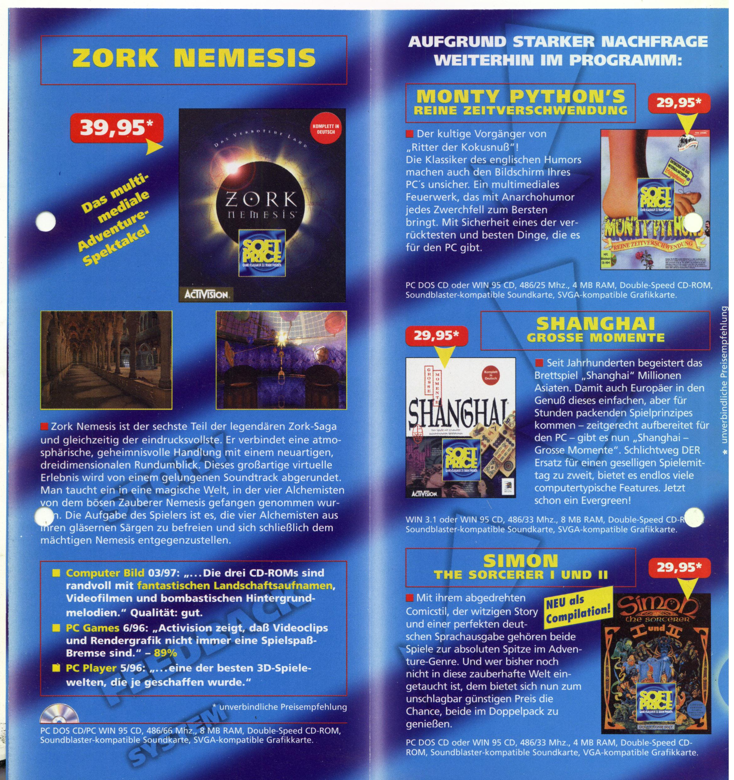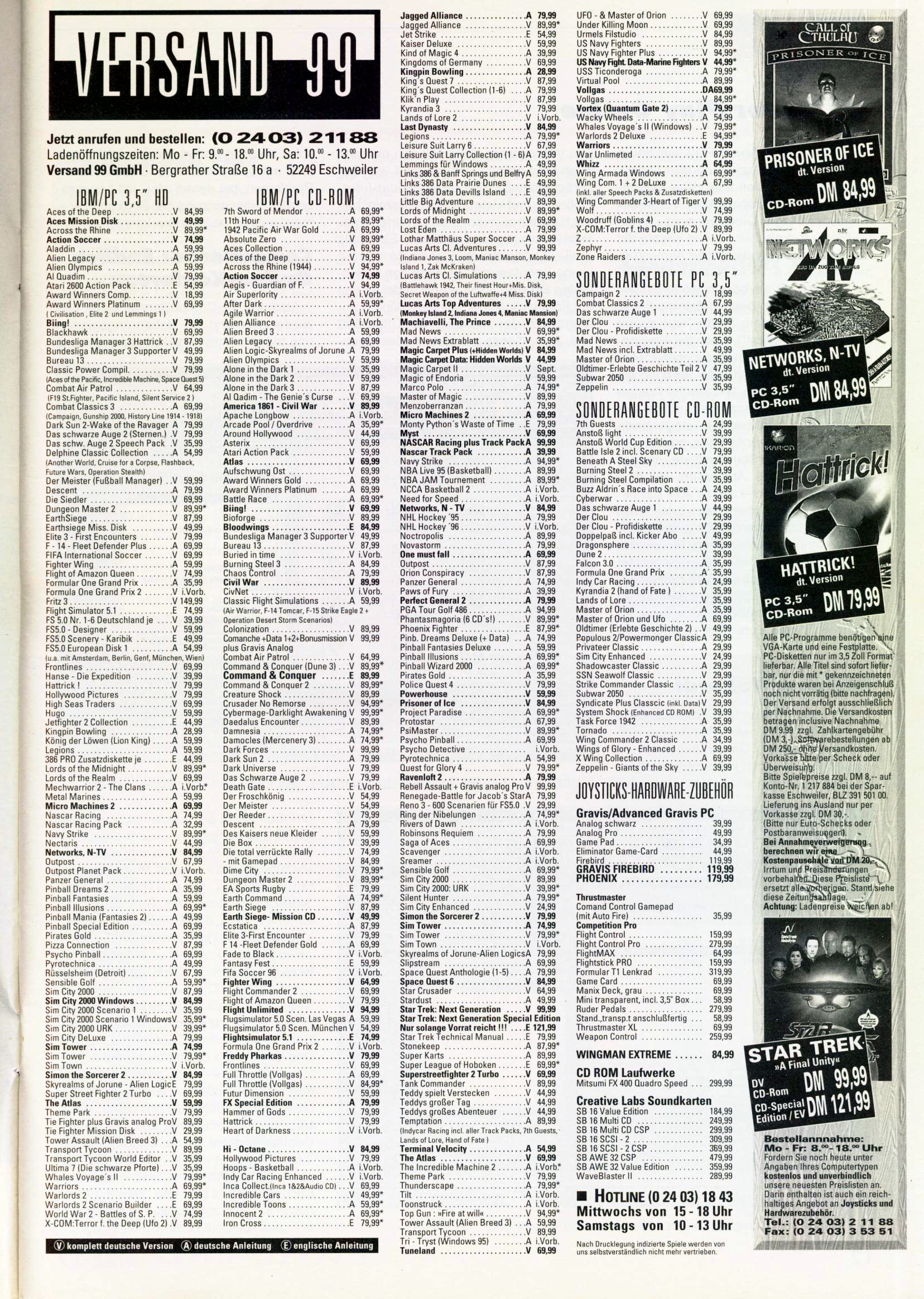 German PC and Video Game Release Lists 1997 and 1998