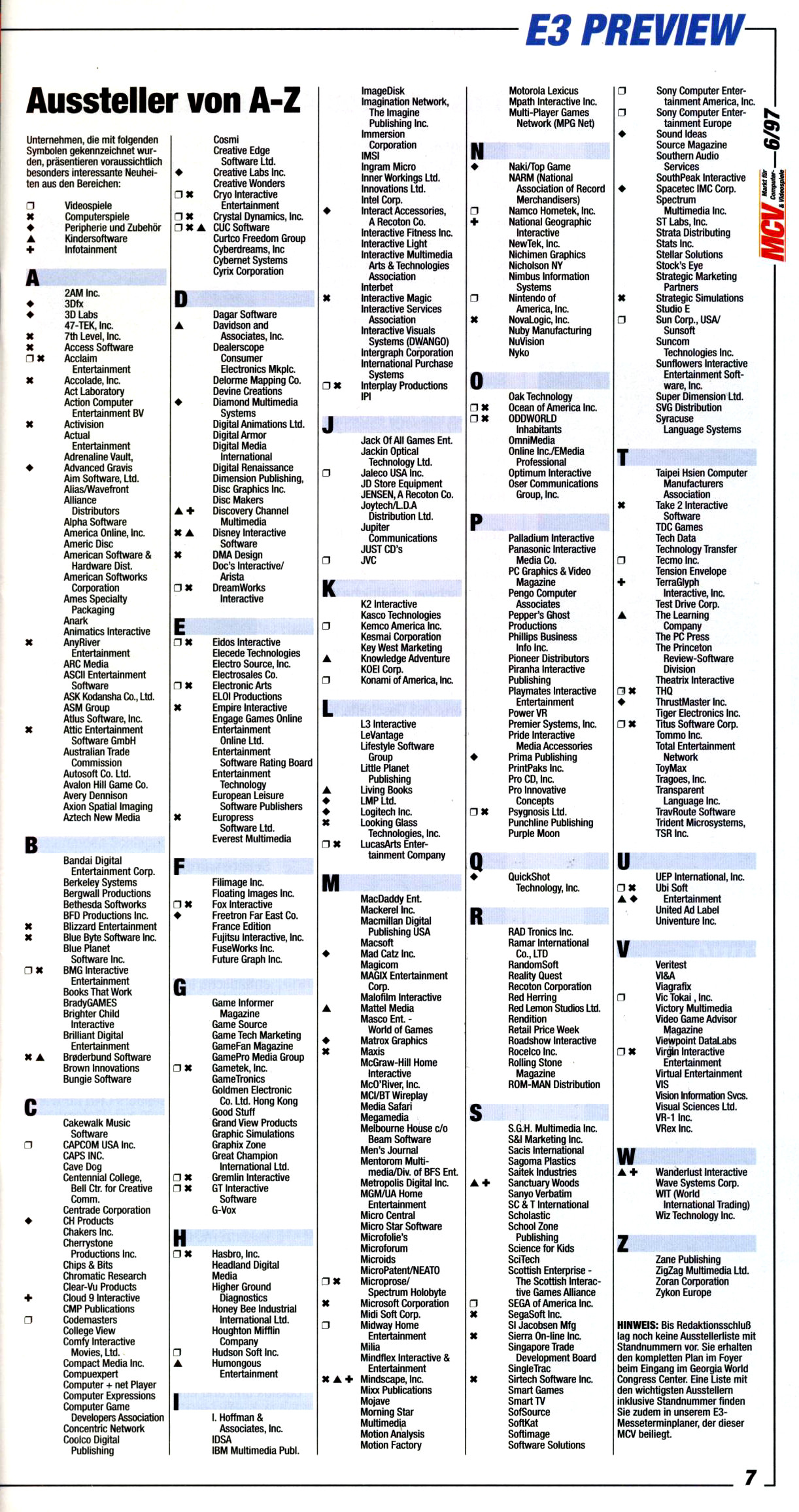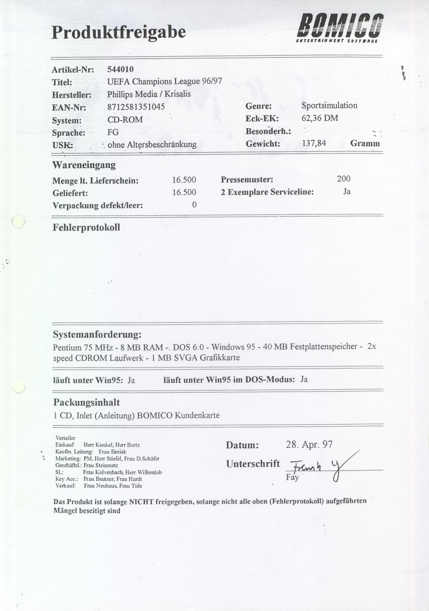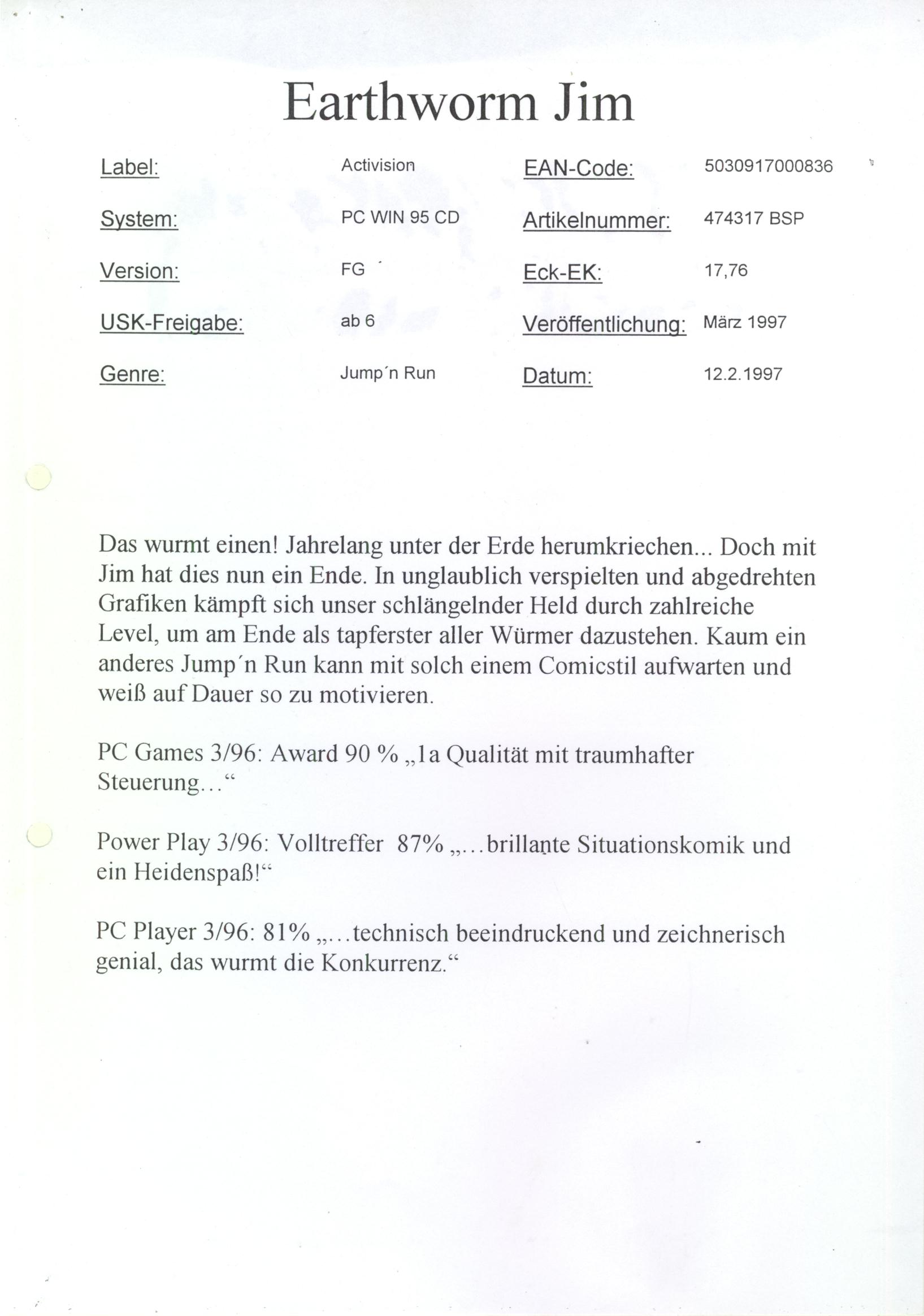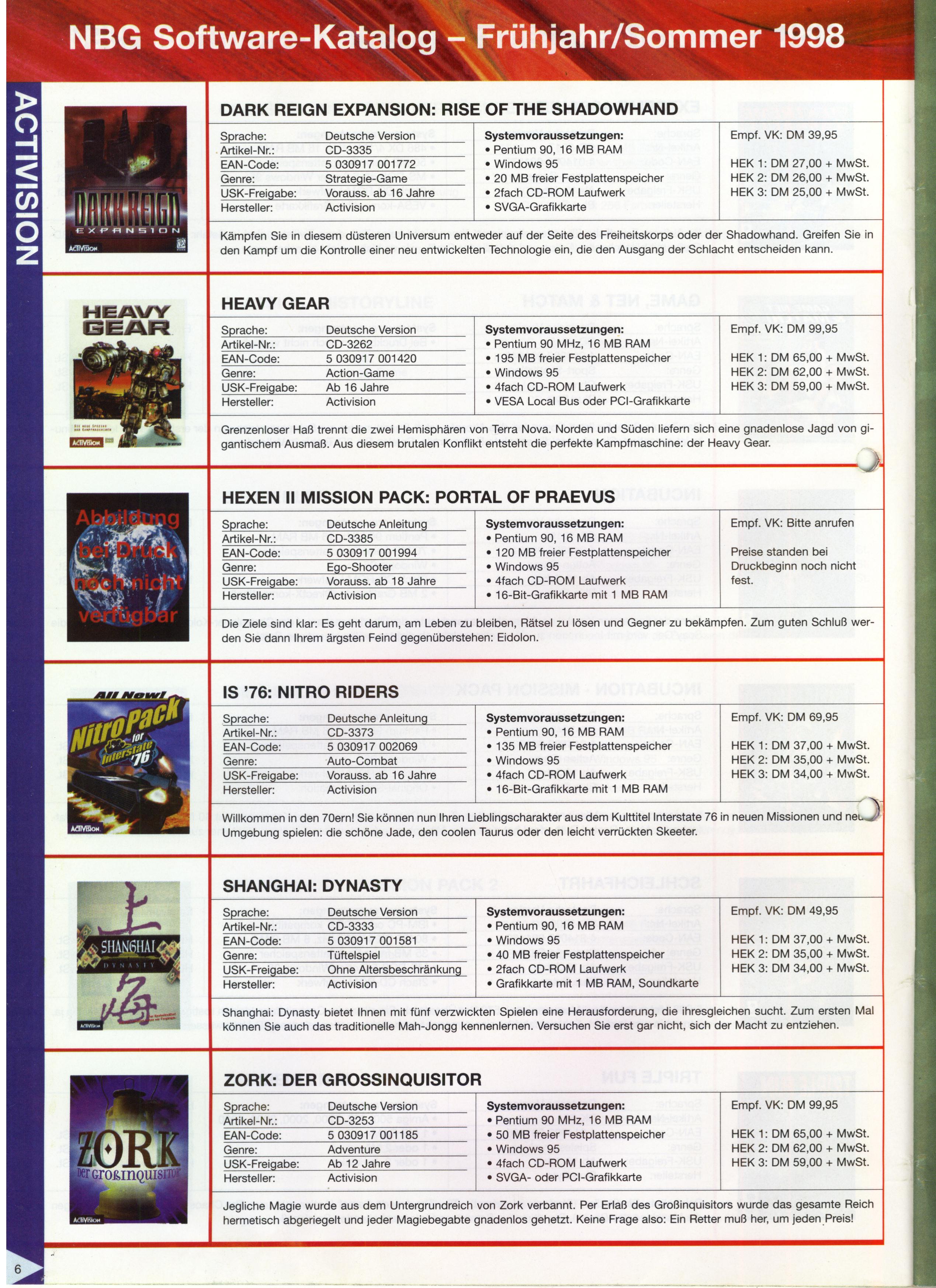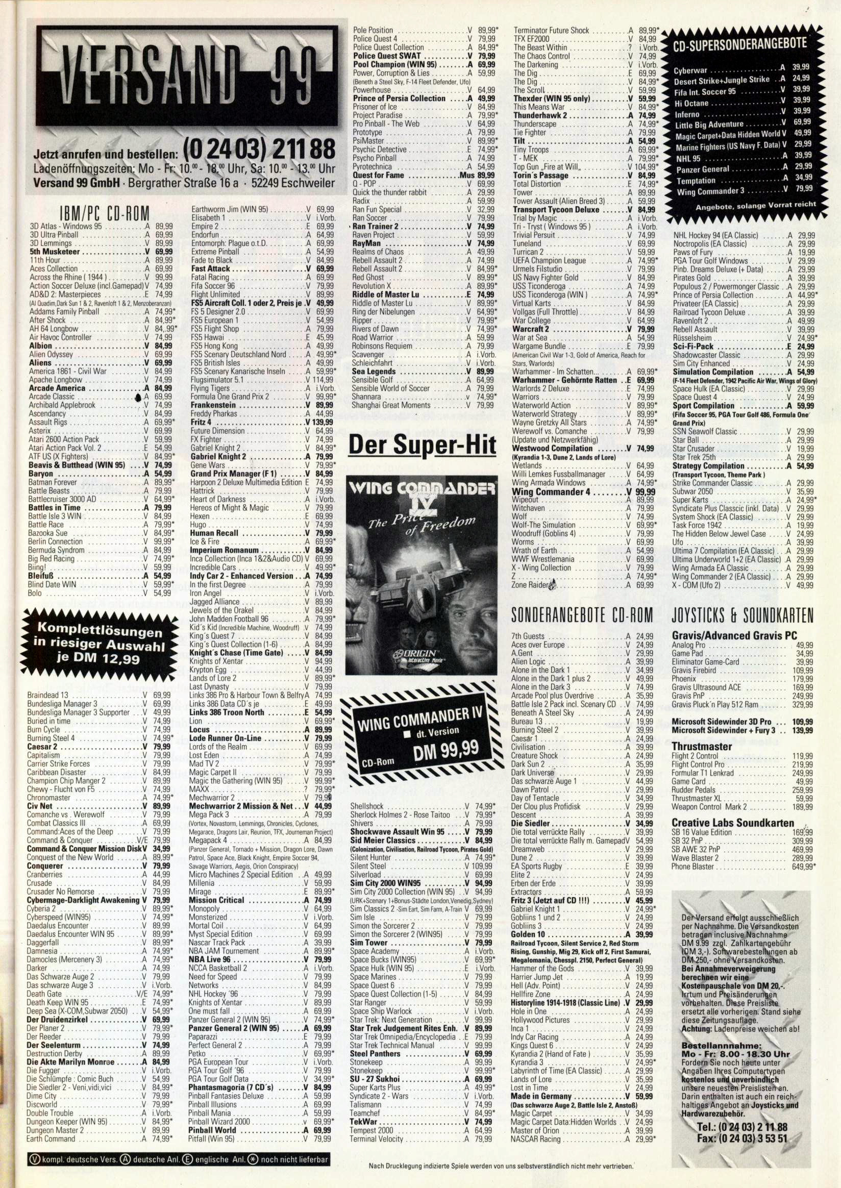 German PC and Video Game Release Lists 1997 and 1998