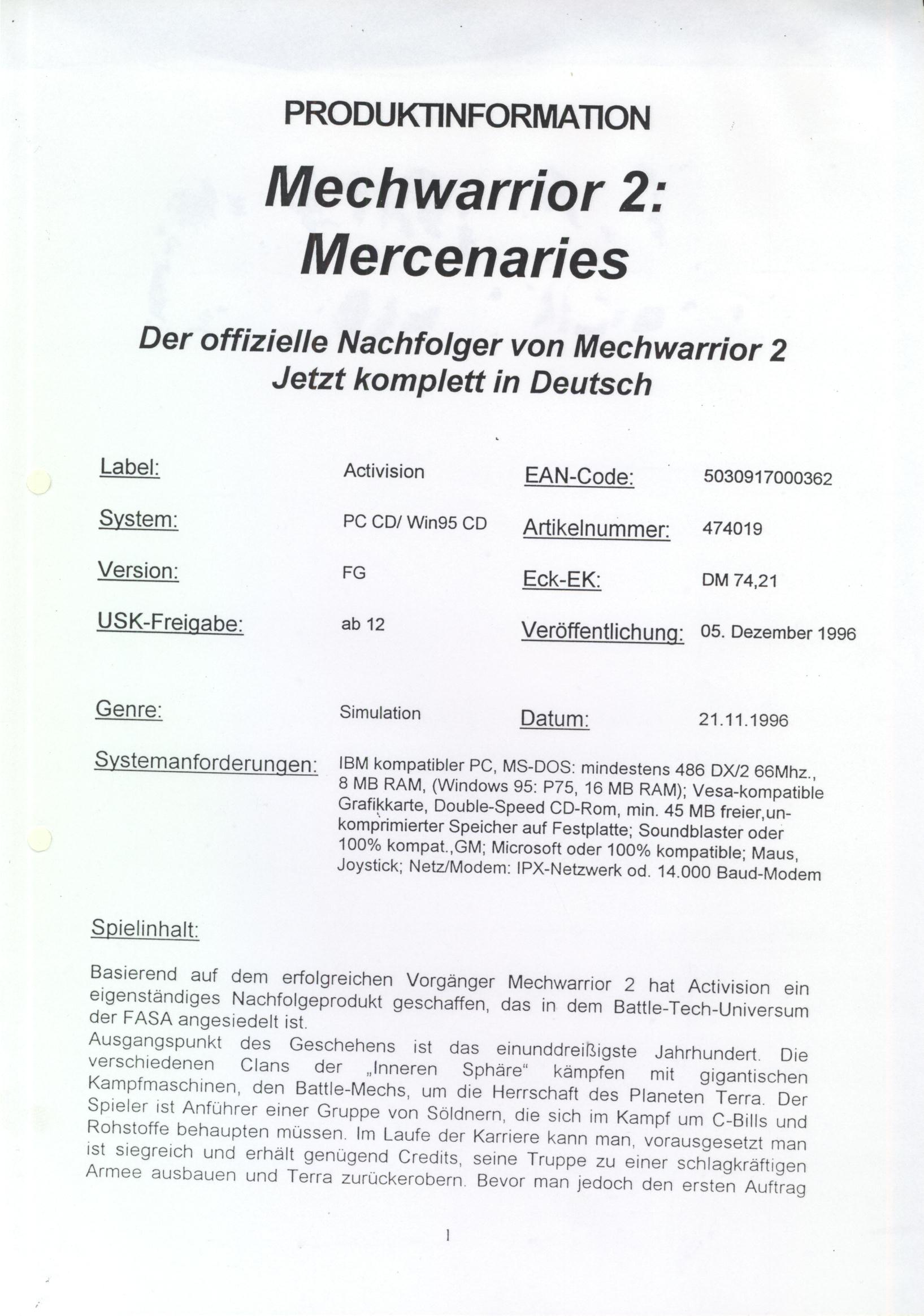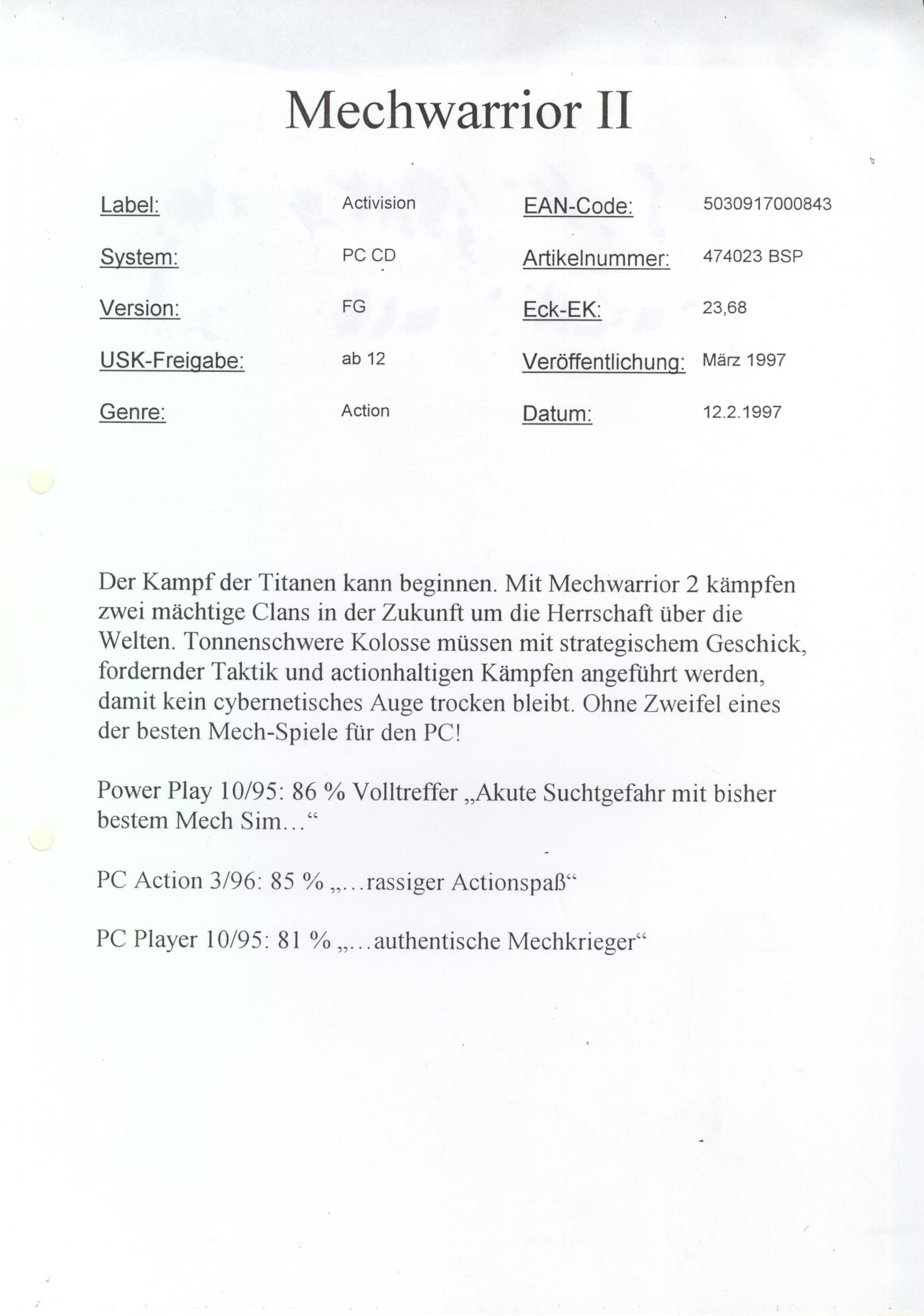 • Mechwarrior 4: Vengeance (PC)