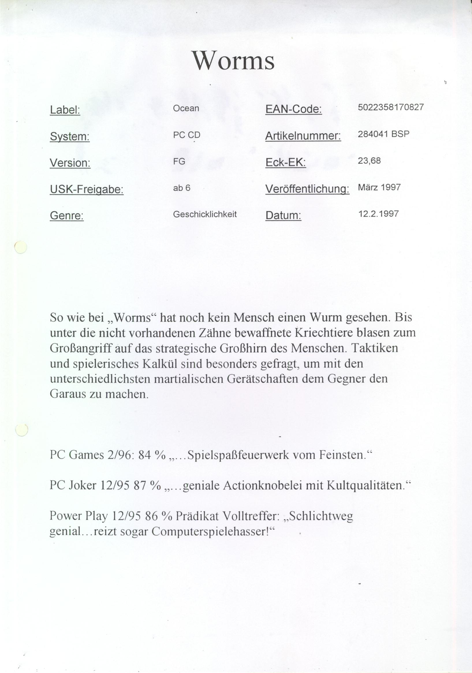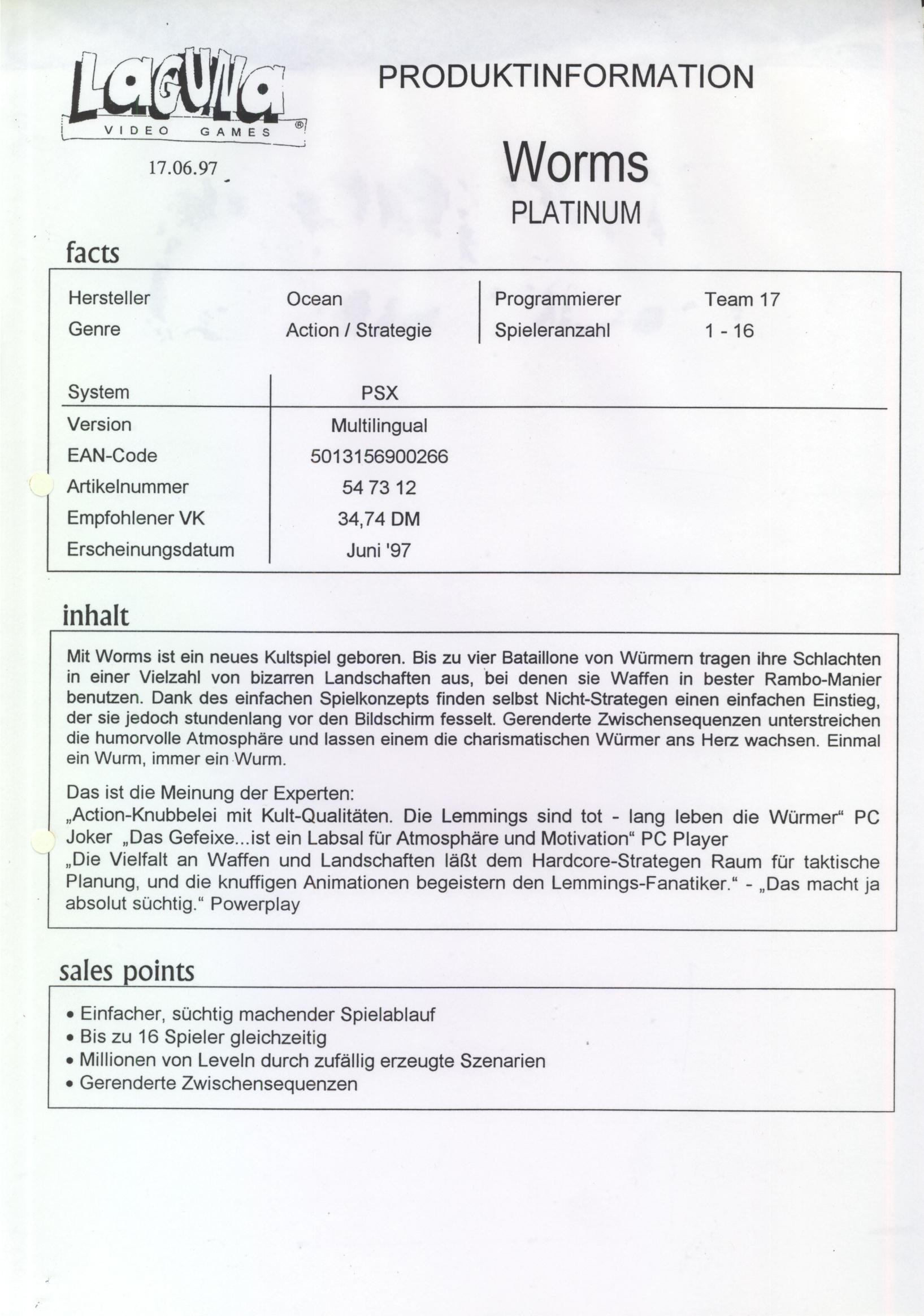 • Worms Flipper (PSX)