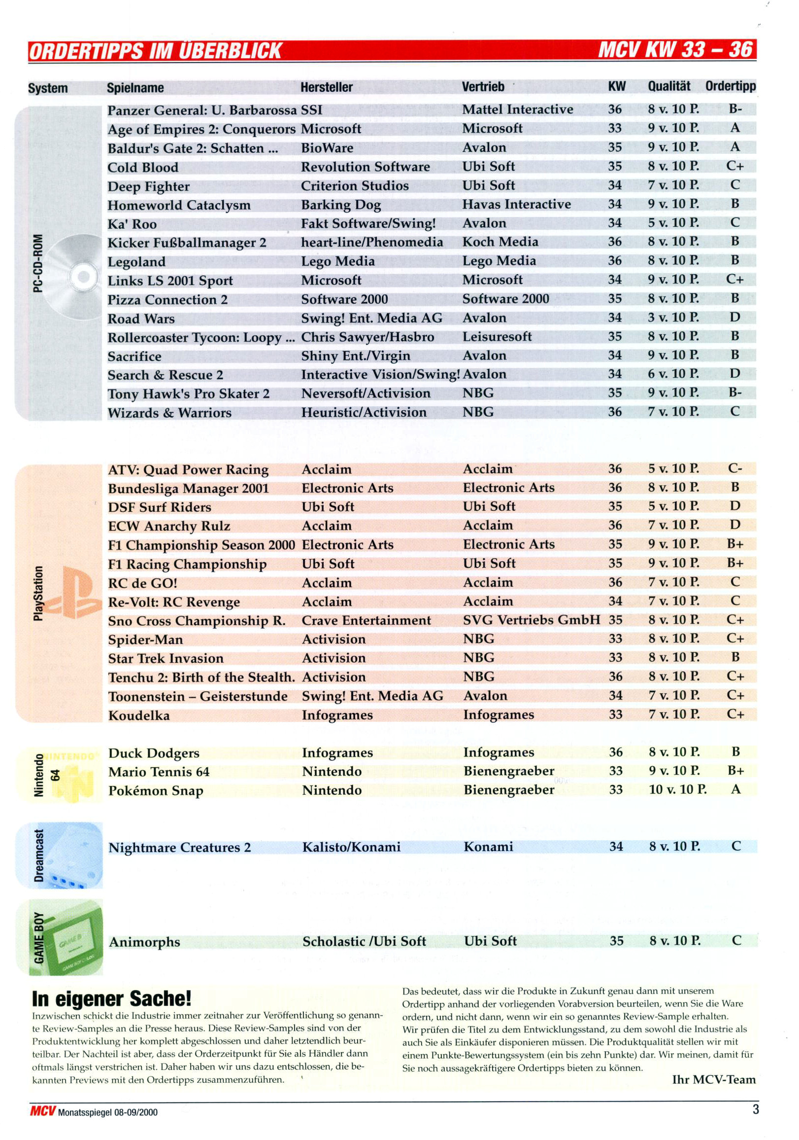 MCV Ordertips and Previews